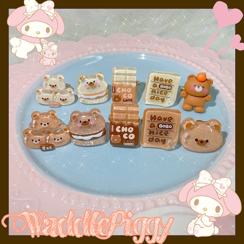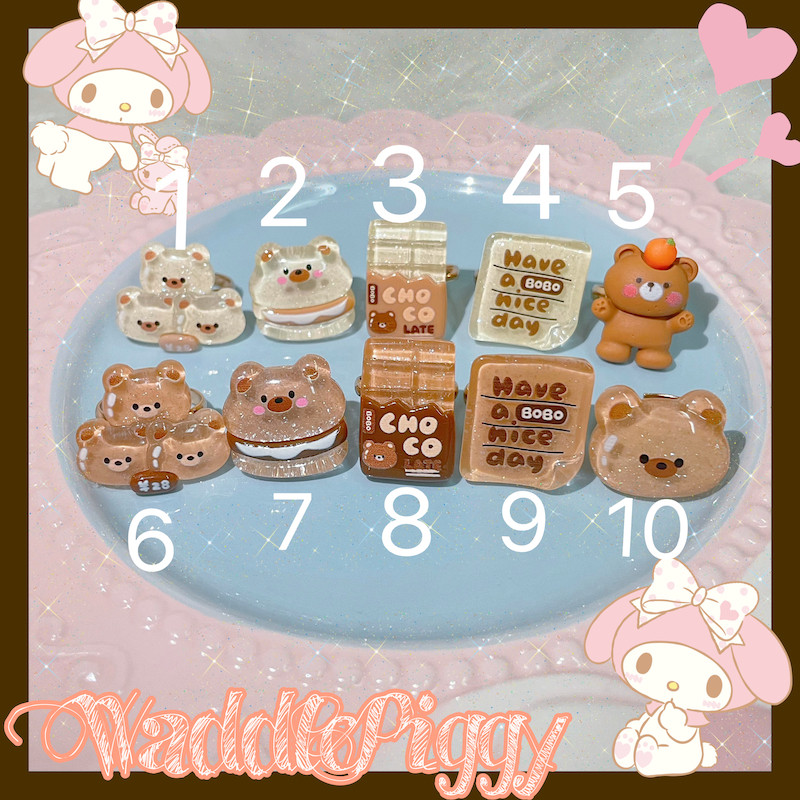 【夏夏】Lolita透明巧克力小熊可爱甜呲百搭可调节手作戒指保色 [Original Page Link]