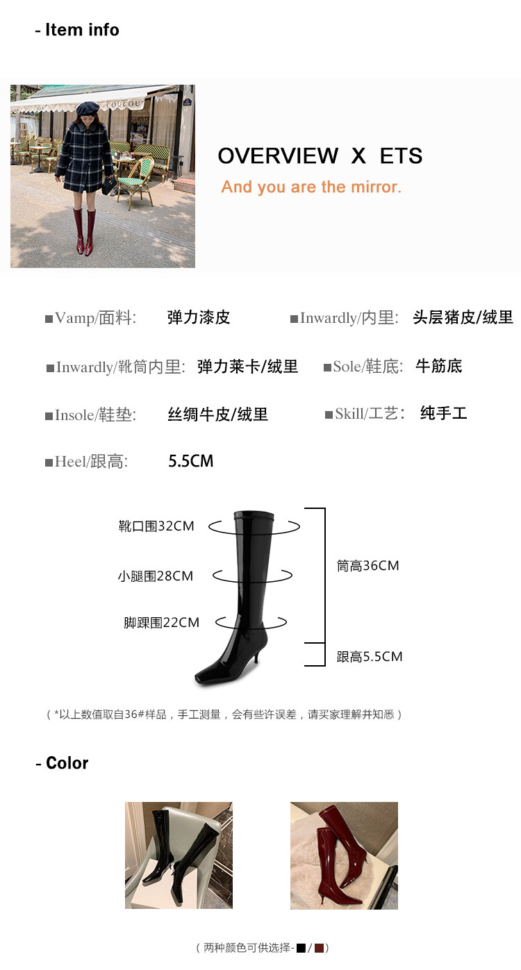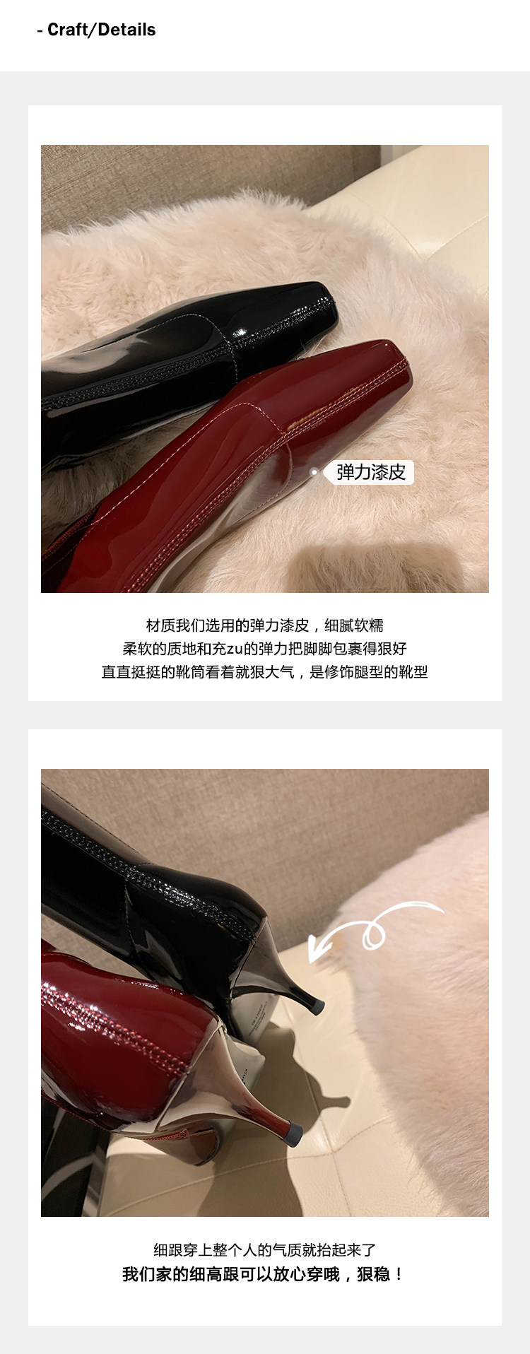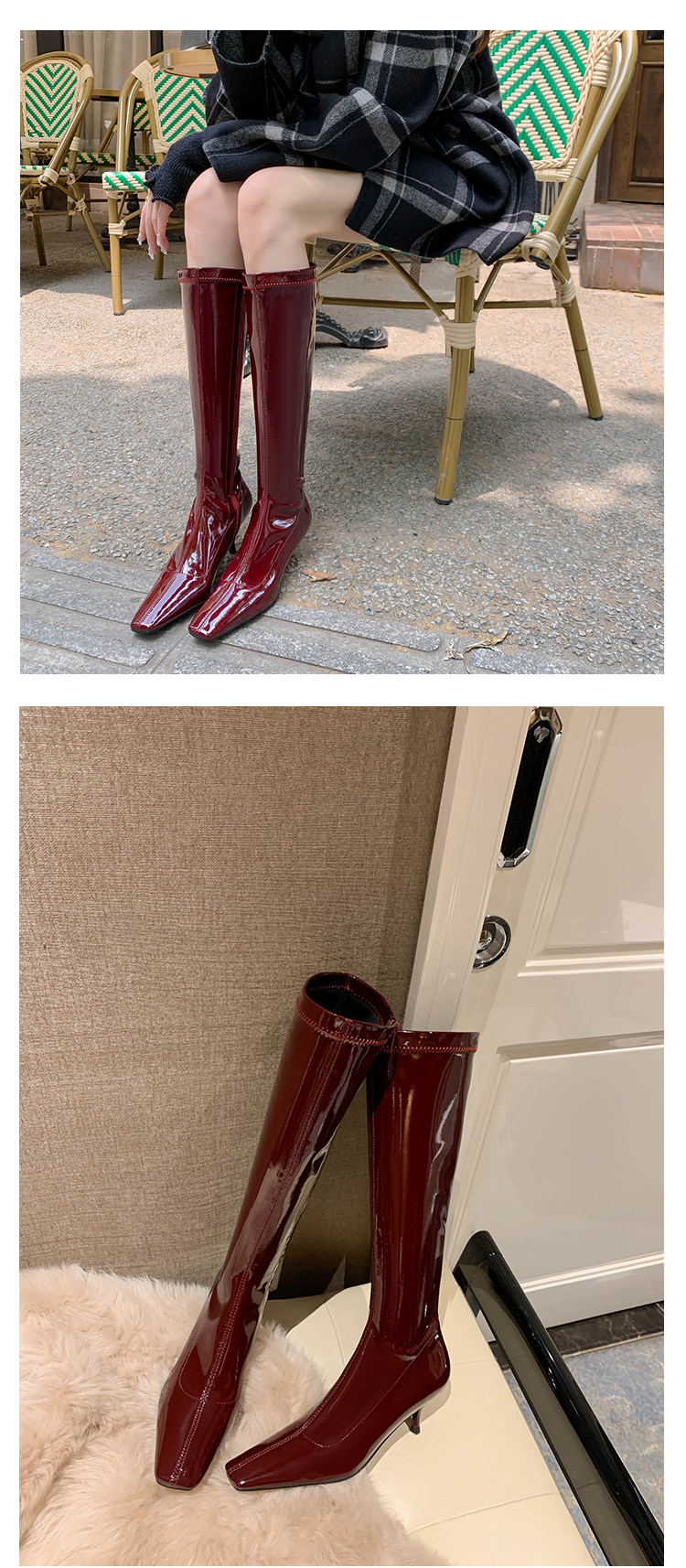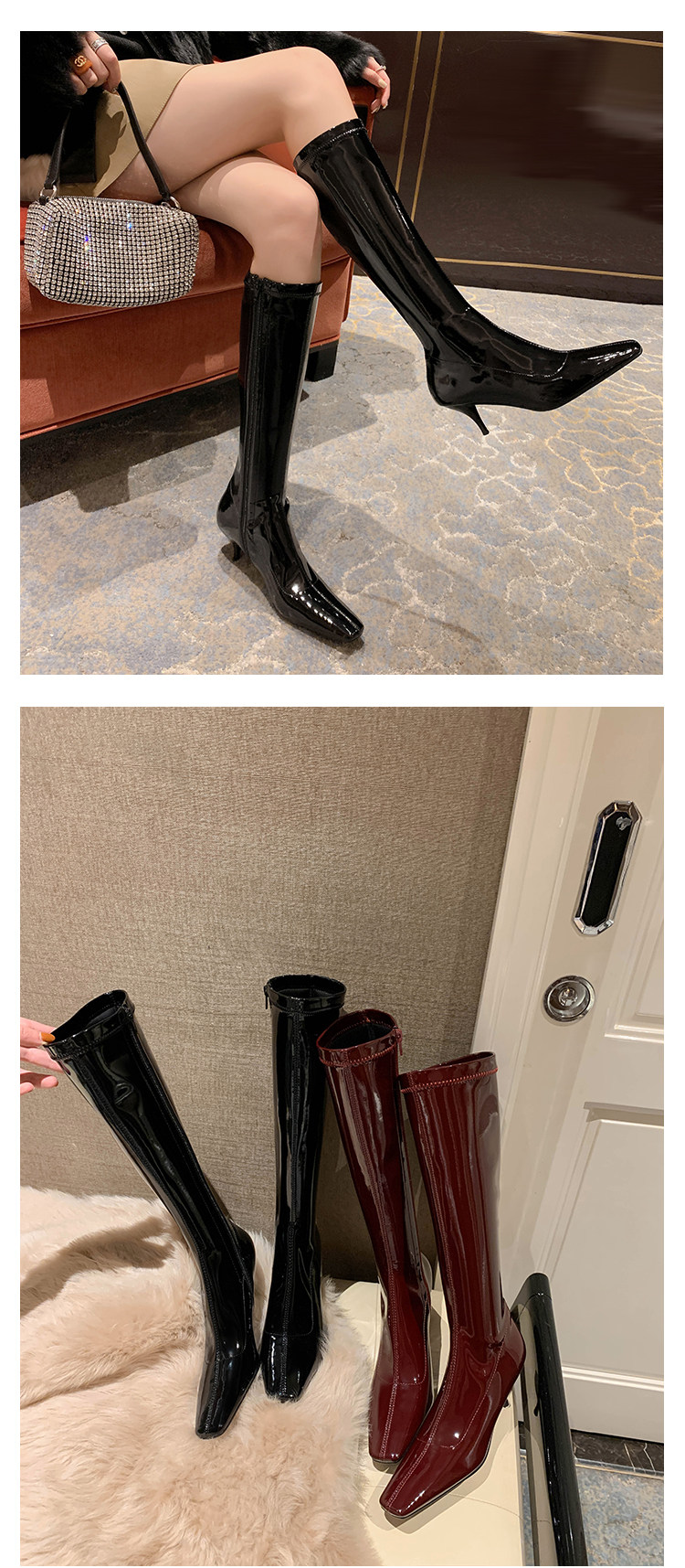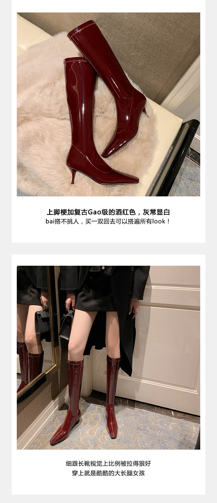 2024冬新款方头酒红色漆皮亮皮弹力瘦瘦长靴细跟高跟高筒长筒靴女 [Original Page Link]