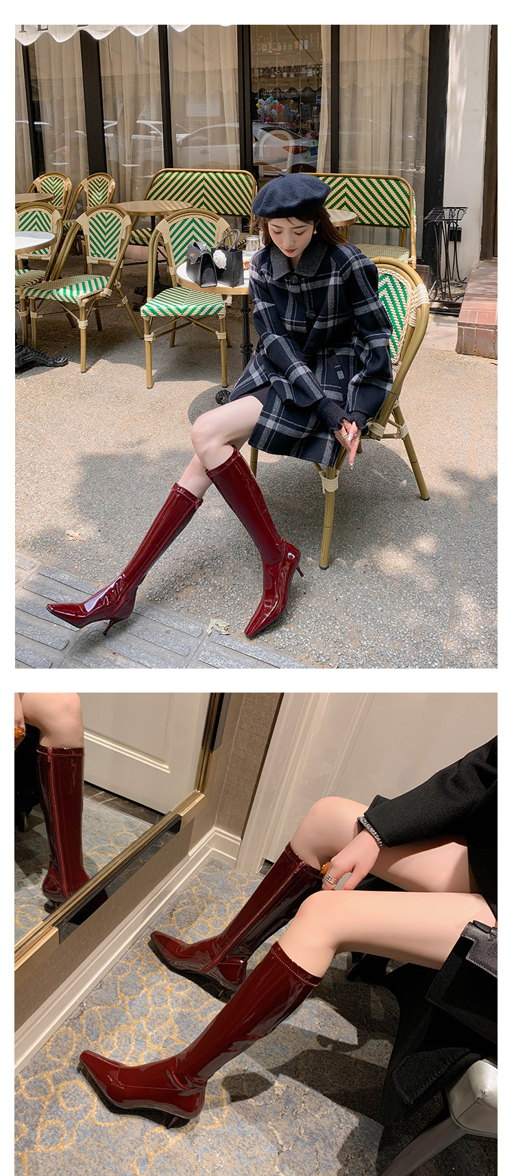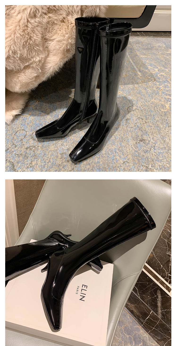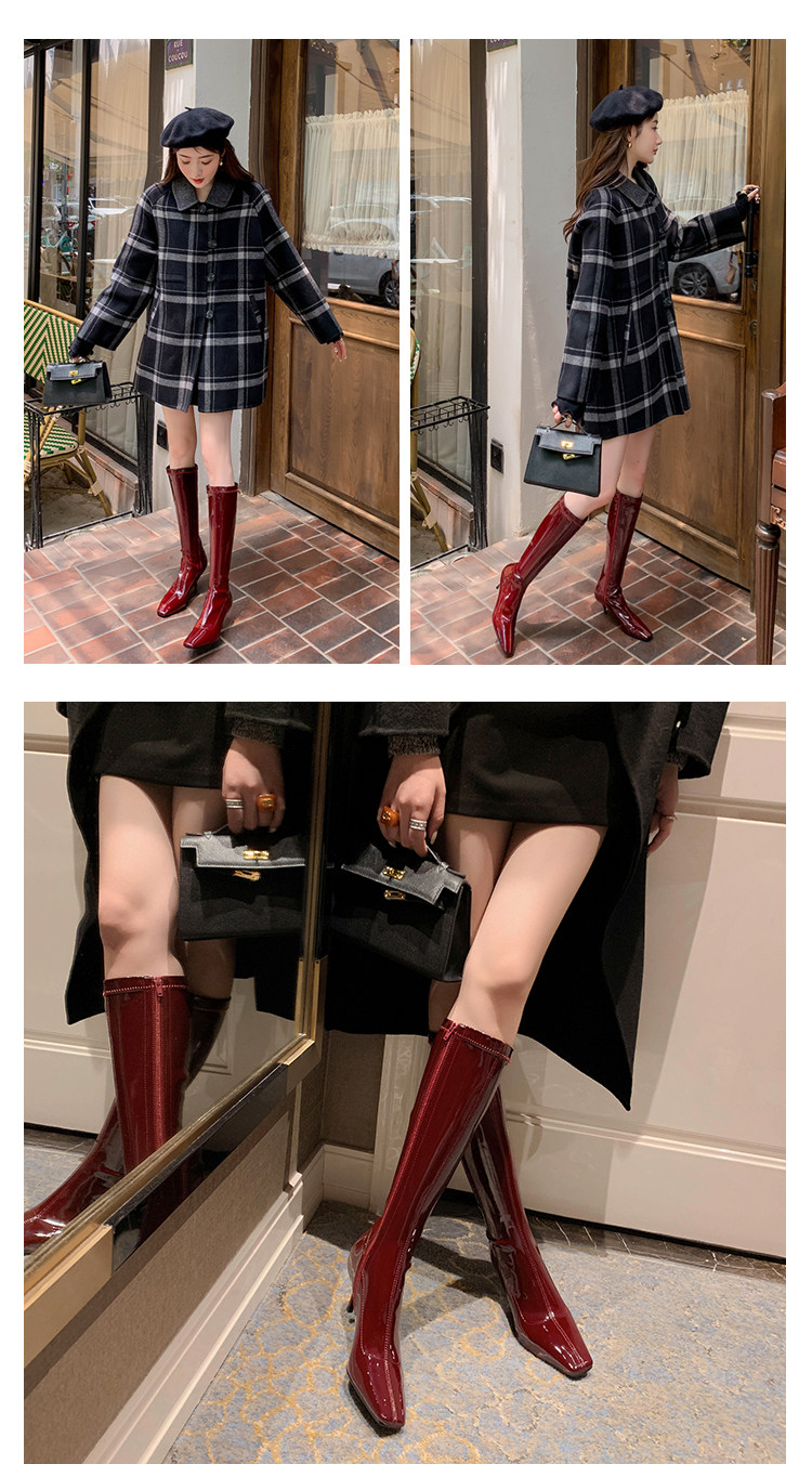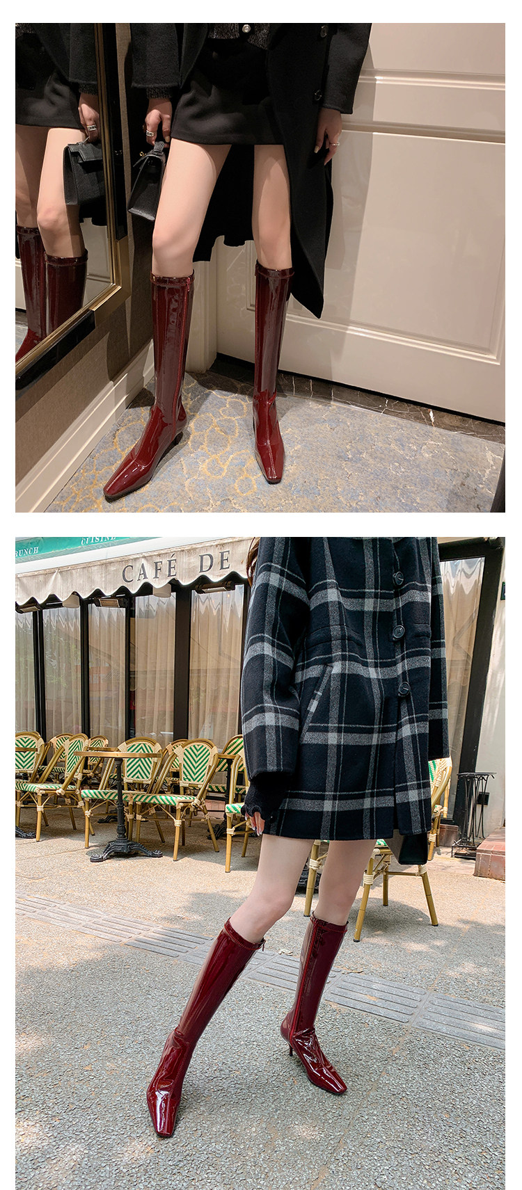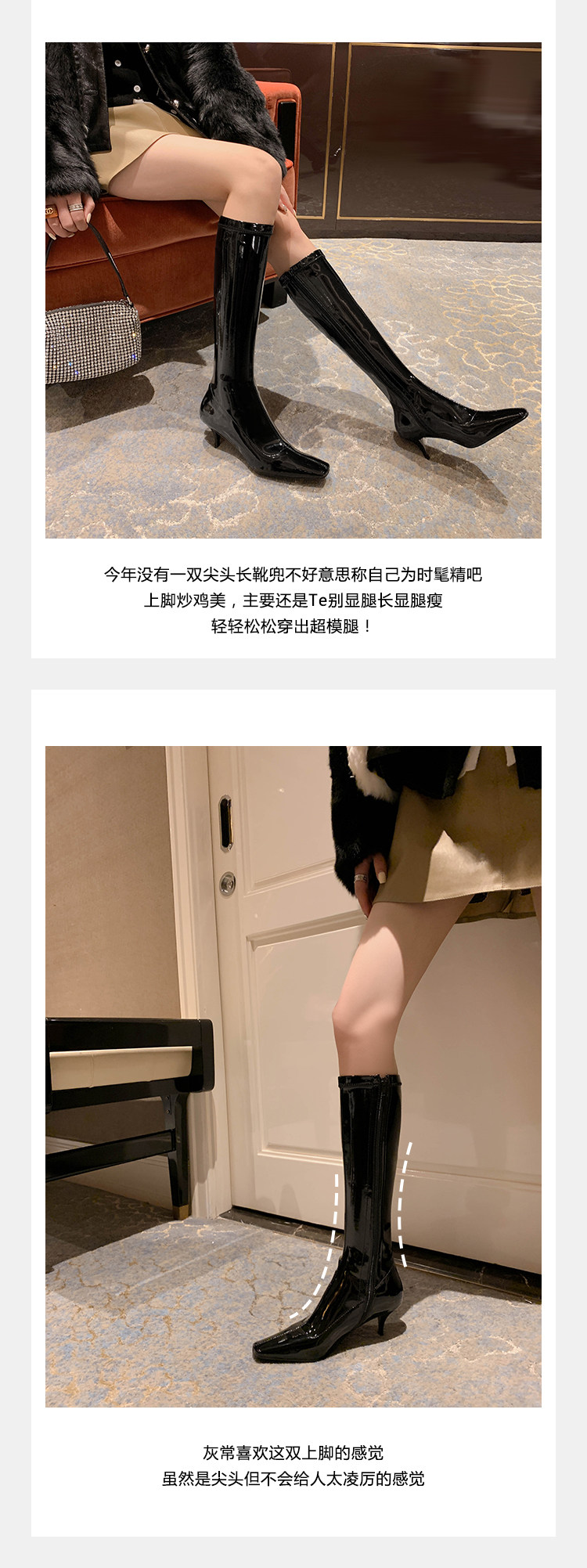 2024冬新款方头酒红色漆皮亮皮弹力瘦瘦长靴细跟高跟高筒长筒靴女 [Original Page Link]
