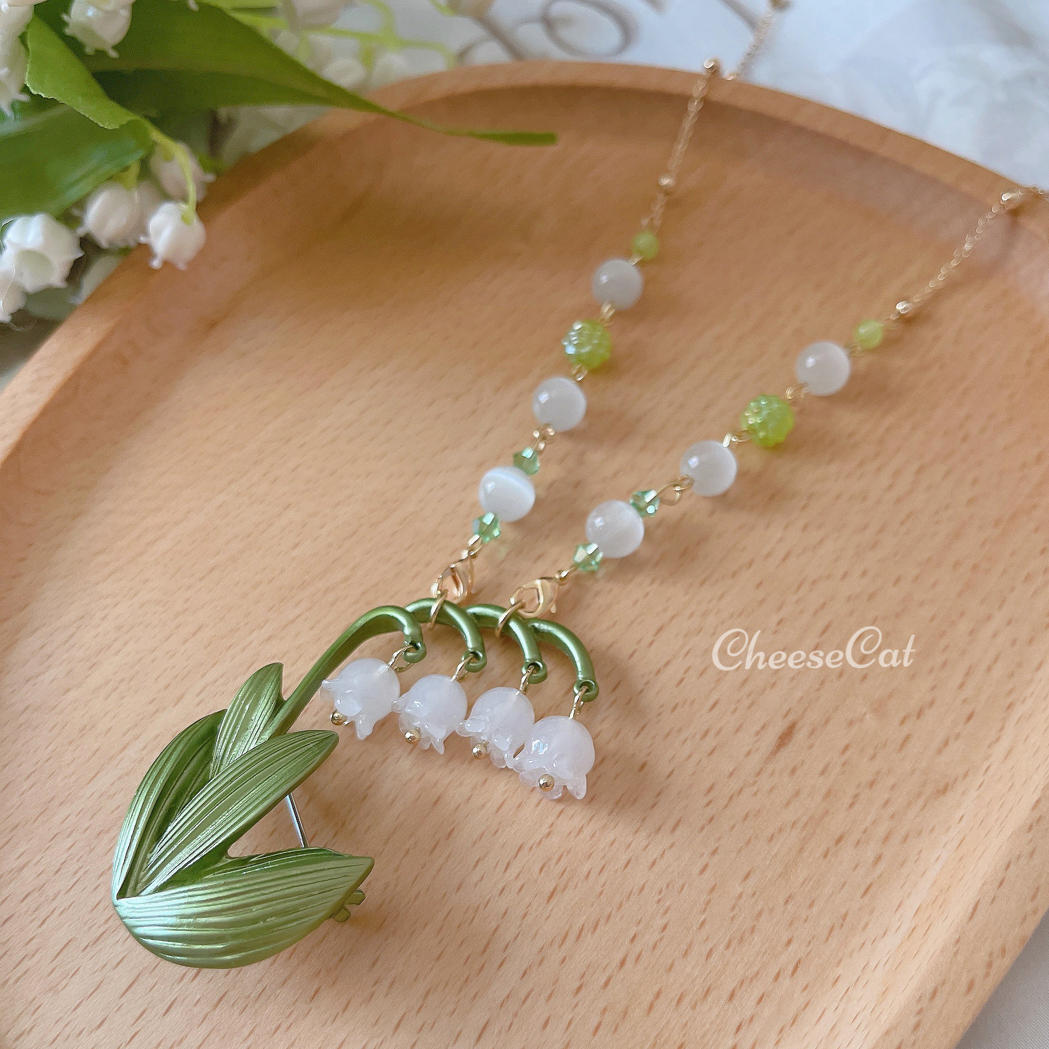 【芝士猫手作】铃兰花园小清新cla系lolita小物水晶胸针项链两用 [Original Page Link]