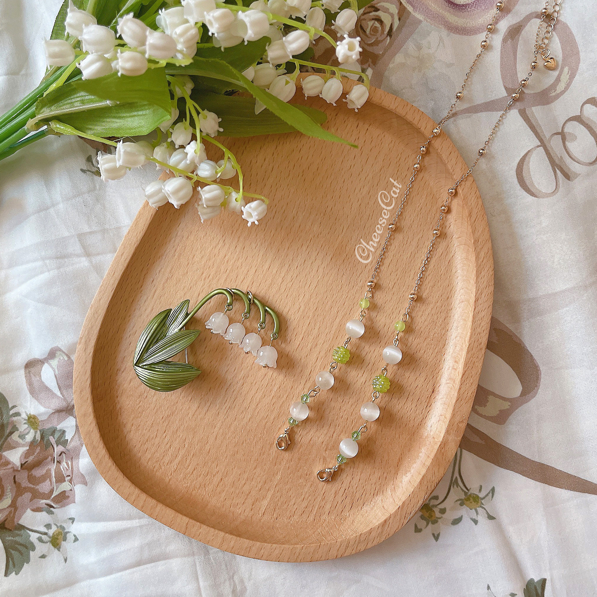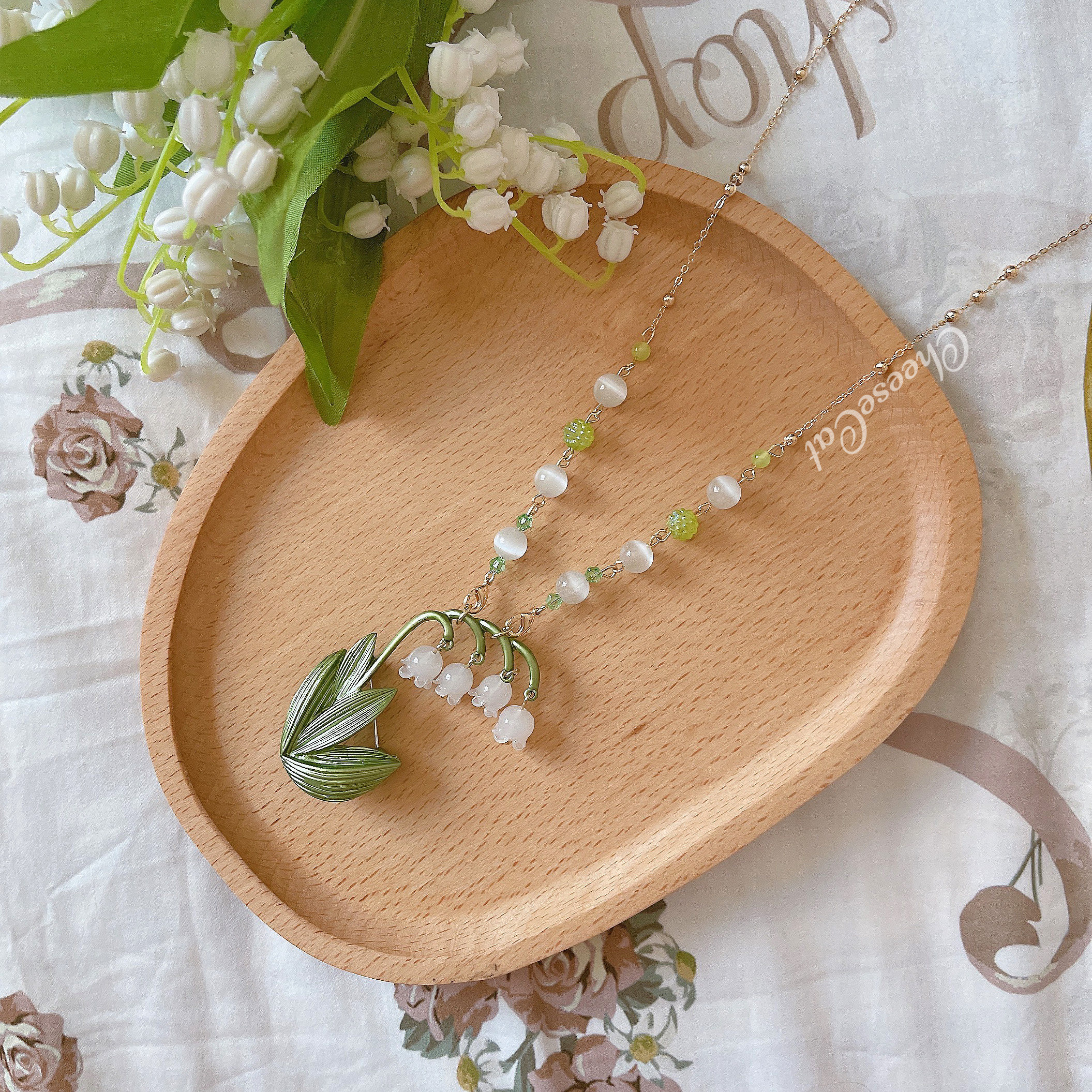 [Cheese cat handmade] Lily of the valley garden small fresh cla series lolita small crystal brooch necklace dual-use
