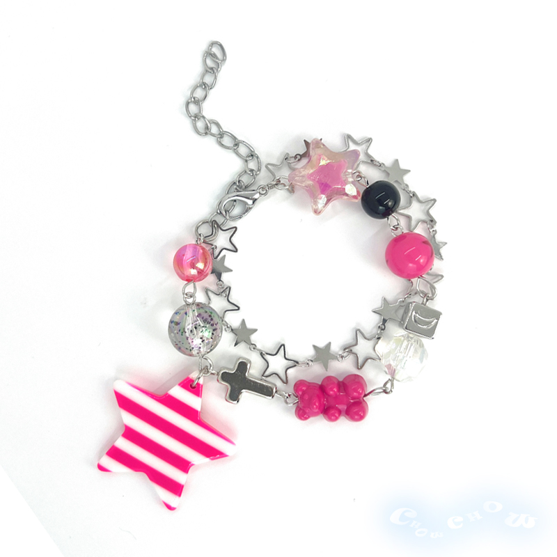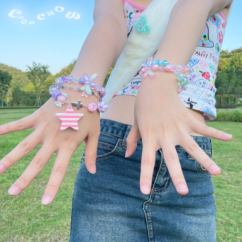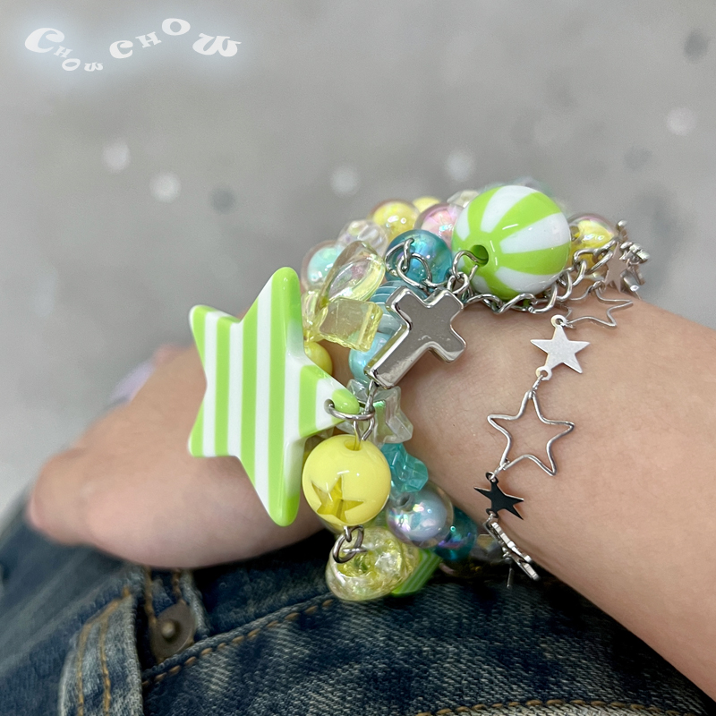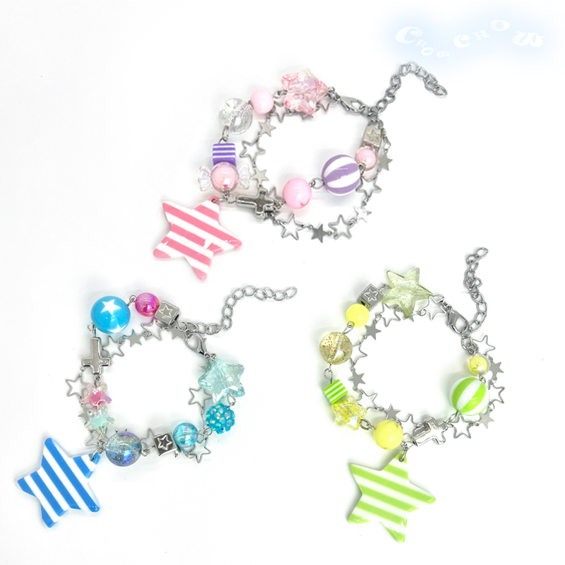 原创老树千禧年涩谷性感亚文化金属炼双层亚克力星坠手镯 [Original Page Link]