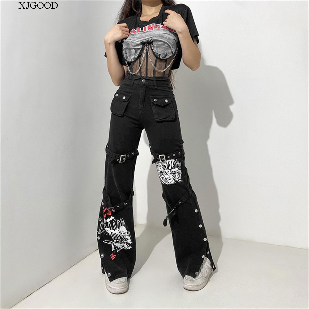 Metal Buckle Denim Straight-Leg Trousers金属扣牛仔直筒长裤女 [Original Page Link]