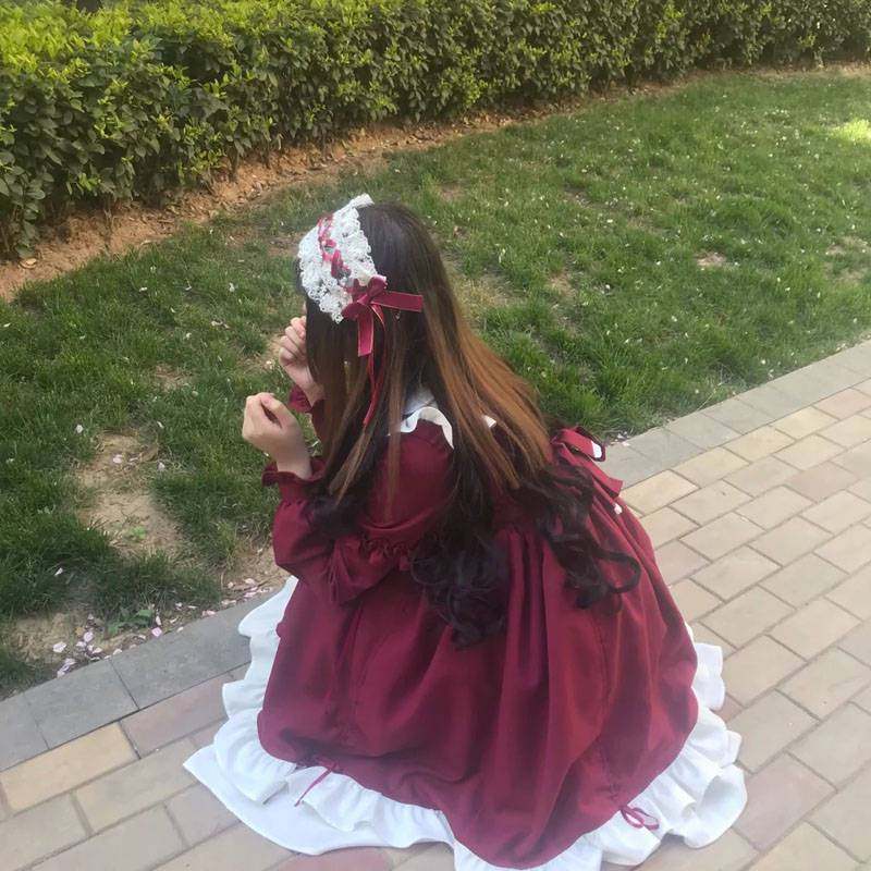 洛丽塔短袖连衣裙学生风 高腰A型公主裙蓝色 刺绣蝴蝶结甜美连衣裙 [Original Page Link]