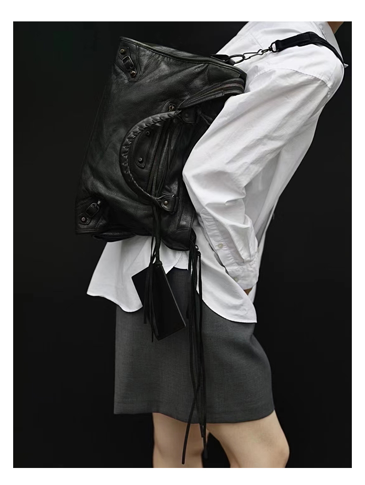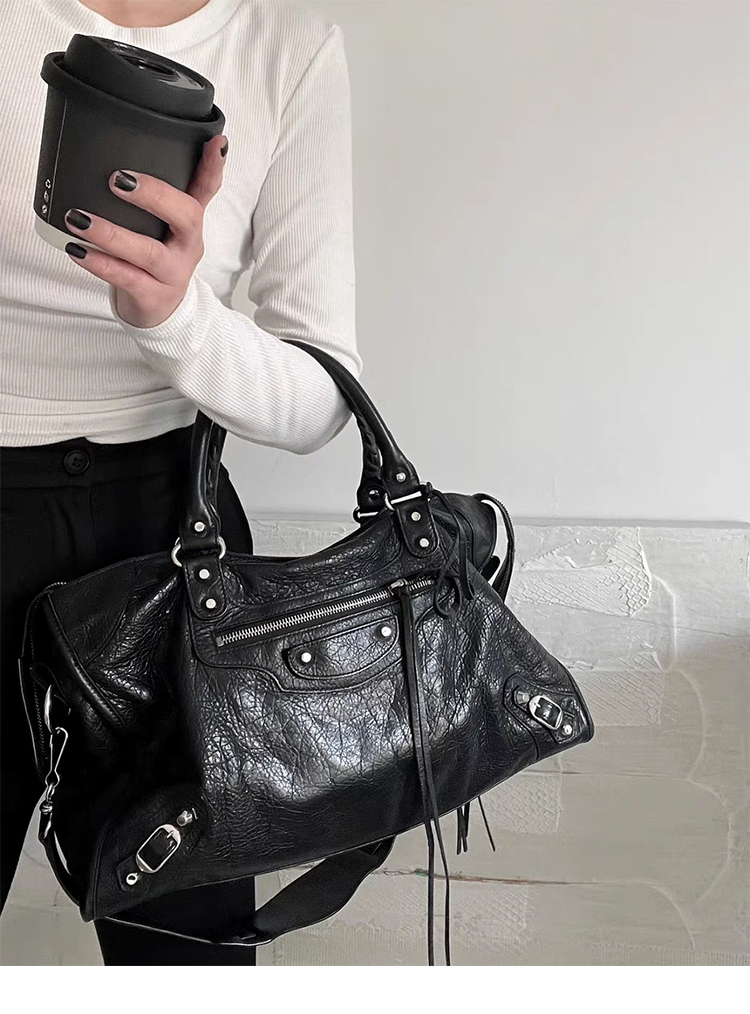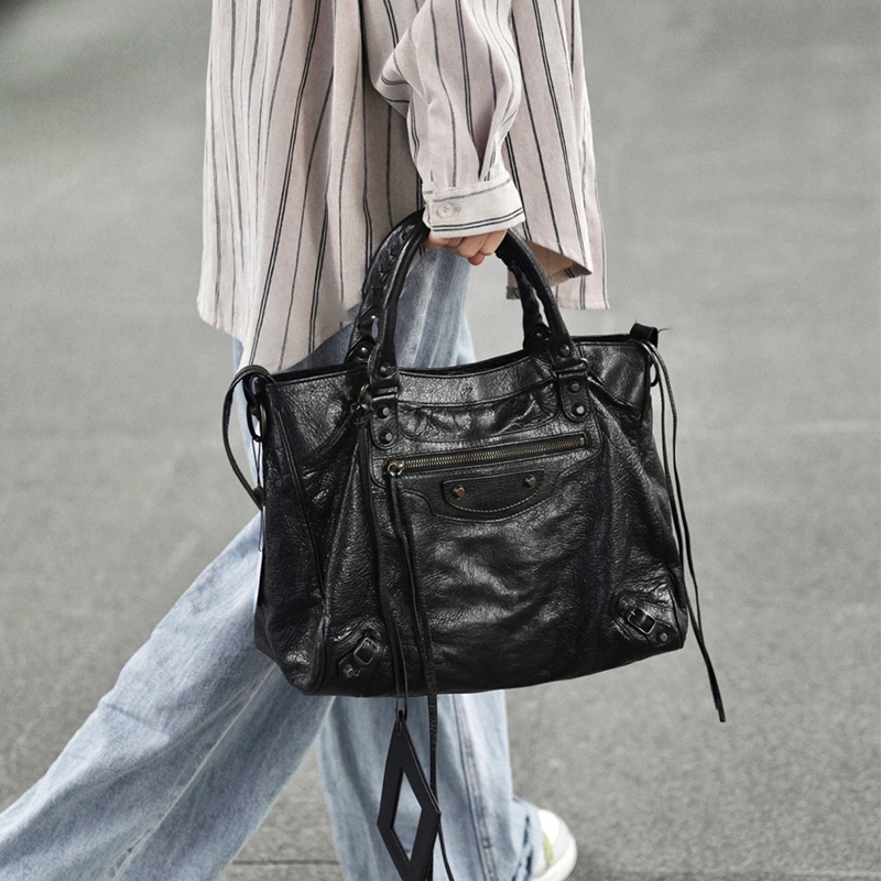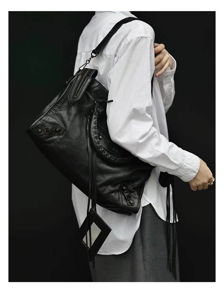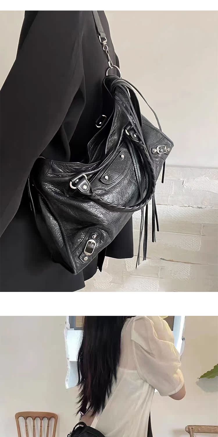 2025新款机车托特包 黑色摩登质感手提包 大容量单肩斜挎包 [Original Page Link]