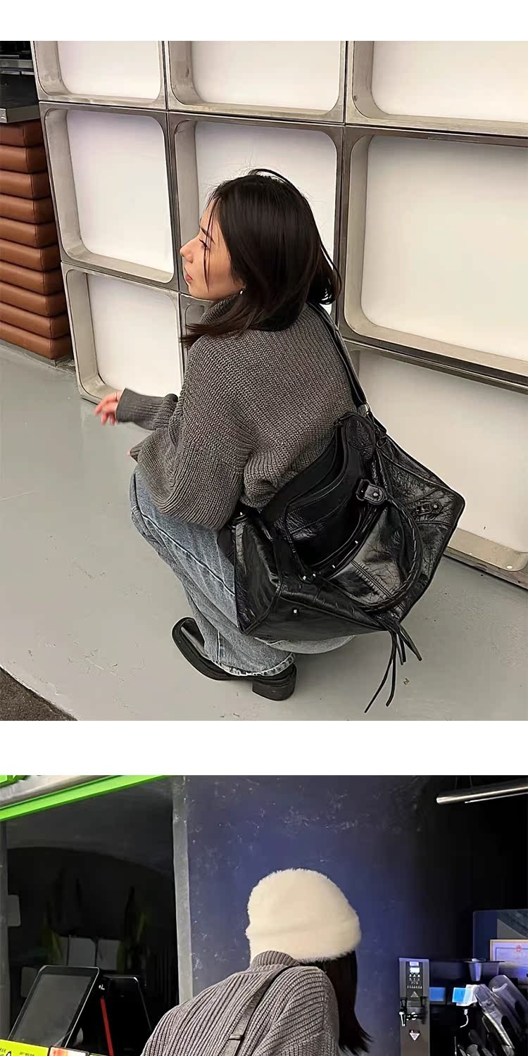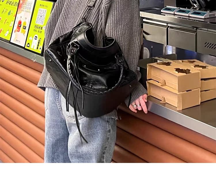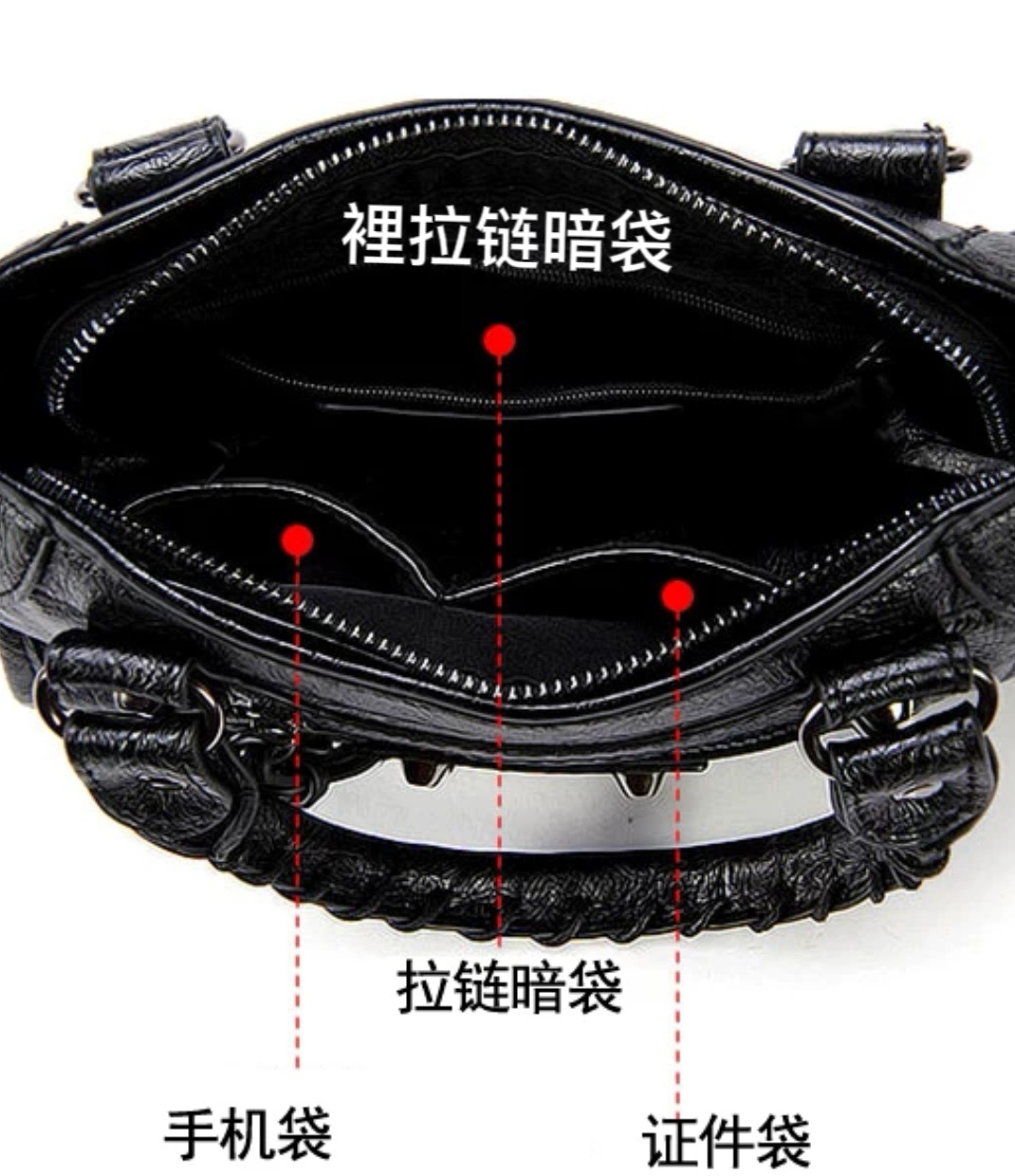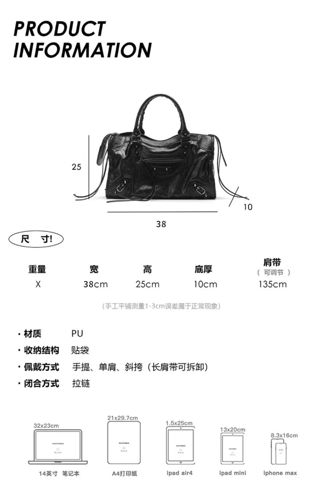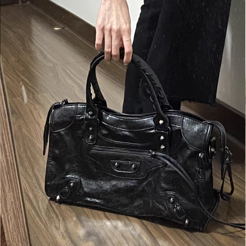 2025新款机车托特包 黑色摩登质感手提包 大容量单肩斜挎包 [Original Page Link]