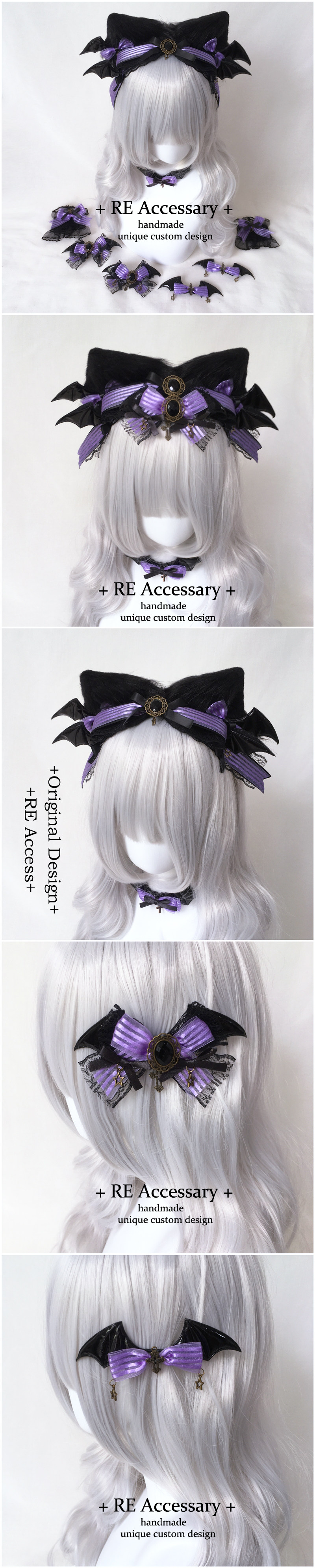 魔女之夜 RE暗黑哥特Lolita饰品蝴蝶结兽耳KC黑紫色手袖 [Original Page Link]