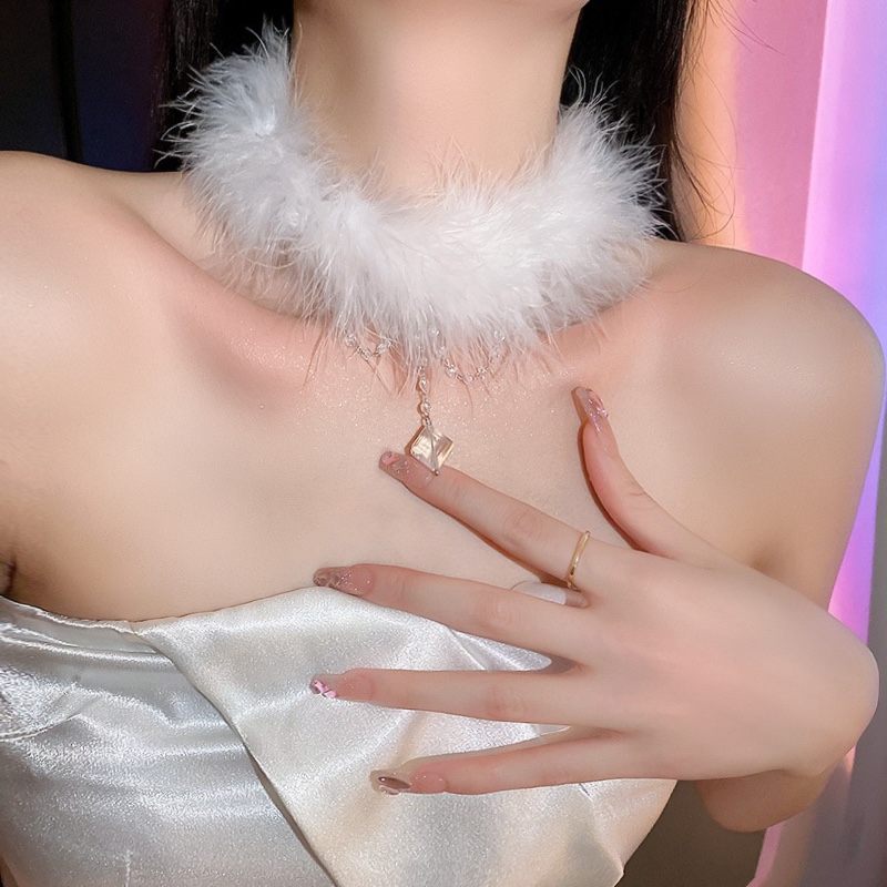 覆古纯欲毛毛项炼水晶流苏羽毛choker短炼甜酷辣妹锁骨炼圣诞节女 [Original Page Link]
