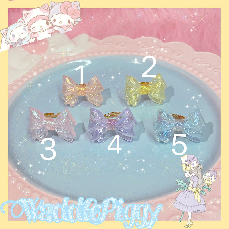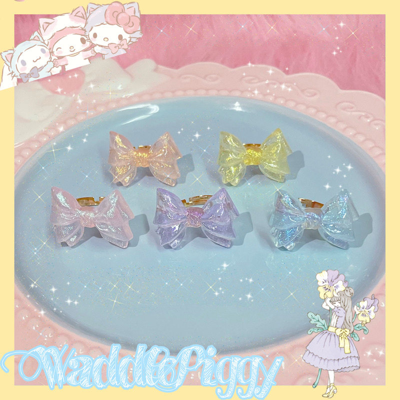【夏夏】Lolita透明流光蝴蝶结可爱甜呲百搭可调节手作戒指保色 [Original Page Link]