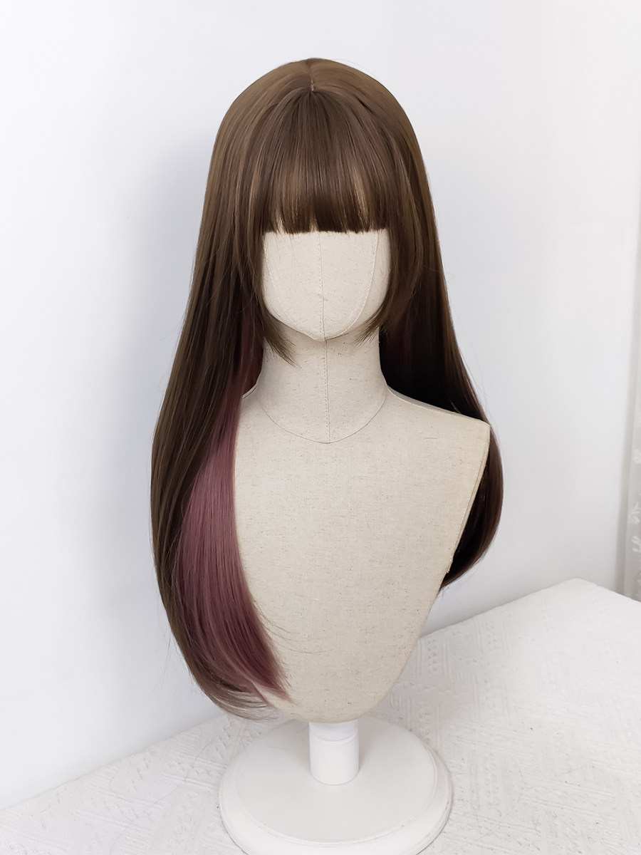 Wig Story + Mass-produced long straight hair wigs for women, perfect for everyday Lolita fashion influencers. Ear-hook dyed wigs.