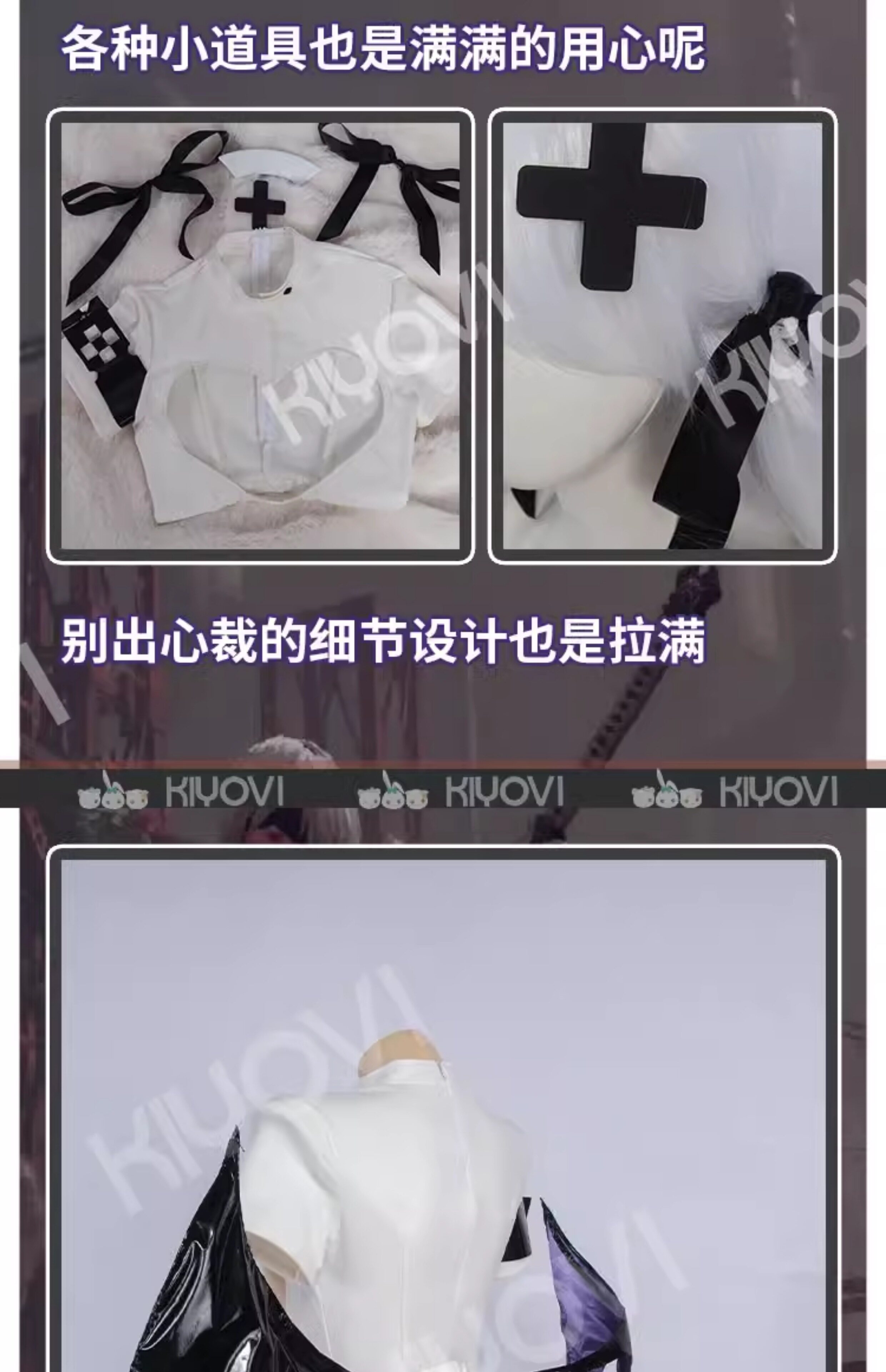KIYOVI现货死之宫环奈护士COSPLAY制服女装PU亮皮衣翅膀尾巴套装 [Original Page Link]