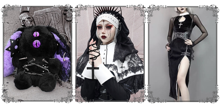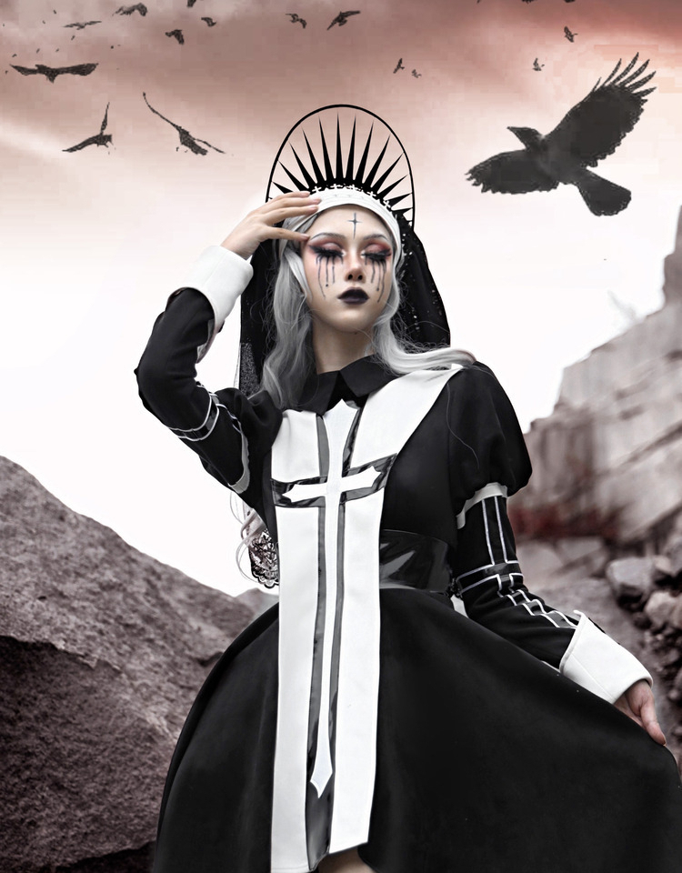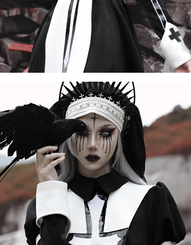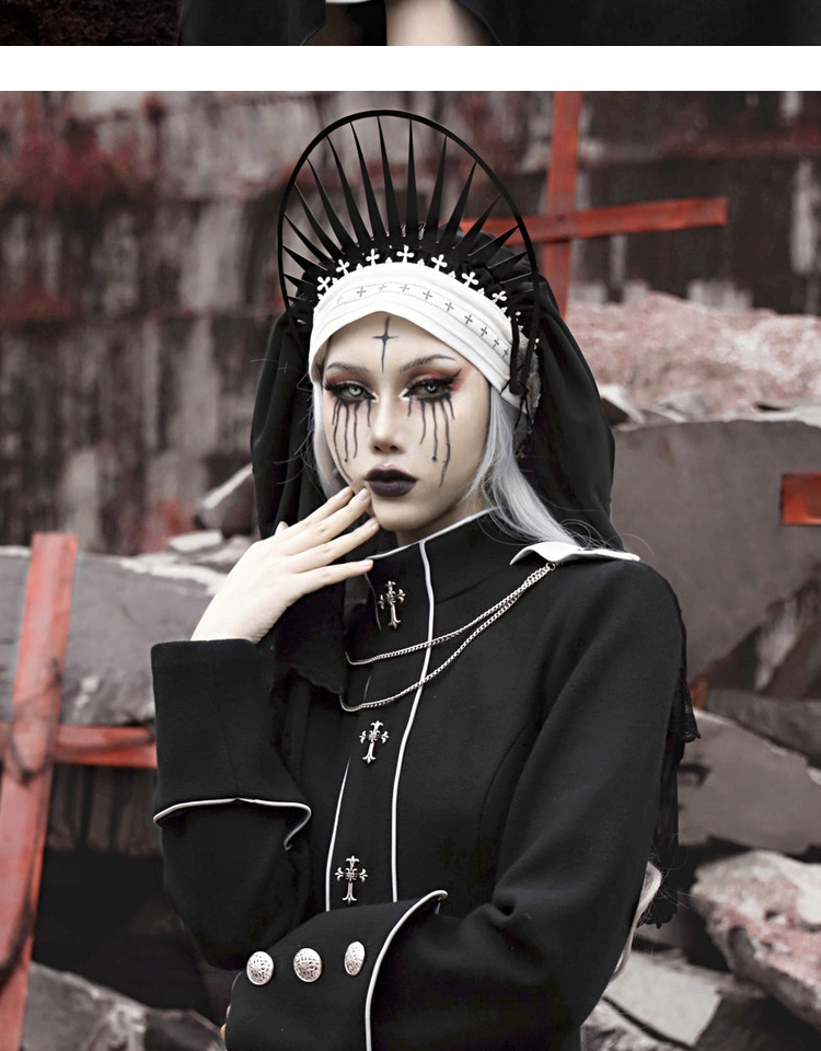 哥德式深色交叉设计双层蕾丝面纱 [Original Page Link]