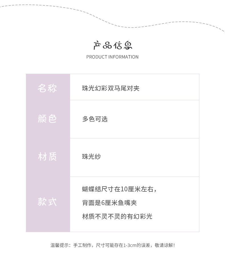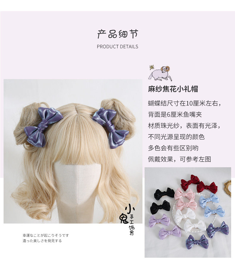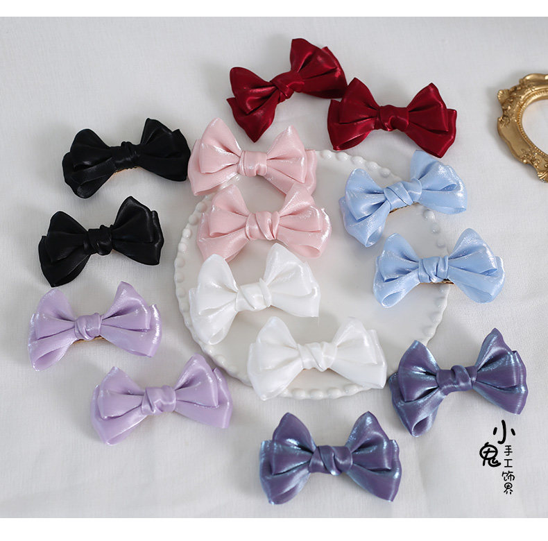 珠光纱多色日系jk头饰甜美可爱双马尾蝴蝶结发饰发夹白色ins边夹 [Original Page Link]