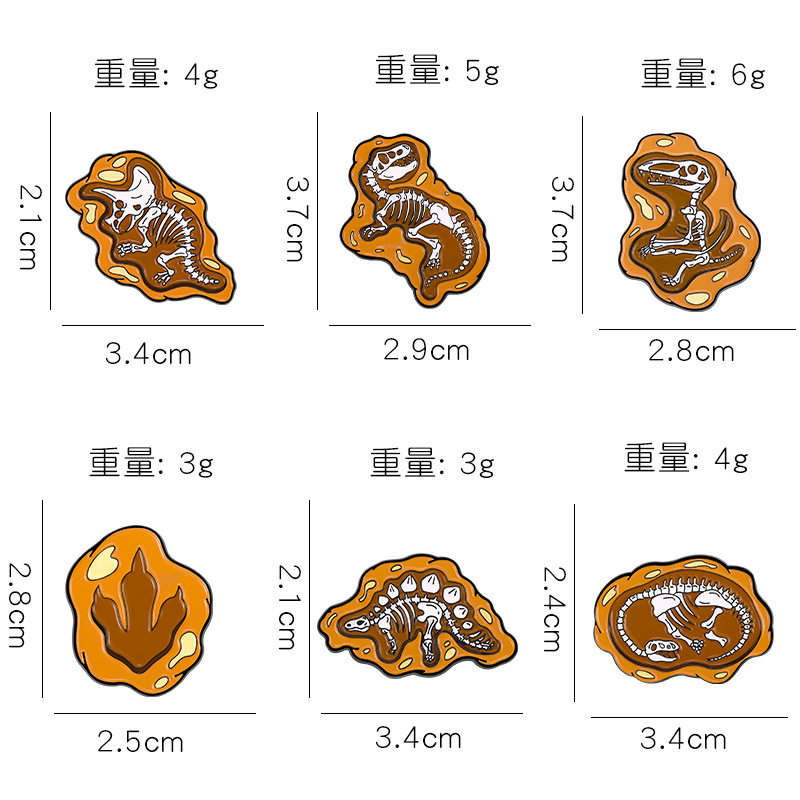 Trendy and creative dinosaur fossil archaeology souvenir brooches, personalized footprint skull dinosaur badges, and Instagram-worthy creative dinosaur fossil archaeology commemorative alloy brooches.