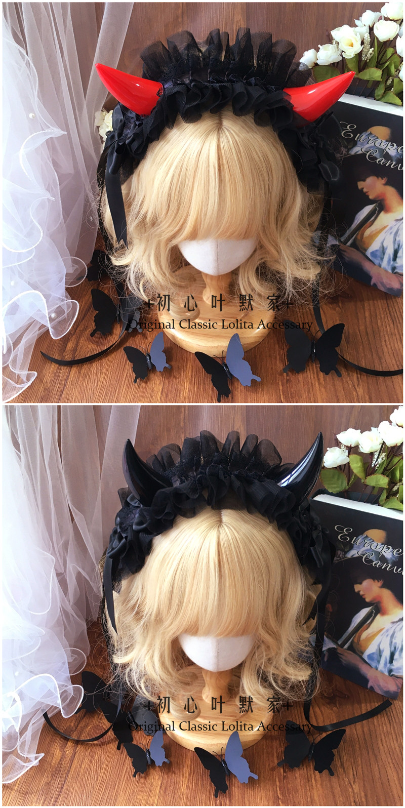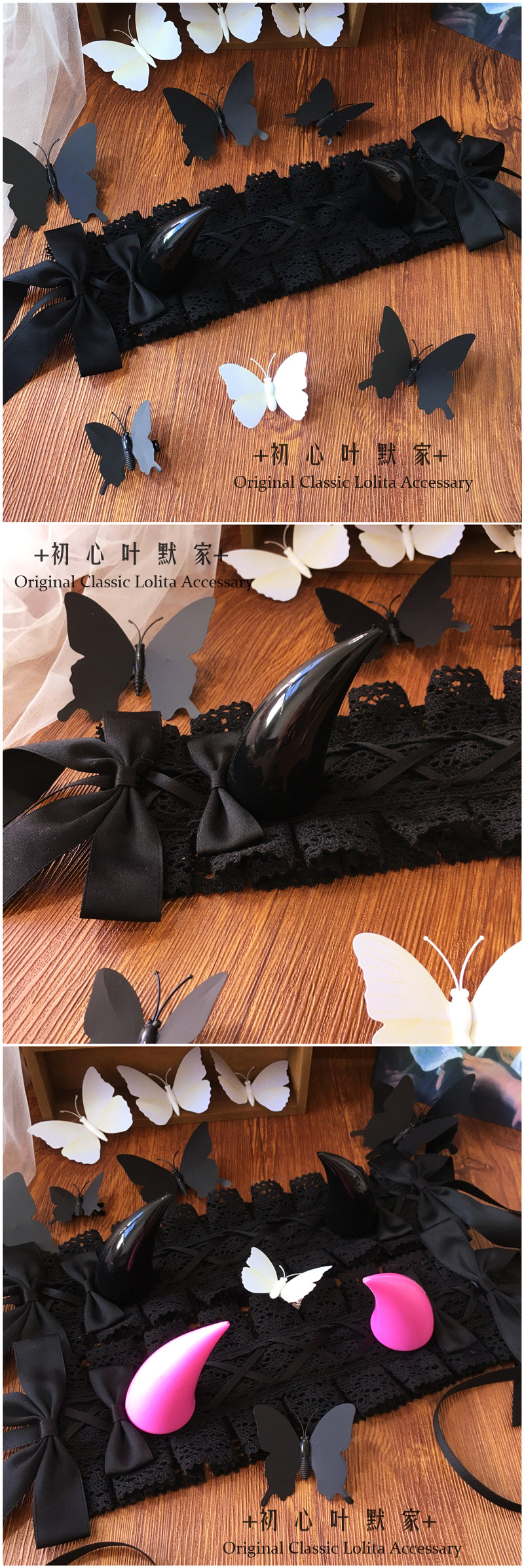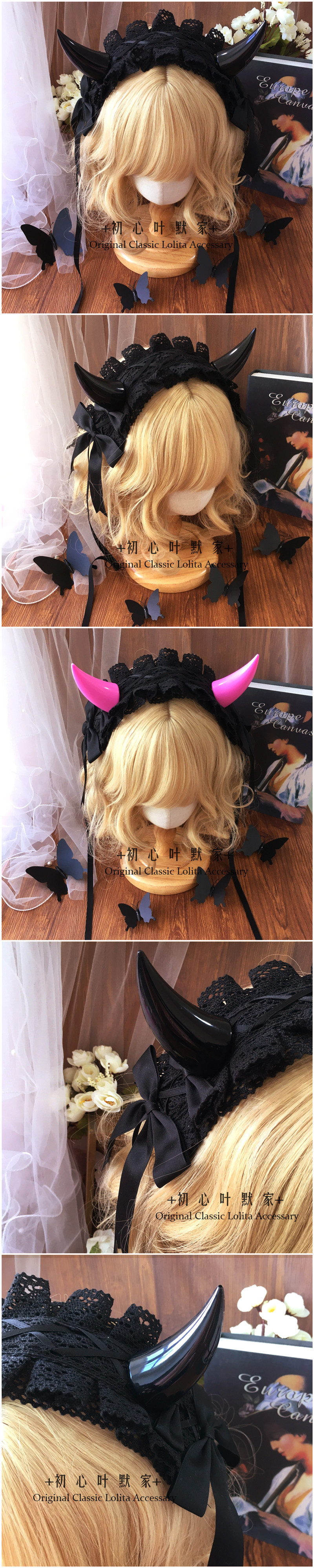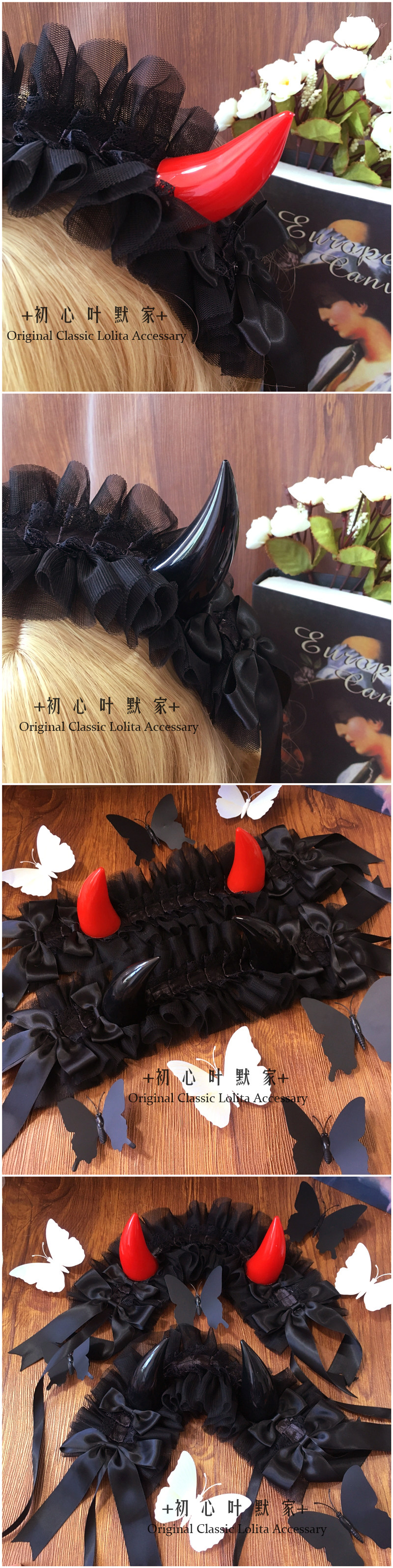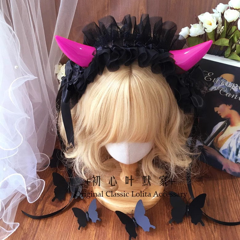 初心手作Lolita恶魔角哥特发带KC发箍暗黑蕾丝花边头饰万圣节 [Original Page Link]