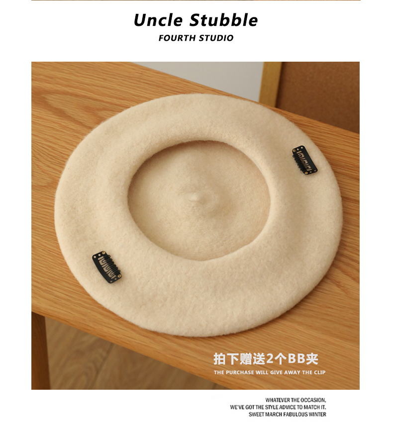 跑量款/纯色羊毛贝雷帽女生冬季百搭蓓蕾帽日系文艺覆古画 画家帽子 [Original Page Link]