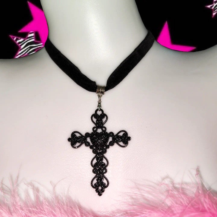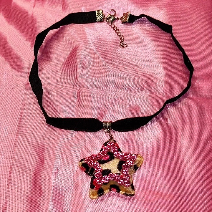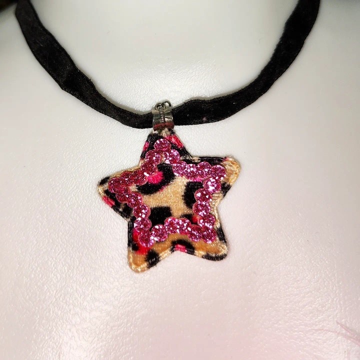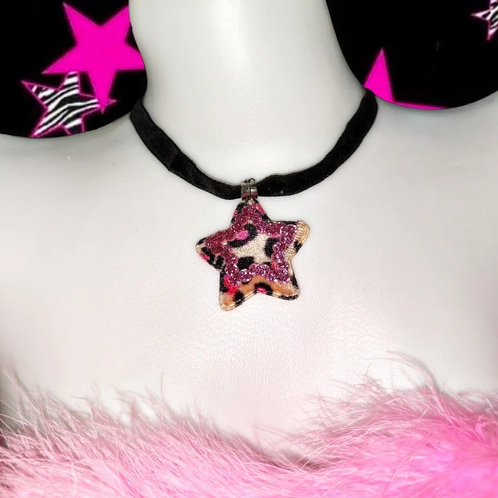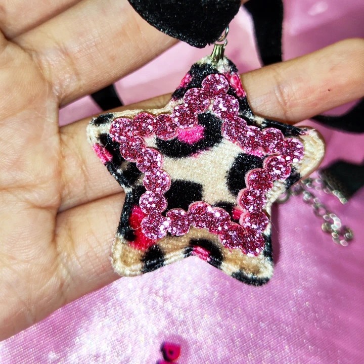 原创设计2000s涩谷辣妹y2k原宿十字架豹纹星星毛绒颈链项链项圈女 [Original Page Link]