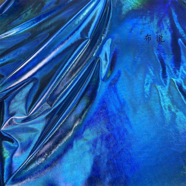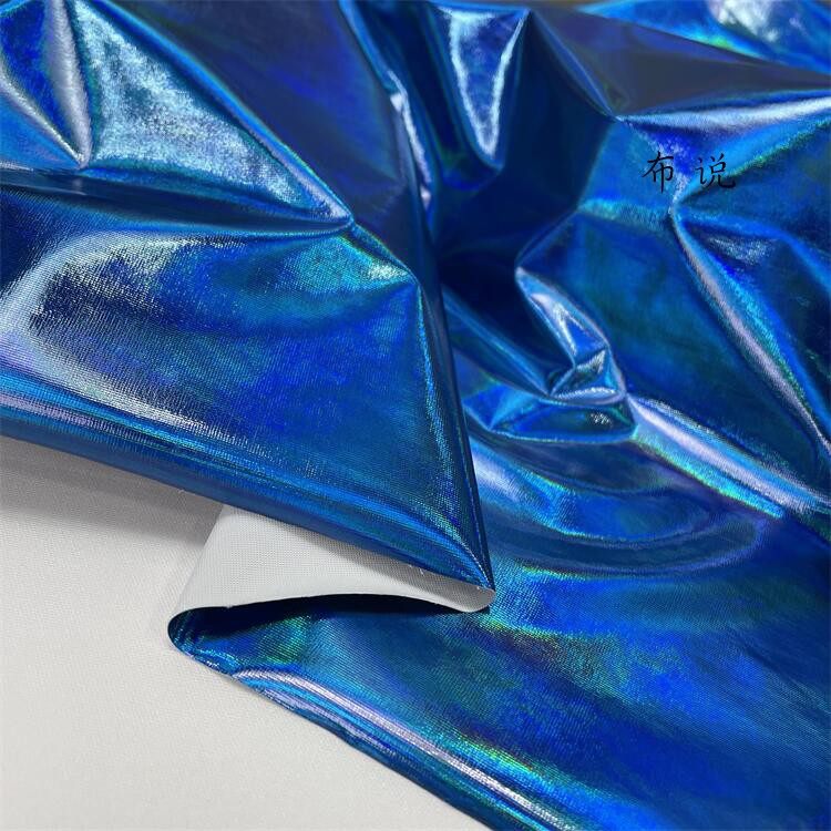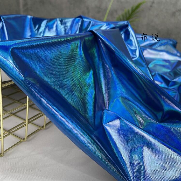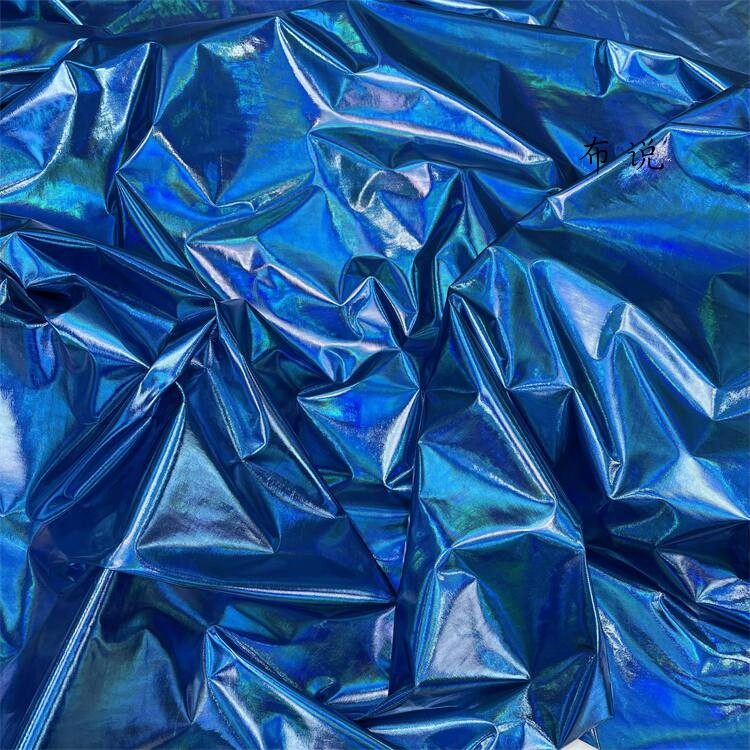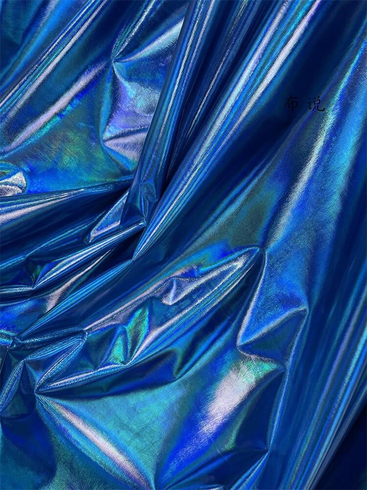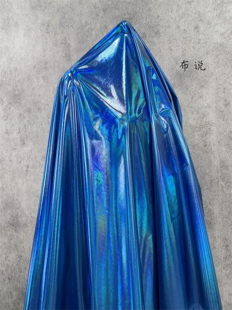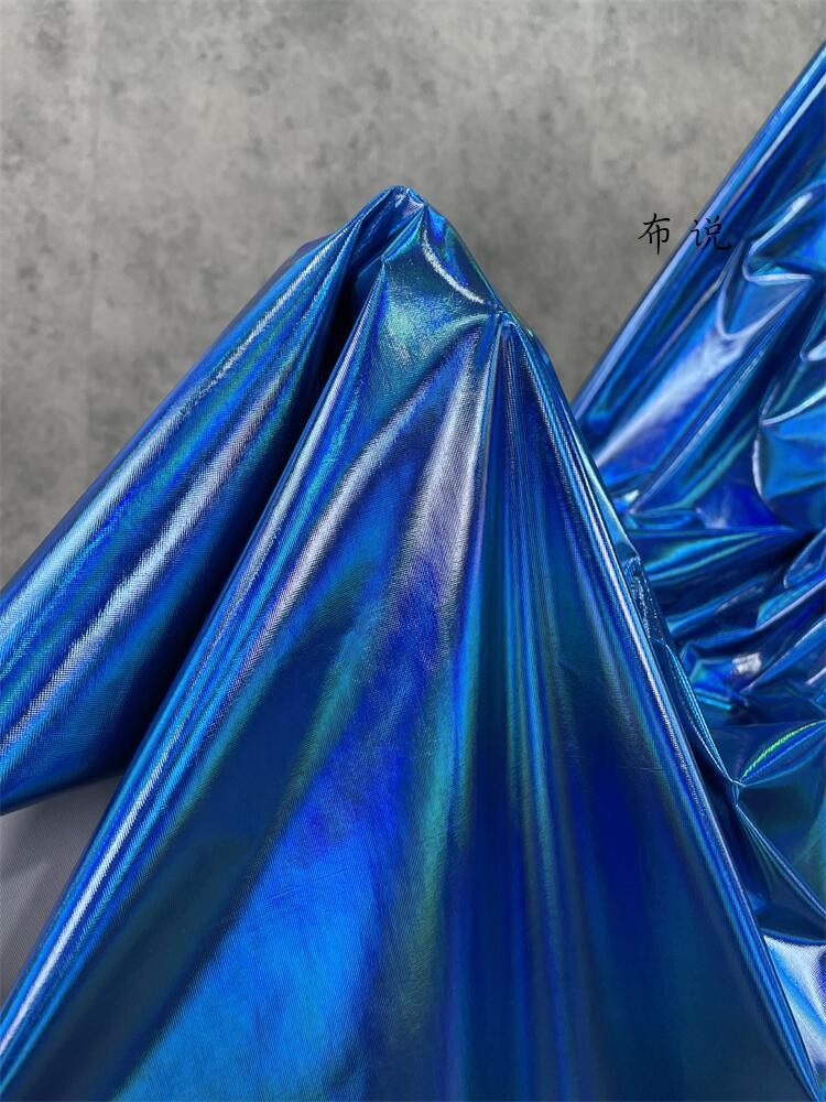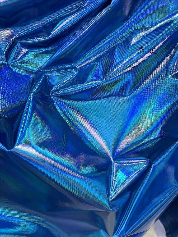 烫金 妖艳蓝色 镜面七彩荧光变色幻彩镭射仿皮布料 服装设计面料 [Original Page Link]