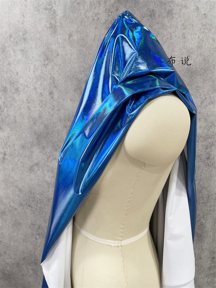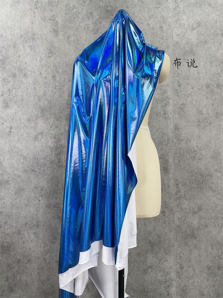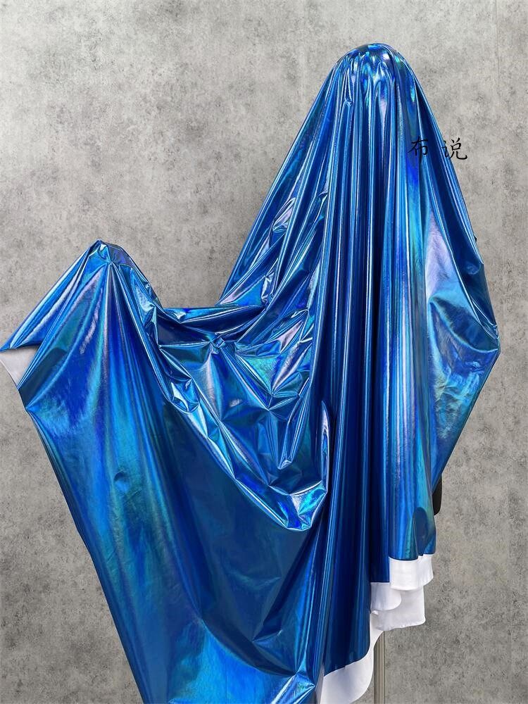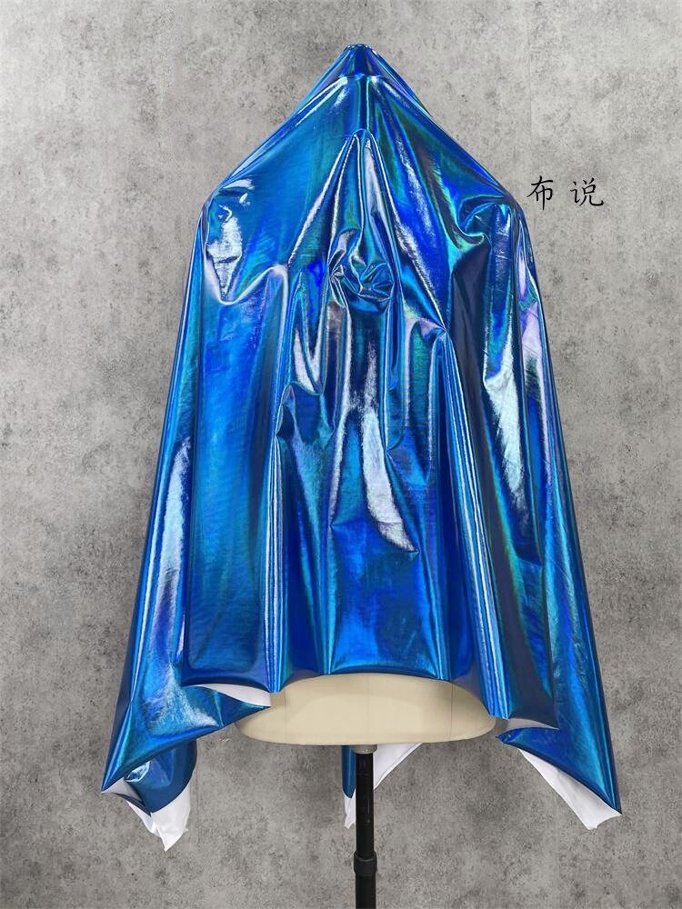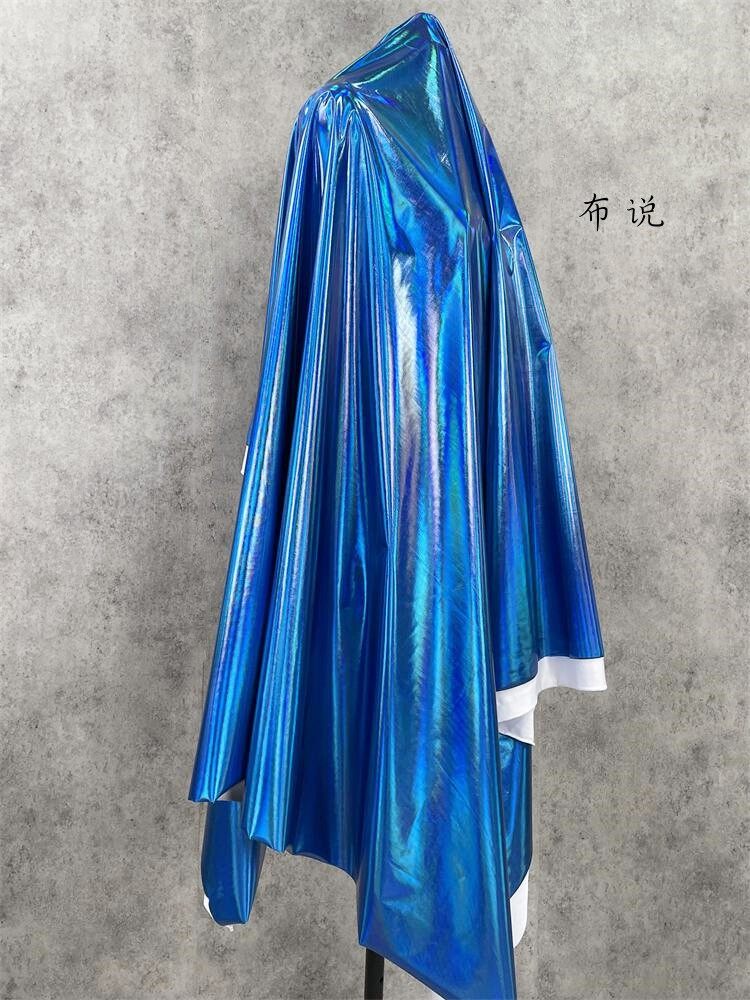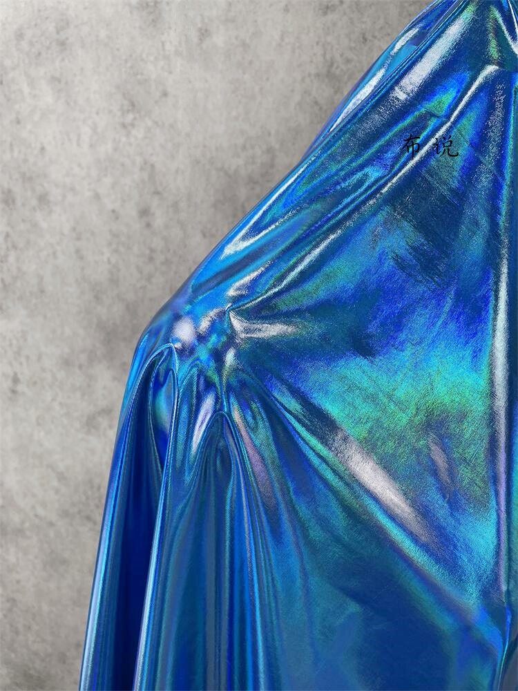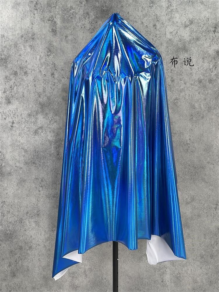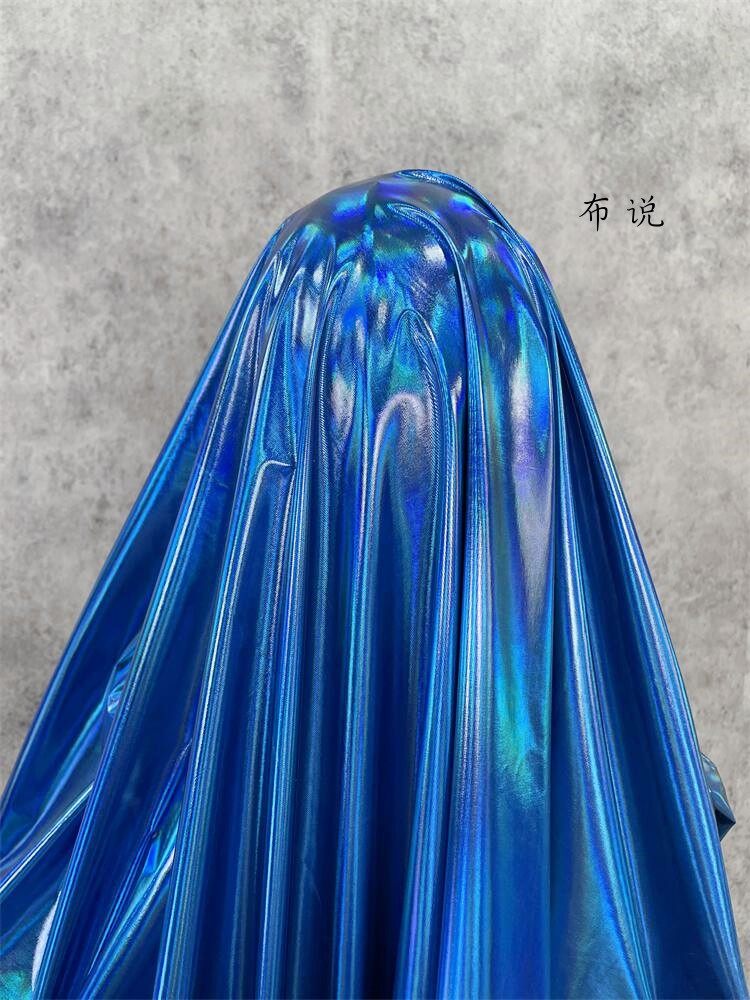 烫金 妖艳蓝色 镜面七彩荧光变色幻彩镭射仿皮布料 服装设计面料 [Original Page Link]