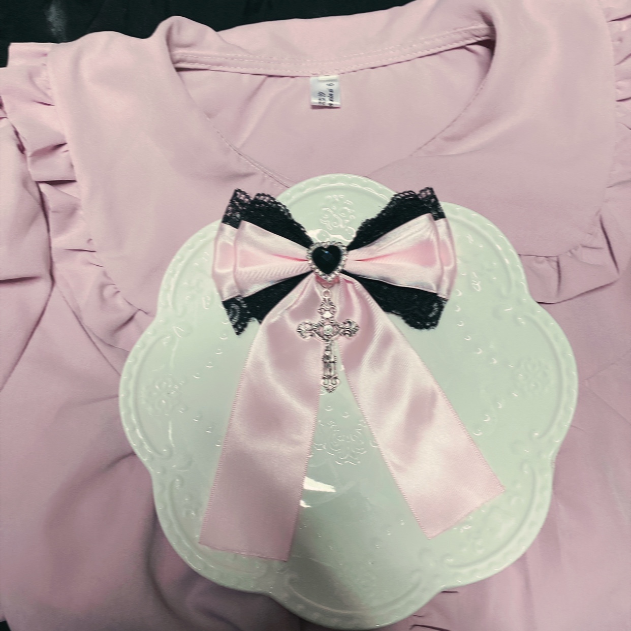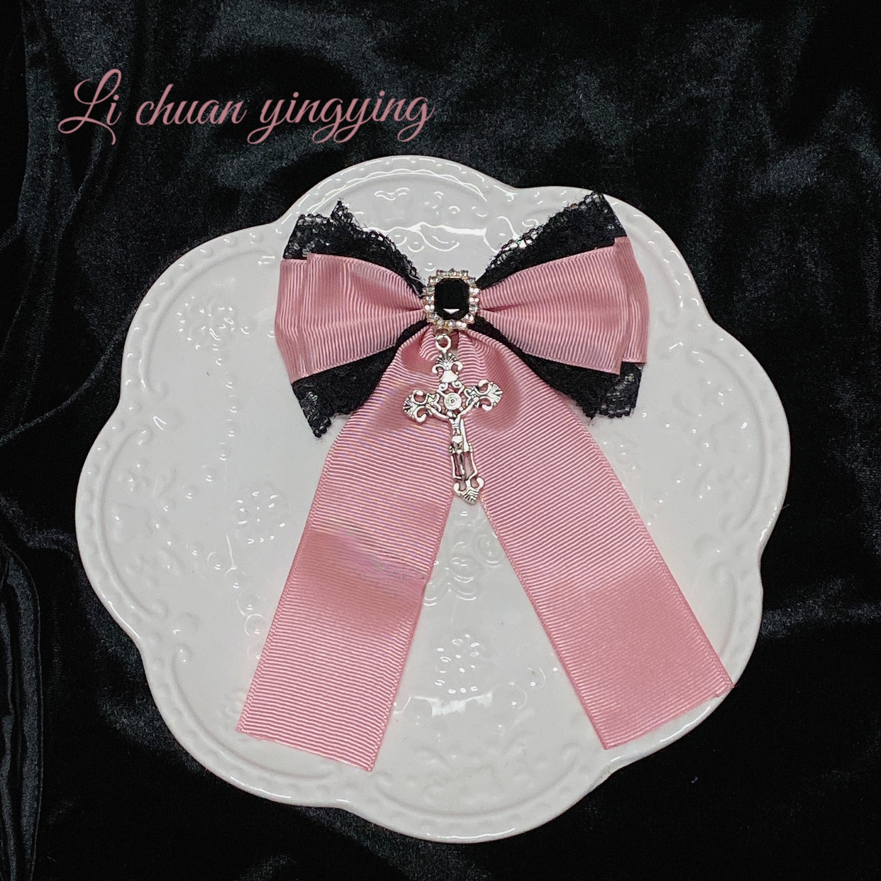 Rojita十字架胸针领结黑蕾丝边夹哥特风 [Original Page Link]