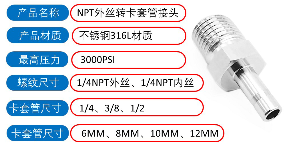 1/4NPT外丝转1/4管开槽不锈钢316L接头卡套管高压软管终端转换头 [Original Page Link]