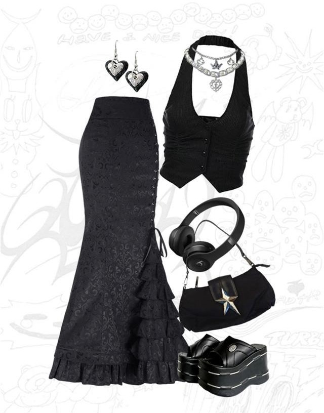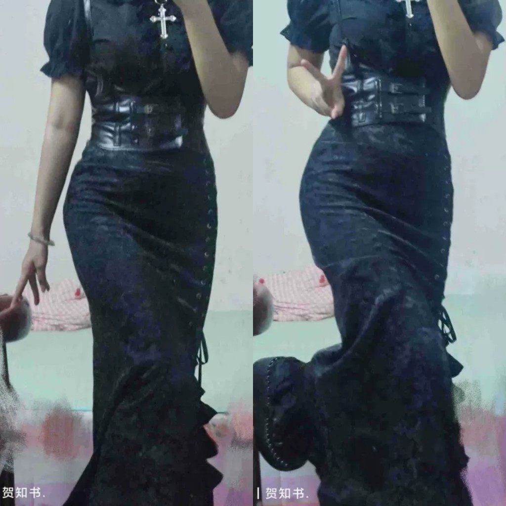 跨境吸血鬼伯爵暗黑哥特风复古巴洛克提花高腰包臀鱼尾长裙半身裙 [Original Page Link]