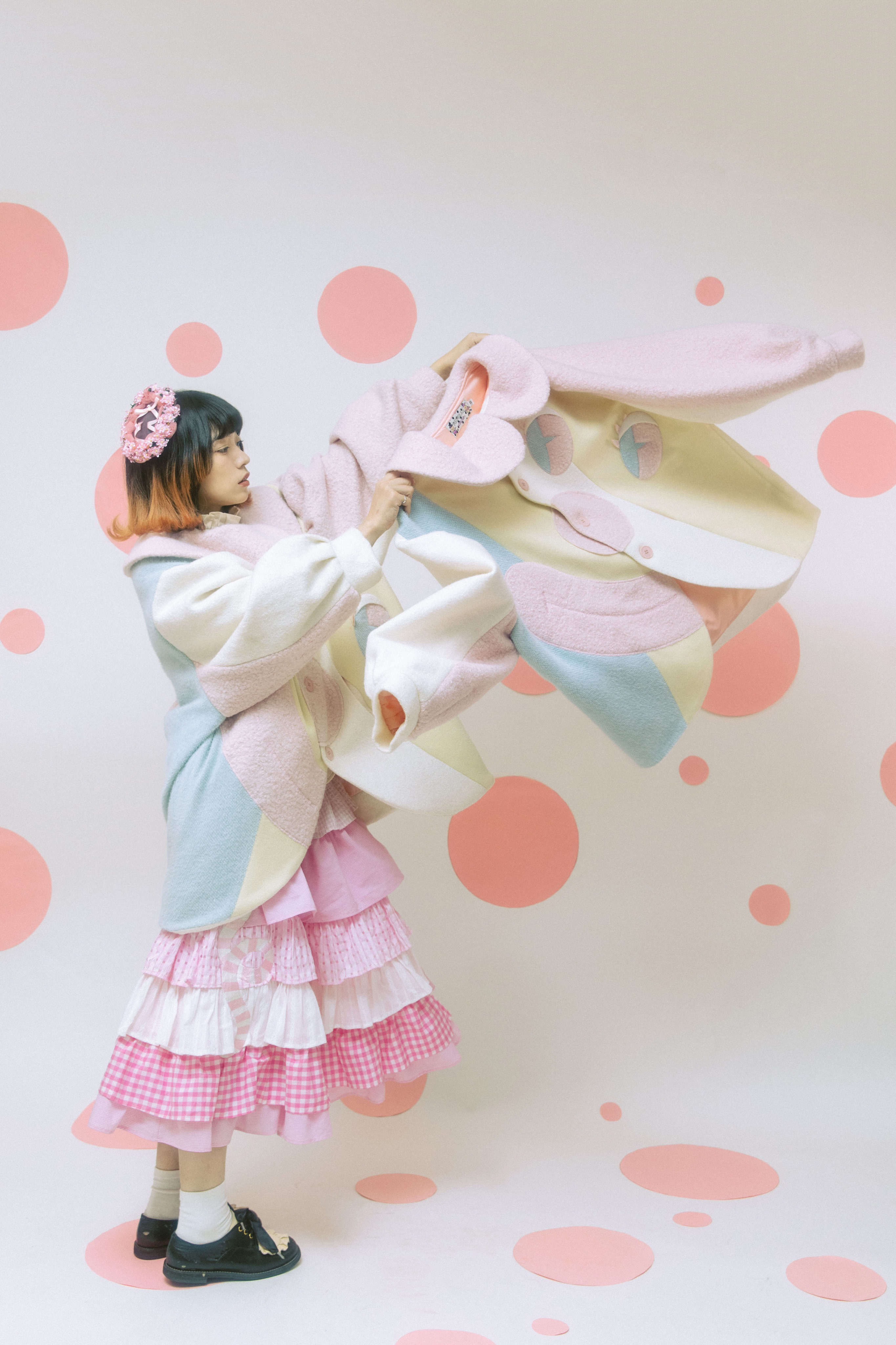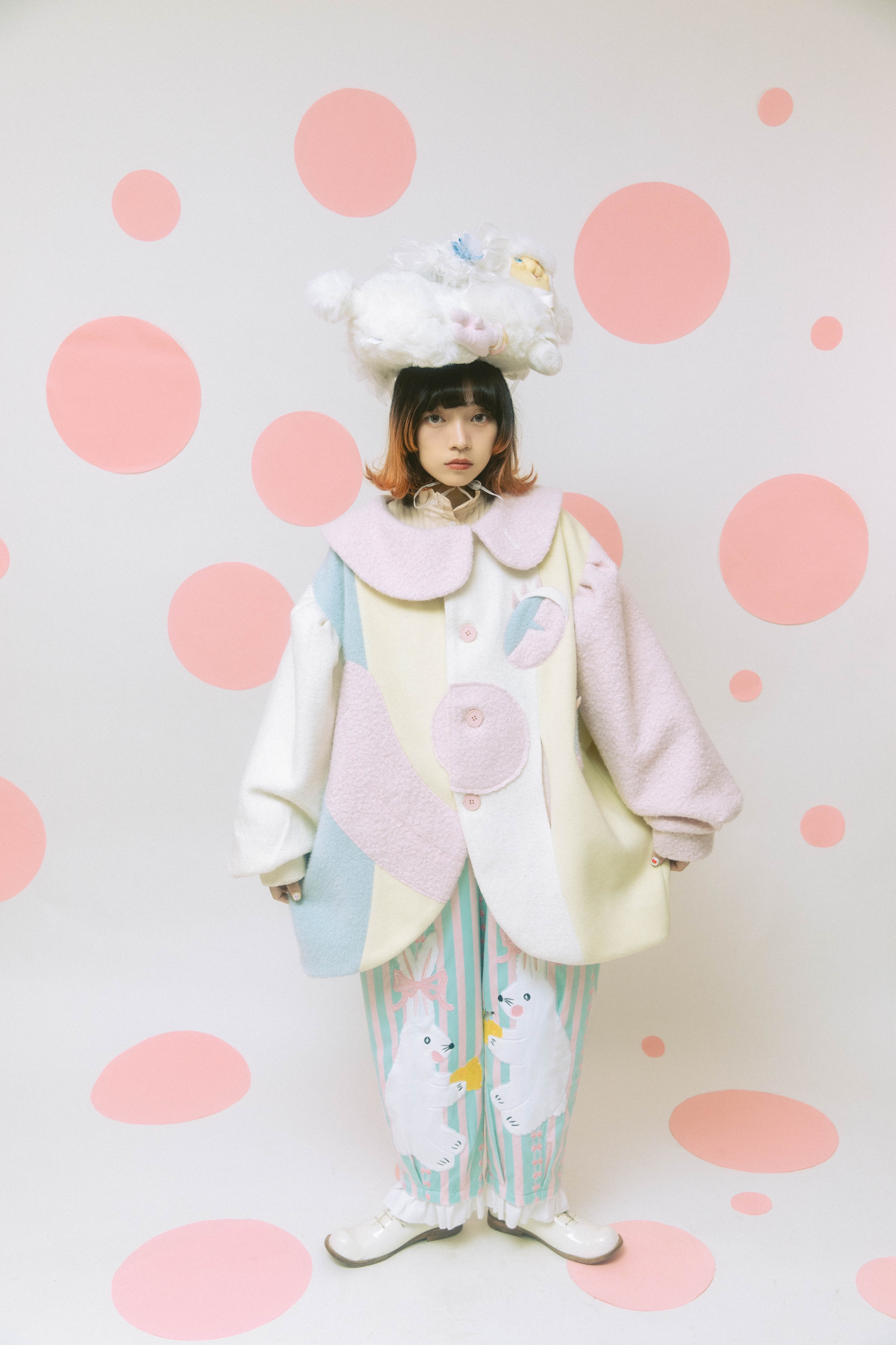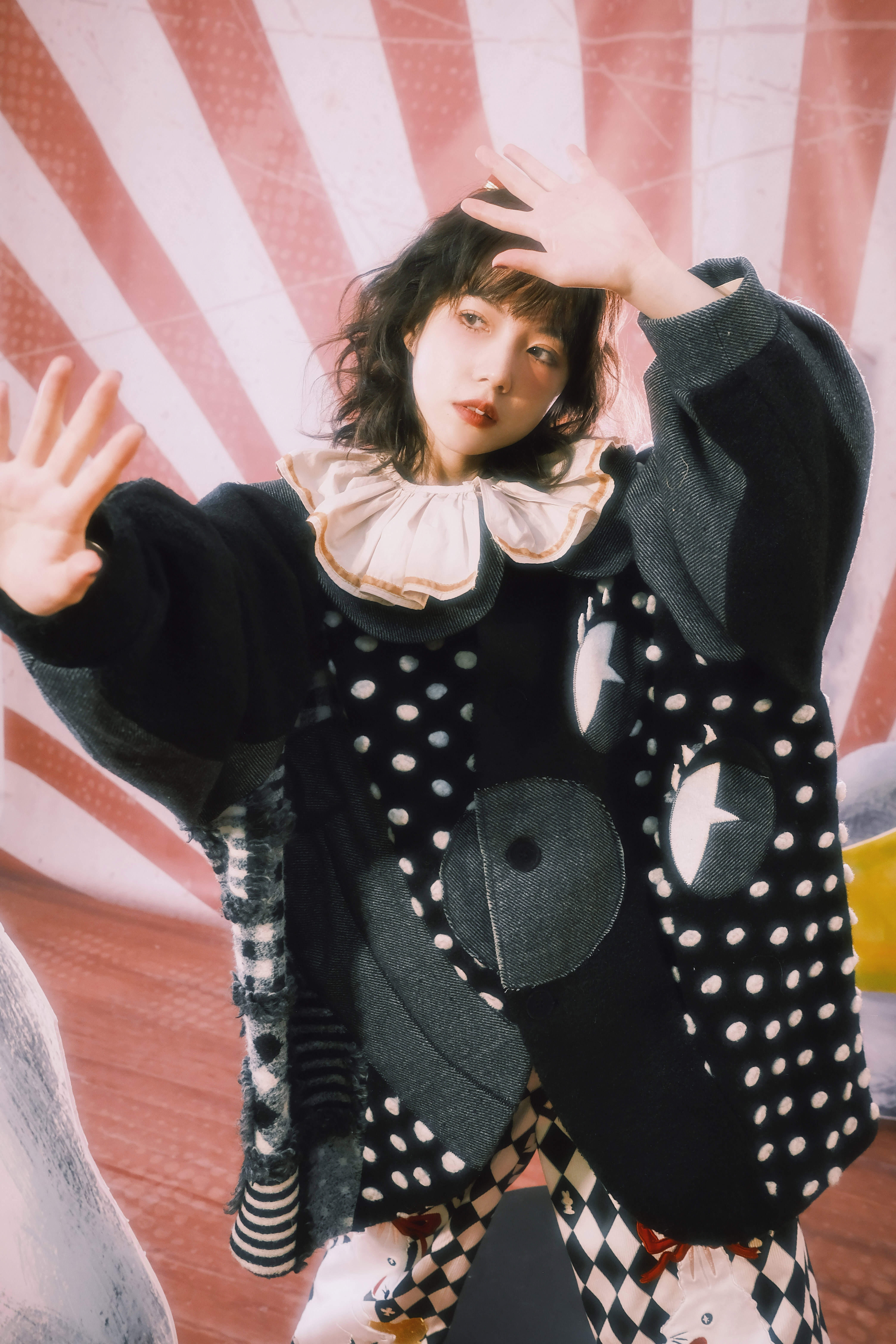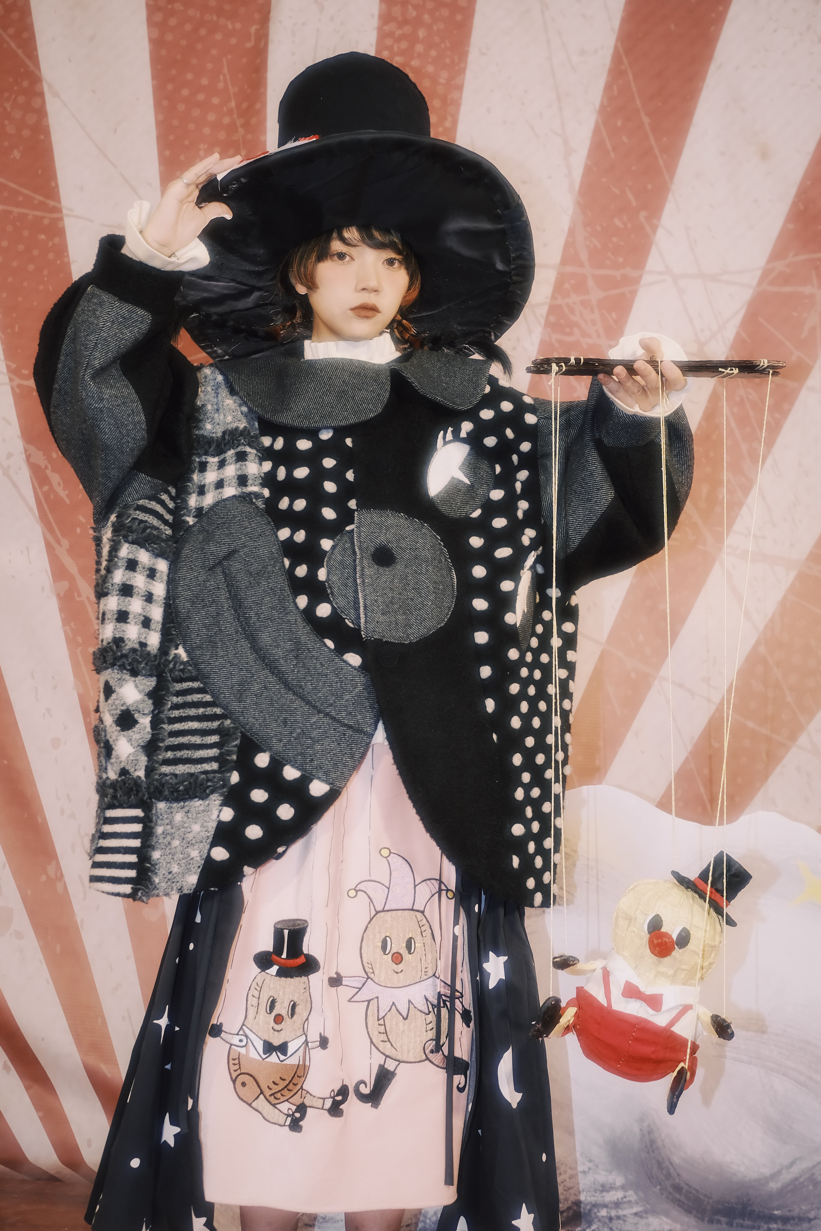 Meugler牛稠岛 奇幻马戏团 小丑拼接毛呢外套 不对称廓形双色大衣 [Original Page Link]