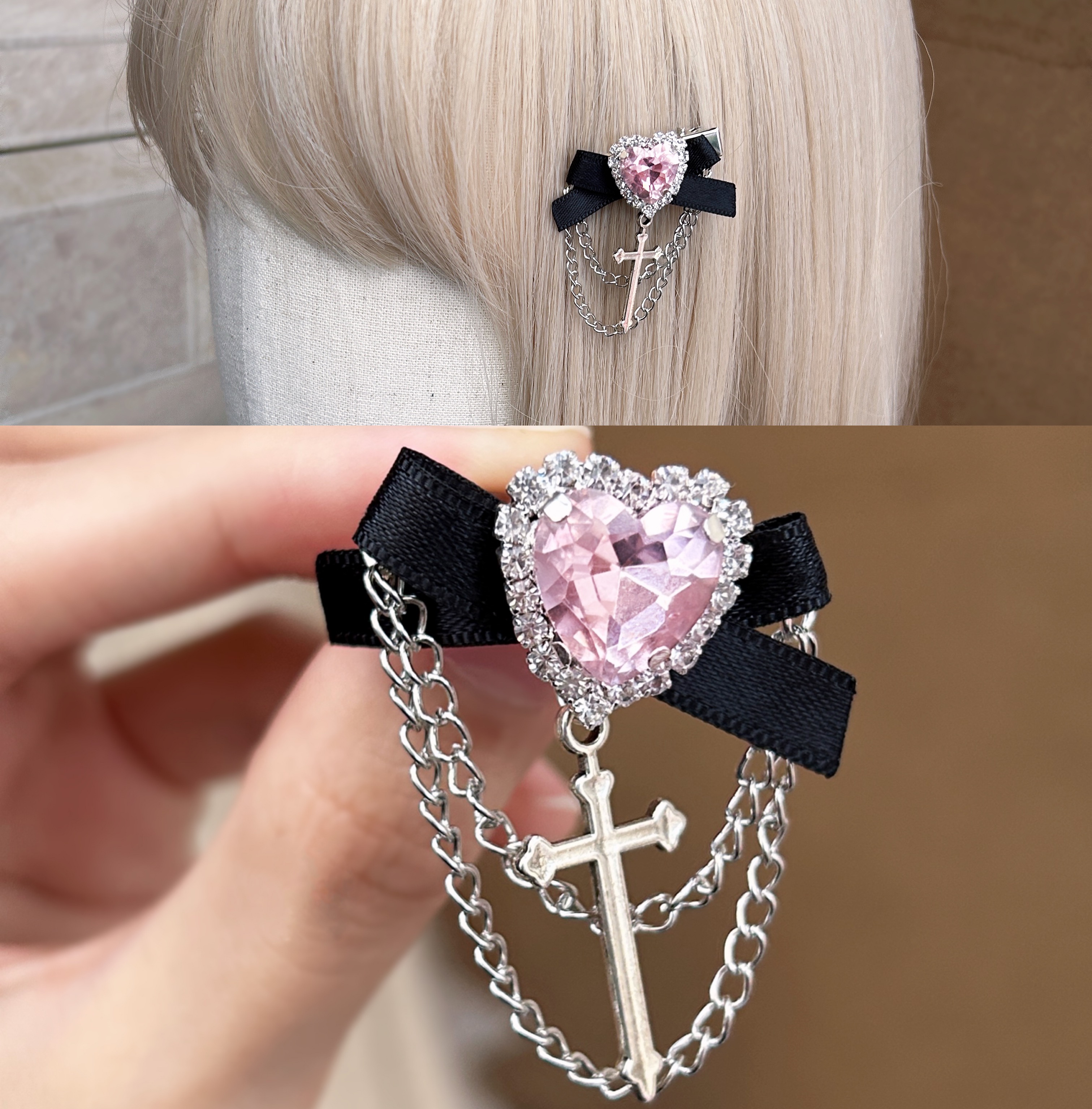 原创 地雷系刘海夹爱心链条十字架小发夹胸针戒指多用 [Original Page Link]