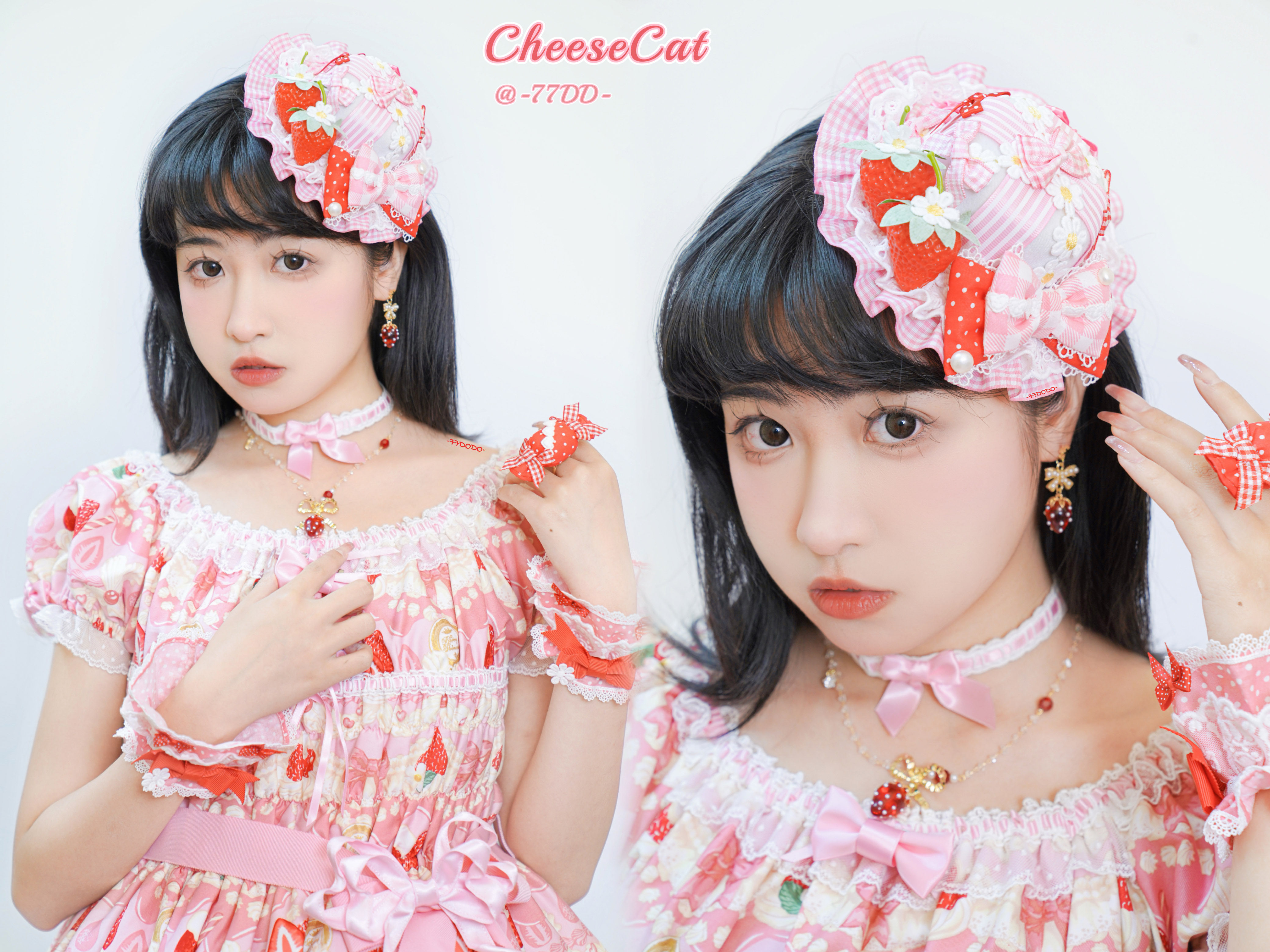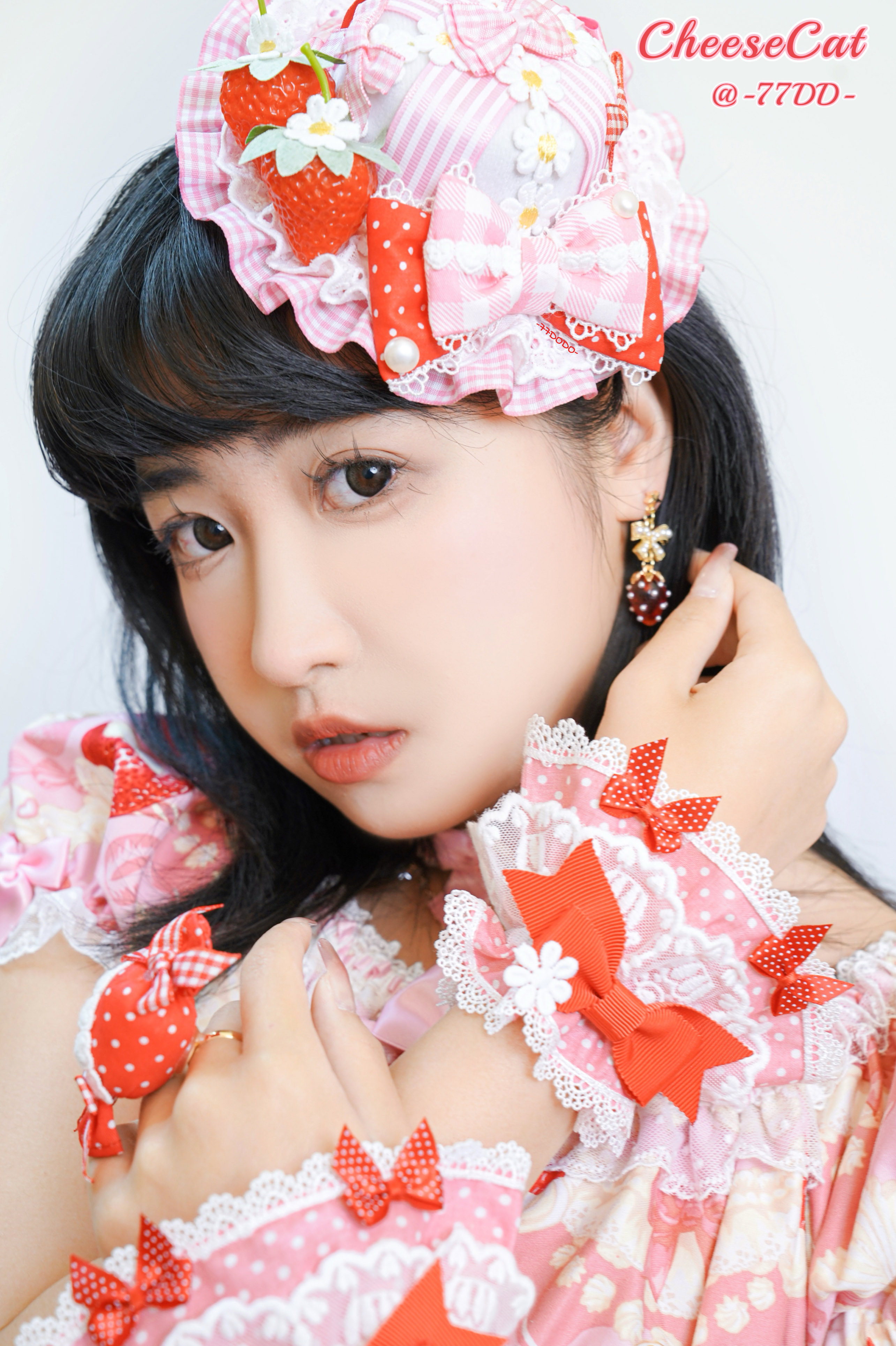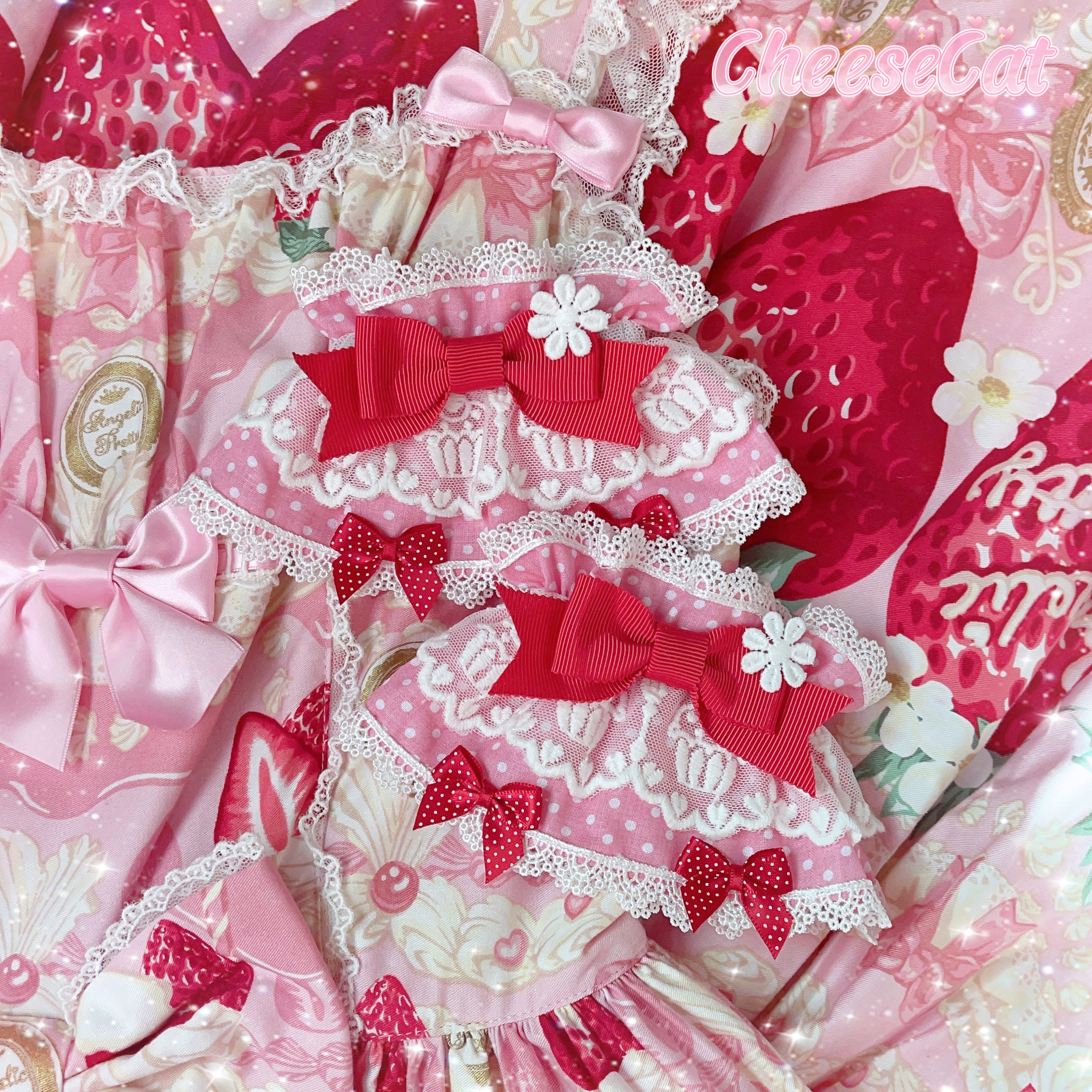 【芝士猫手作】原创AP法厨蕾丝波点呲甜15草莓lolita小物配饰手袖 [Original Page Link]