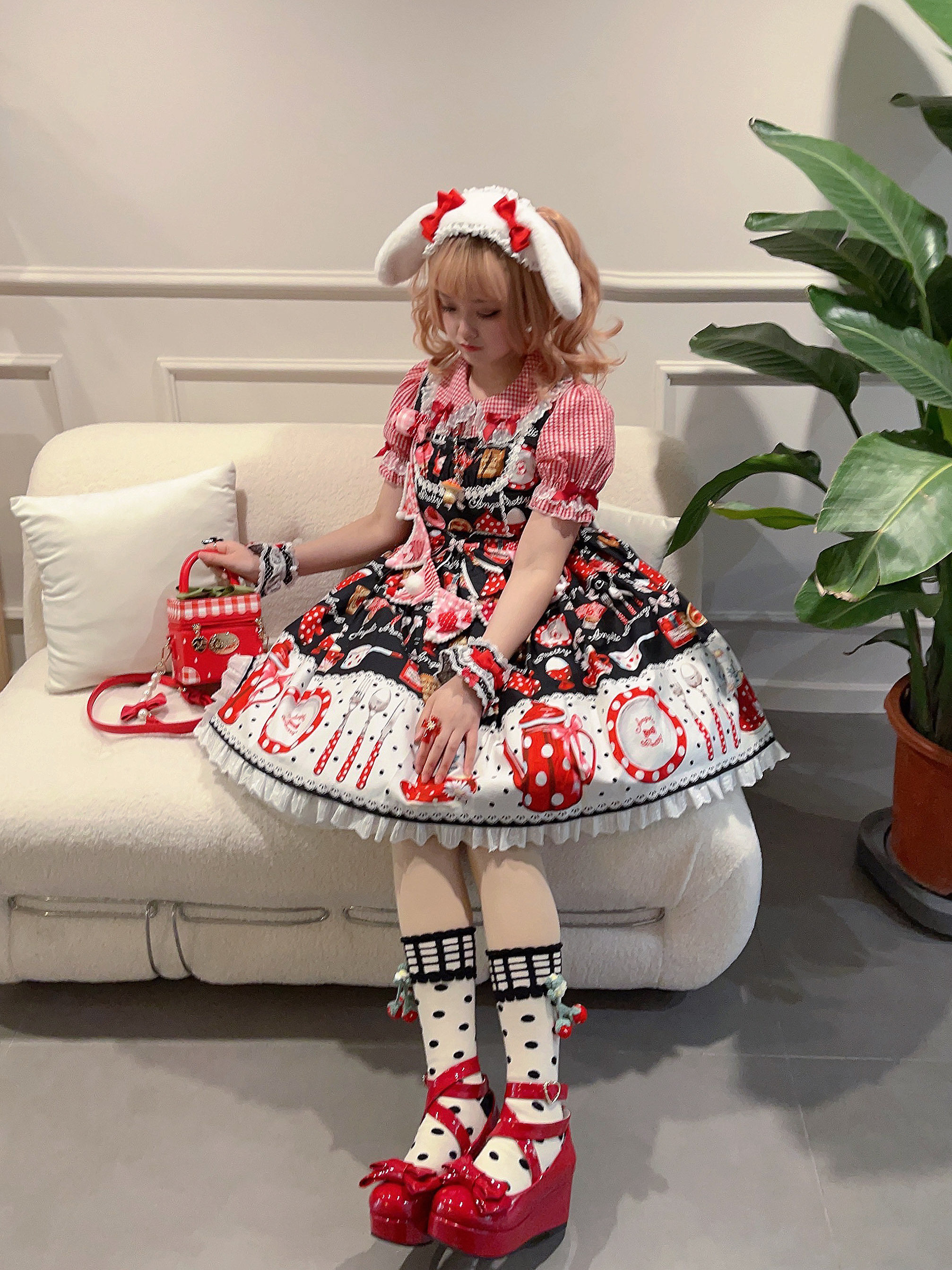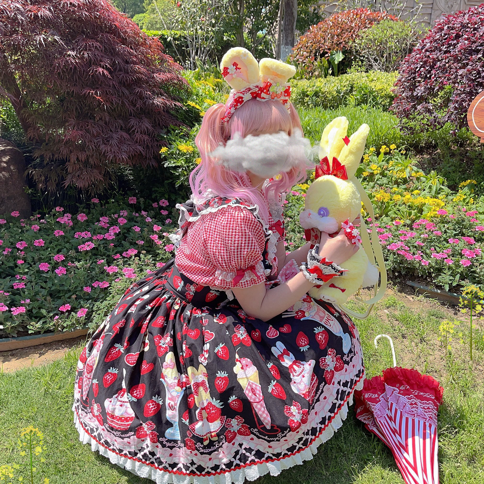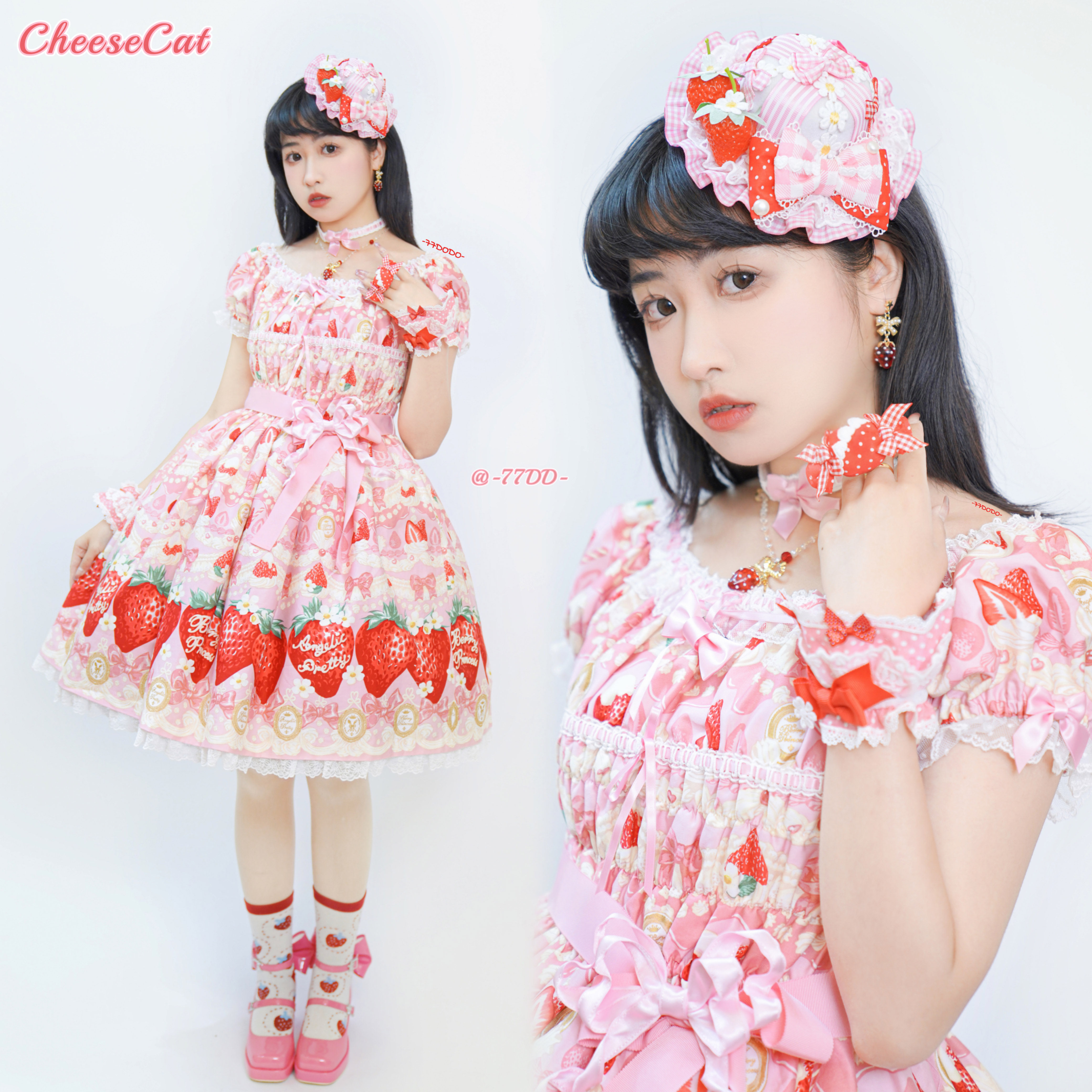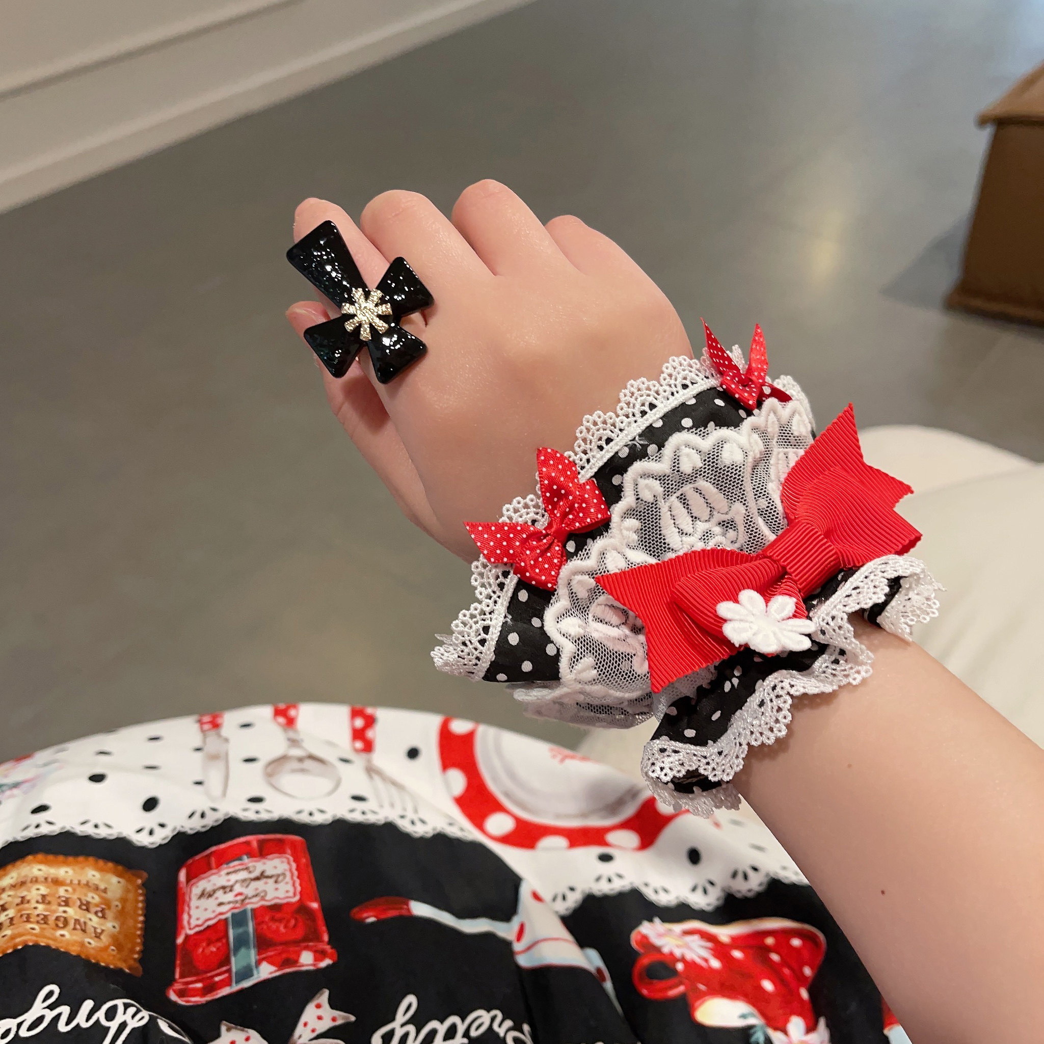 【芝士猫手作】原创AP法厨蕾丝波点呲甜15草莓lolita小物配饰手袖 [Original Page Link]