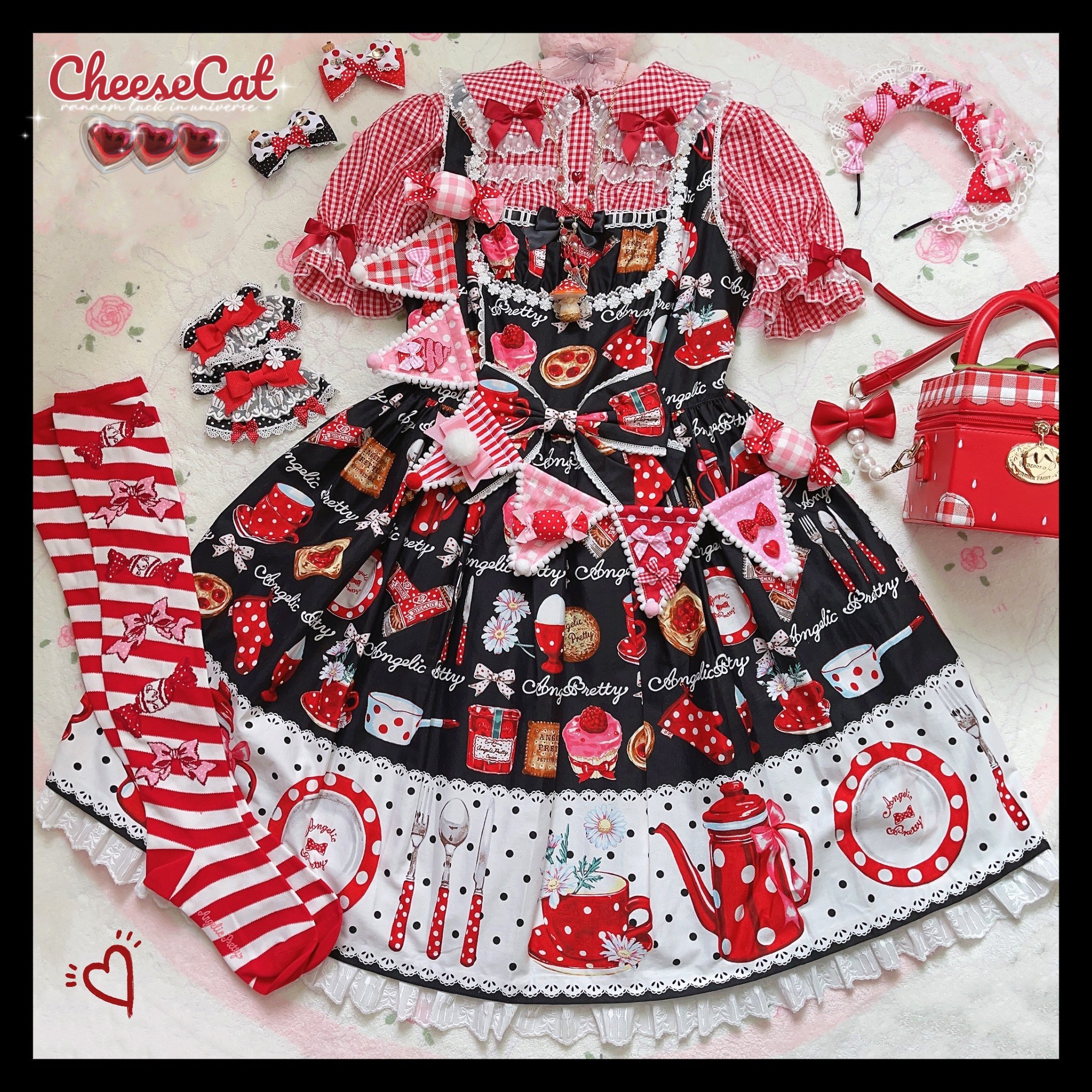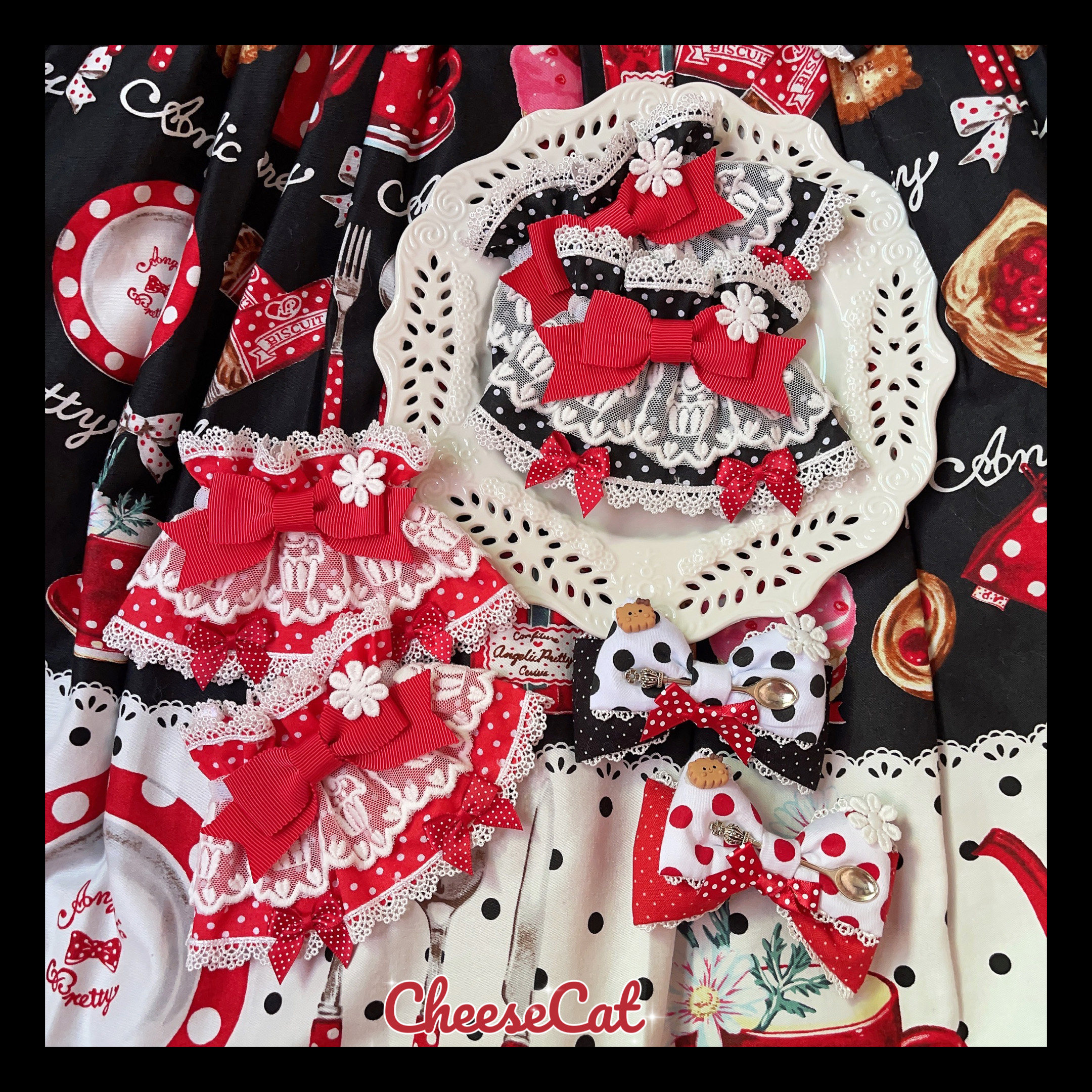 [Cheese Cat Handmade] Original AP French Kitchen Lace Polka Dots Sweet 15 Strawberry Lolita Small Accessories Sleeves