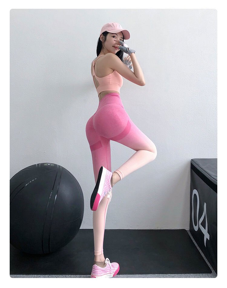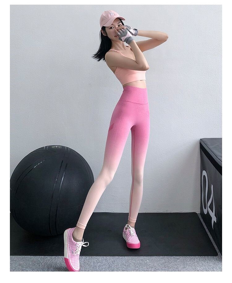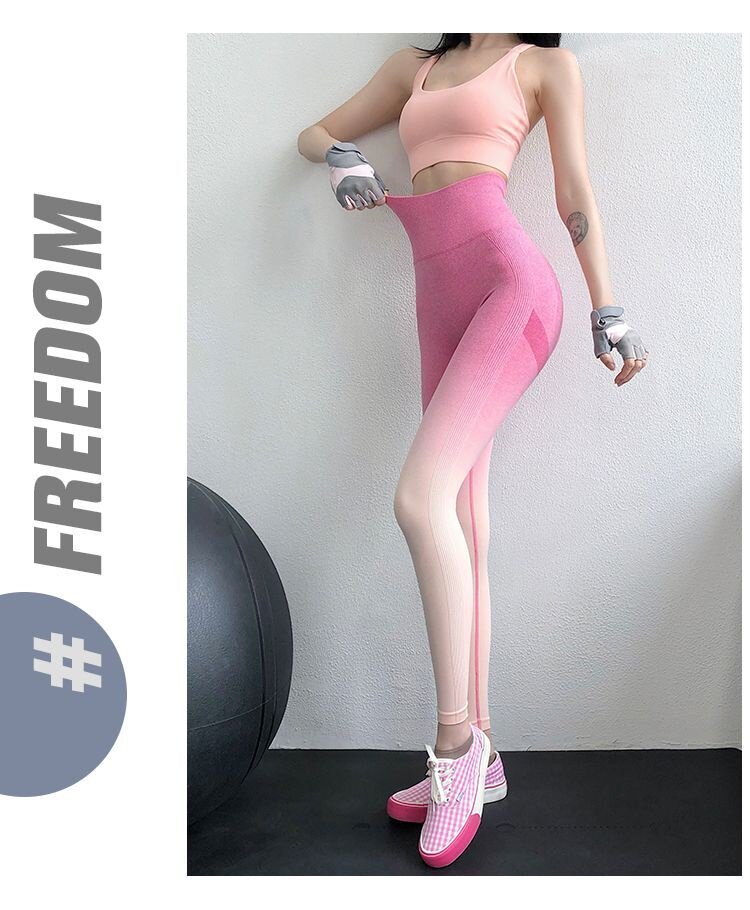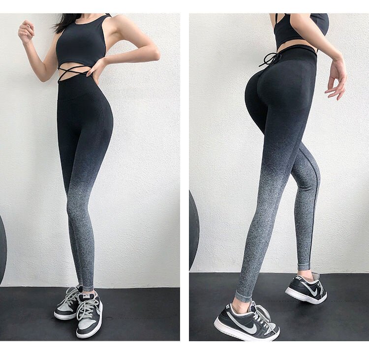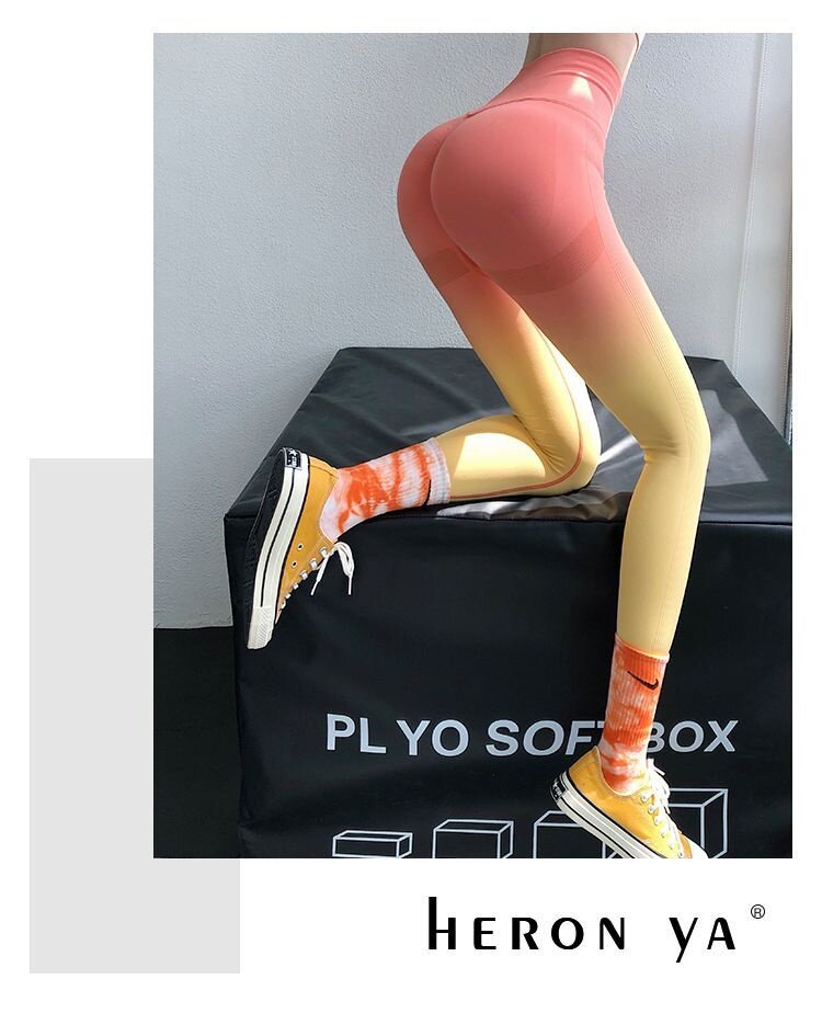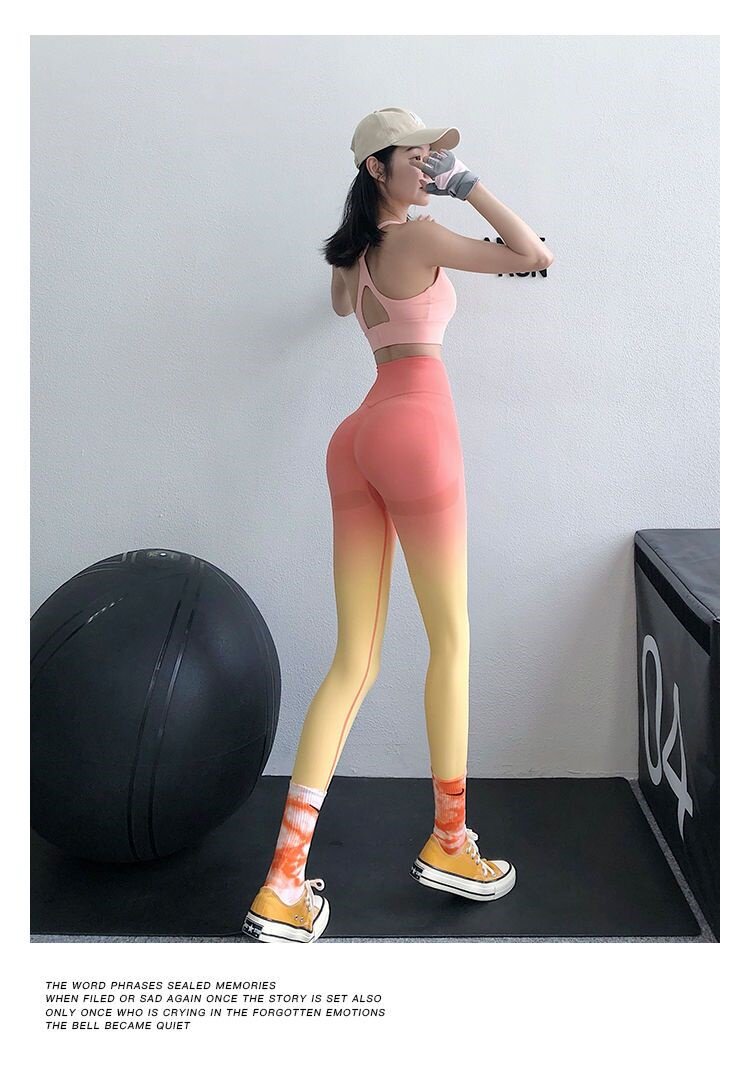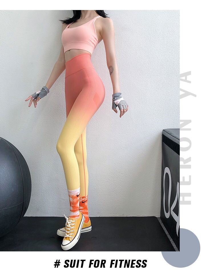 渐变色女士瑜伽裤欧美桃臀健身裤渐变色高腰控肚外穿运动裤紧弹力 [Original Page Link]
