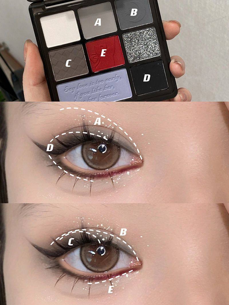 Rose, black, reddish-brown, colorful gothic makeup eyeshadow palette, earthy yellow, matte, Western-style makeup artist.