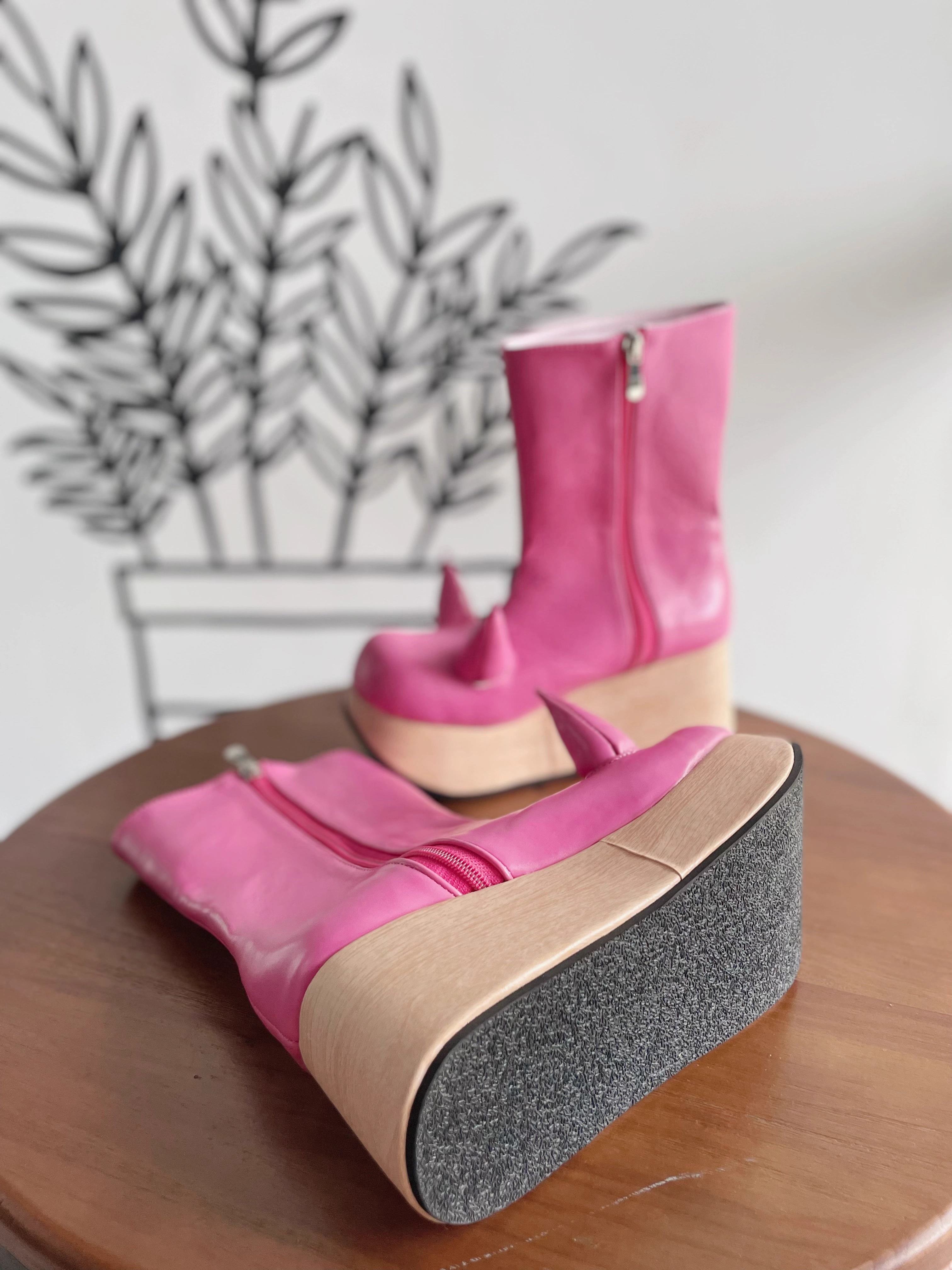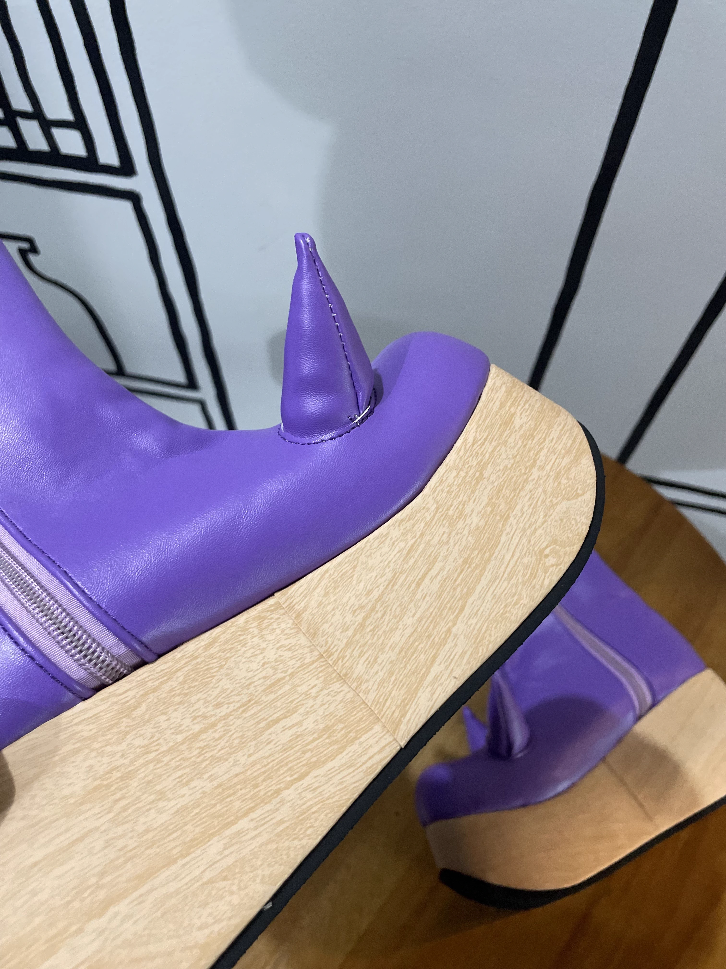 Antaina devil horn wood grain bottom high heel platform shoes subculture punk personality characteristics hot girl 2410