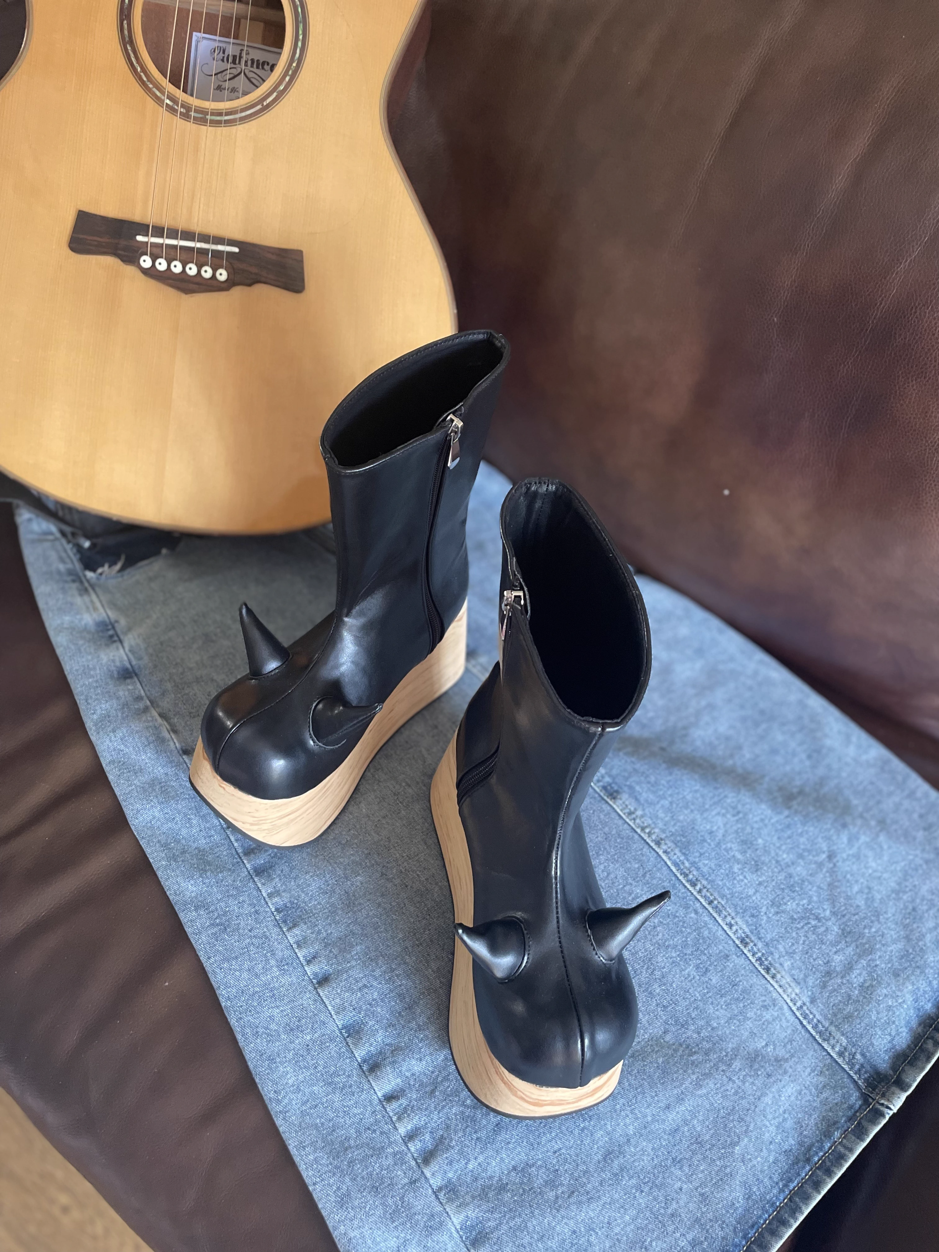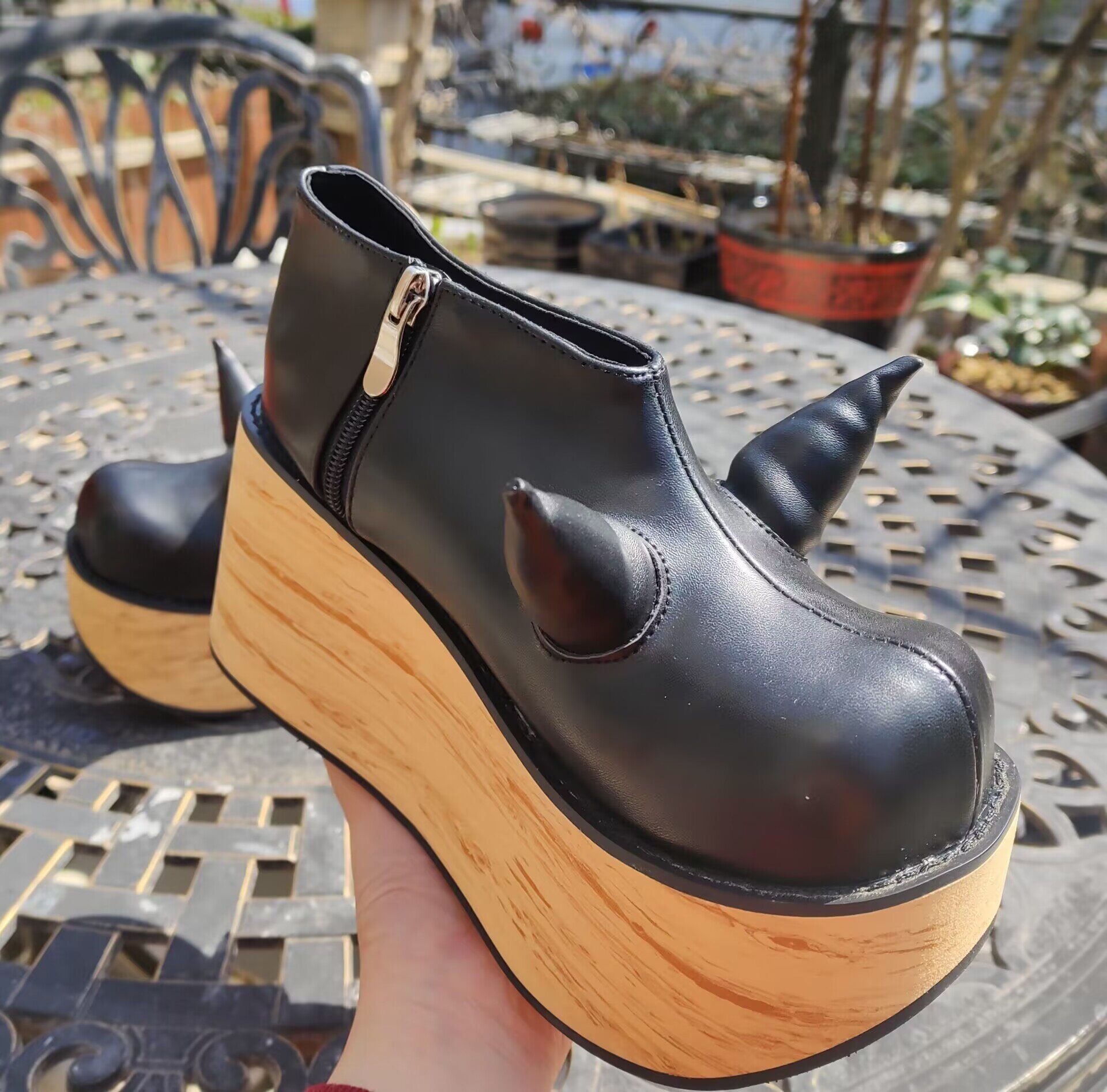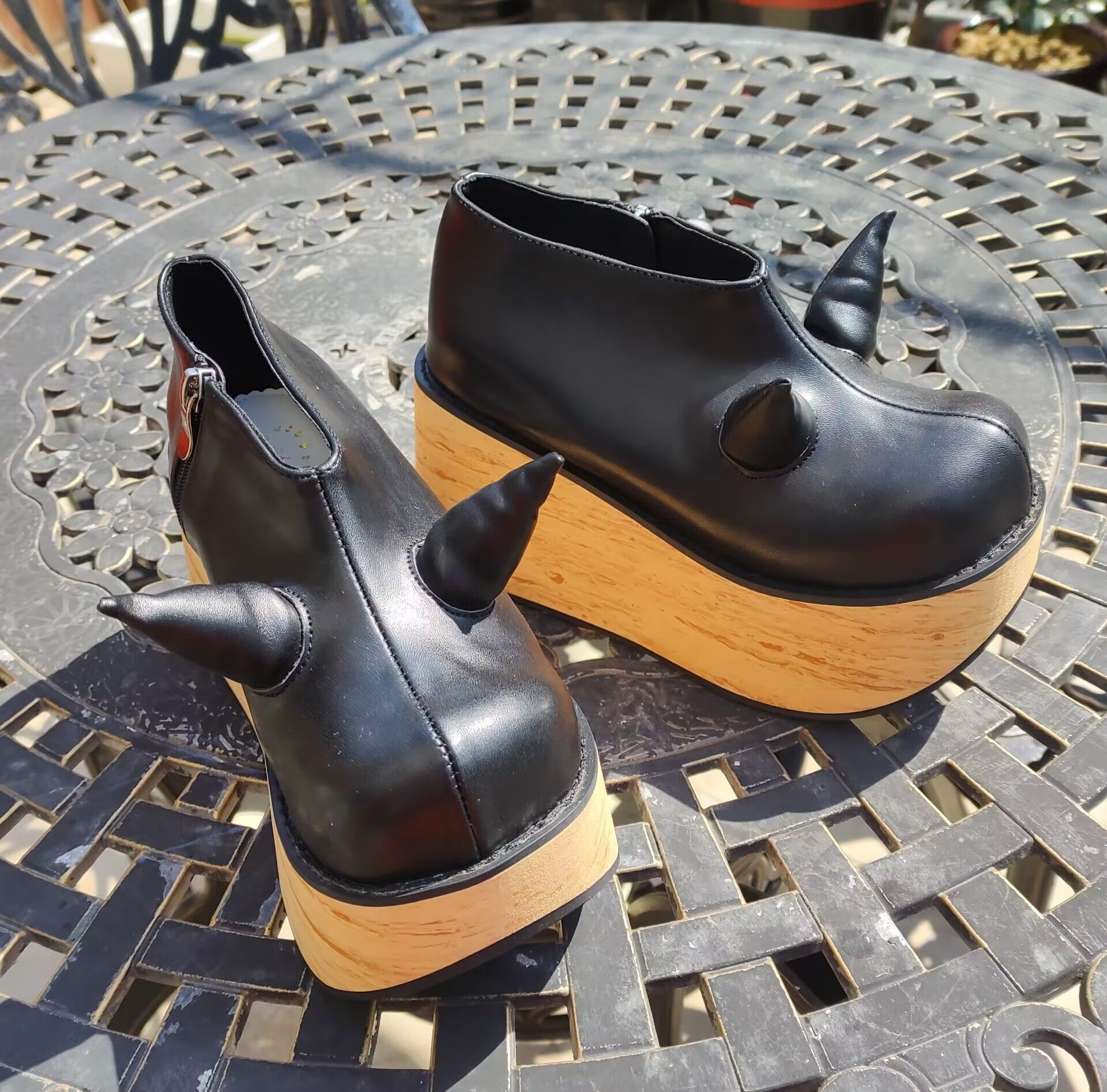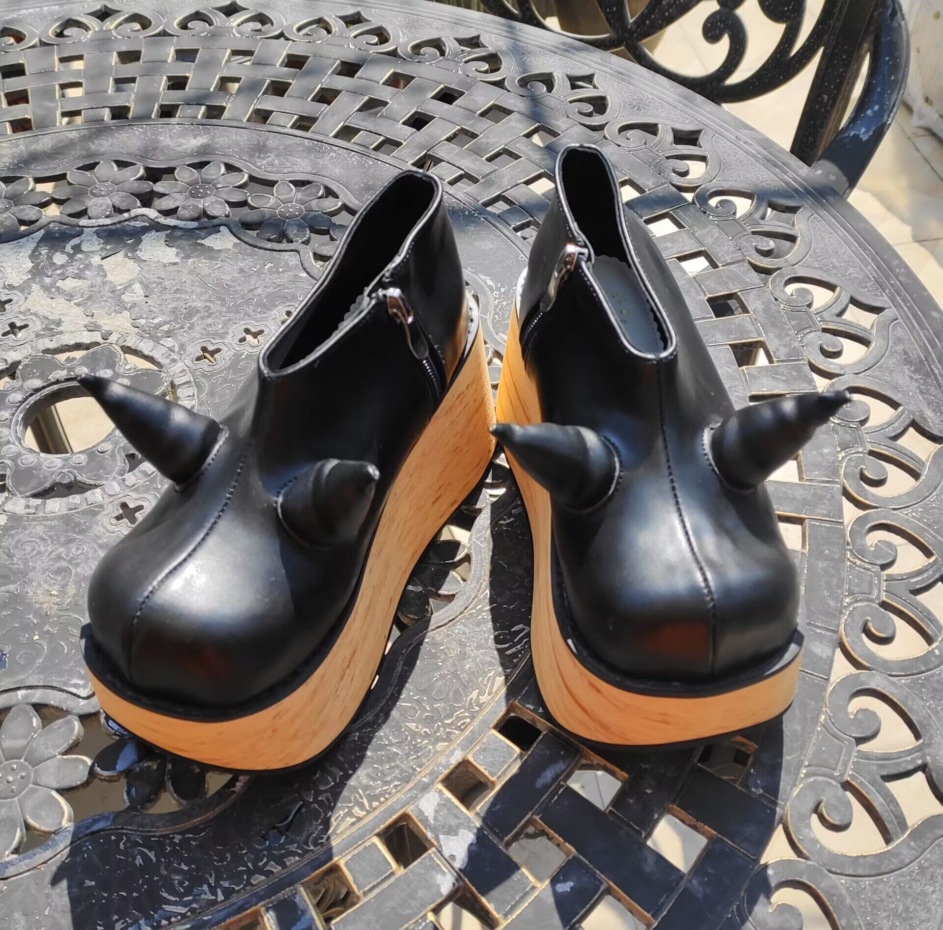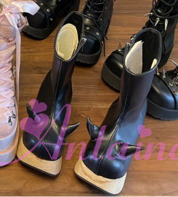 antaina 恶魔角木纹底高跟松糕厚底鞋亚文化朋克个性特色辣妹2410 [Original Page Link]