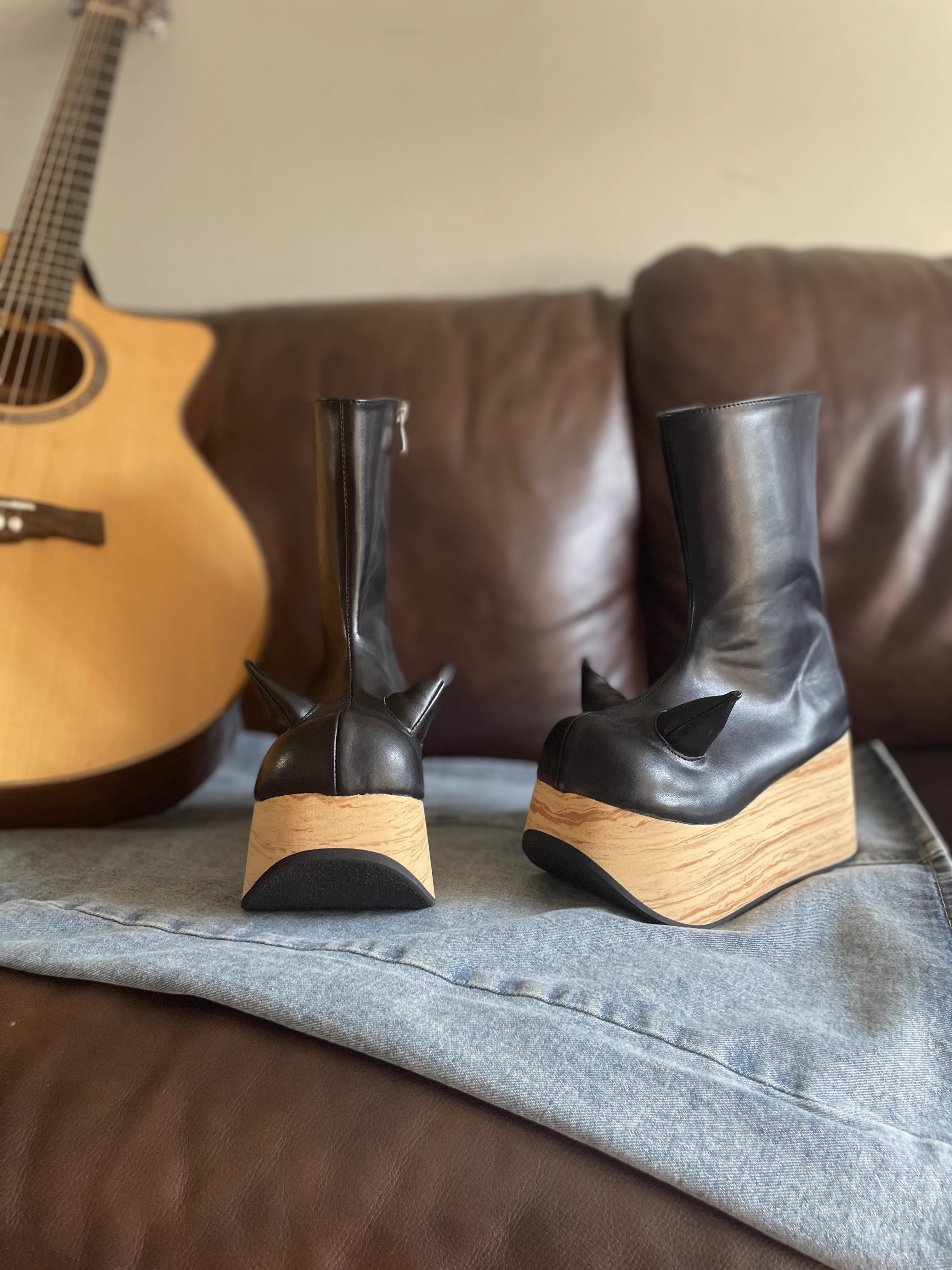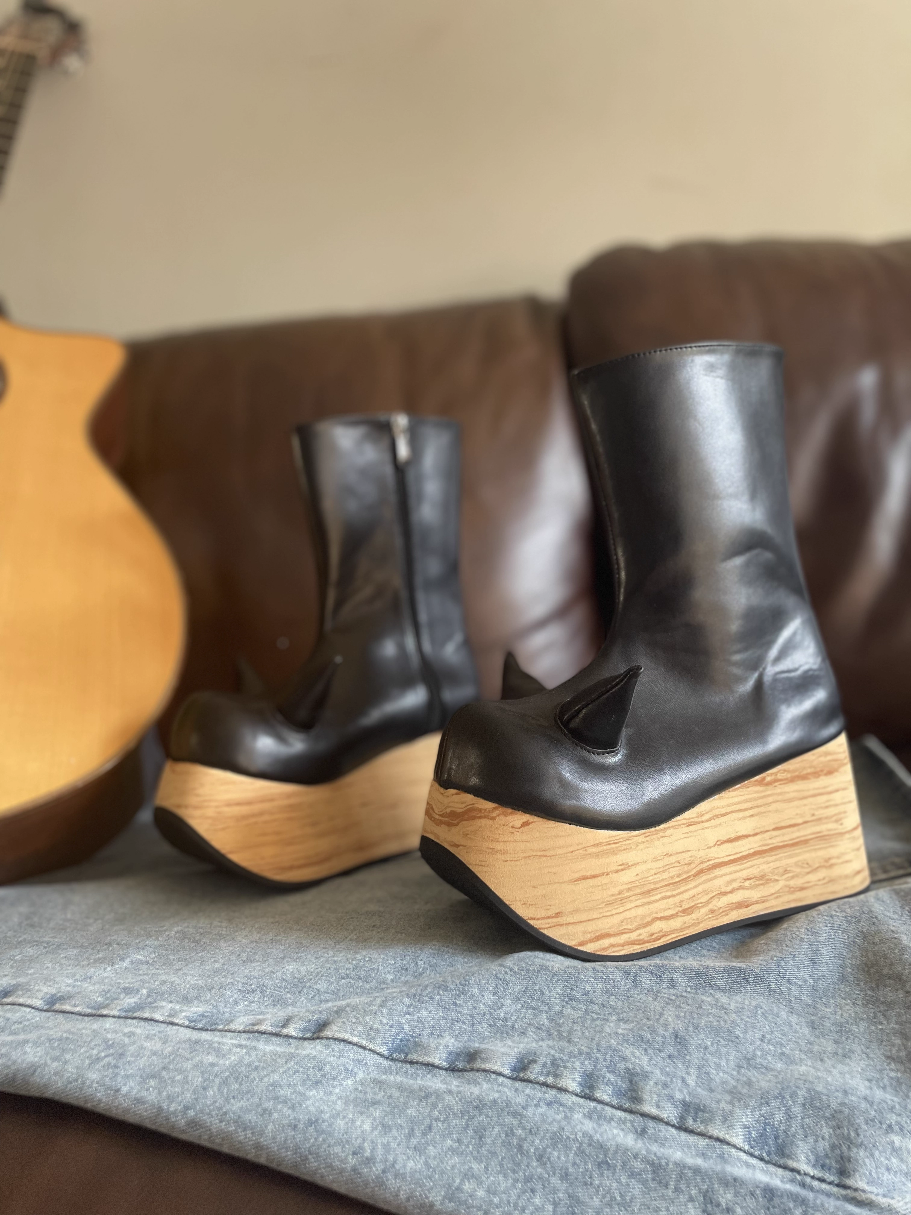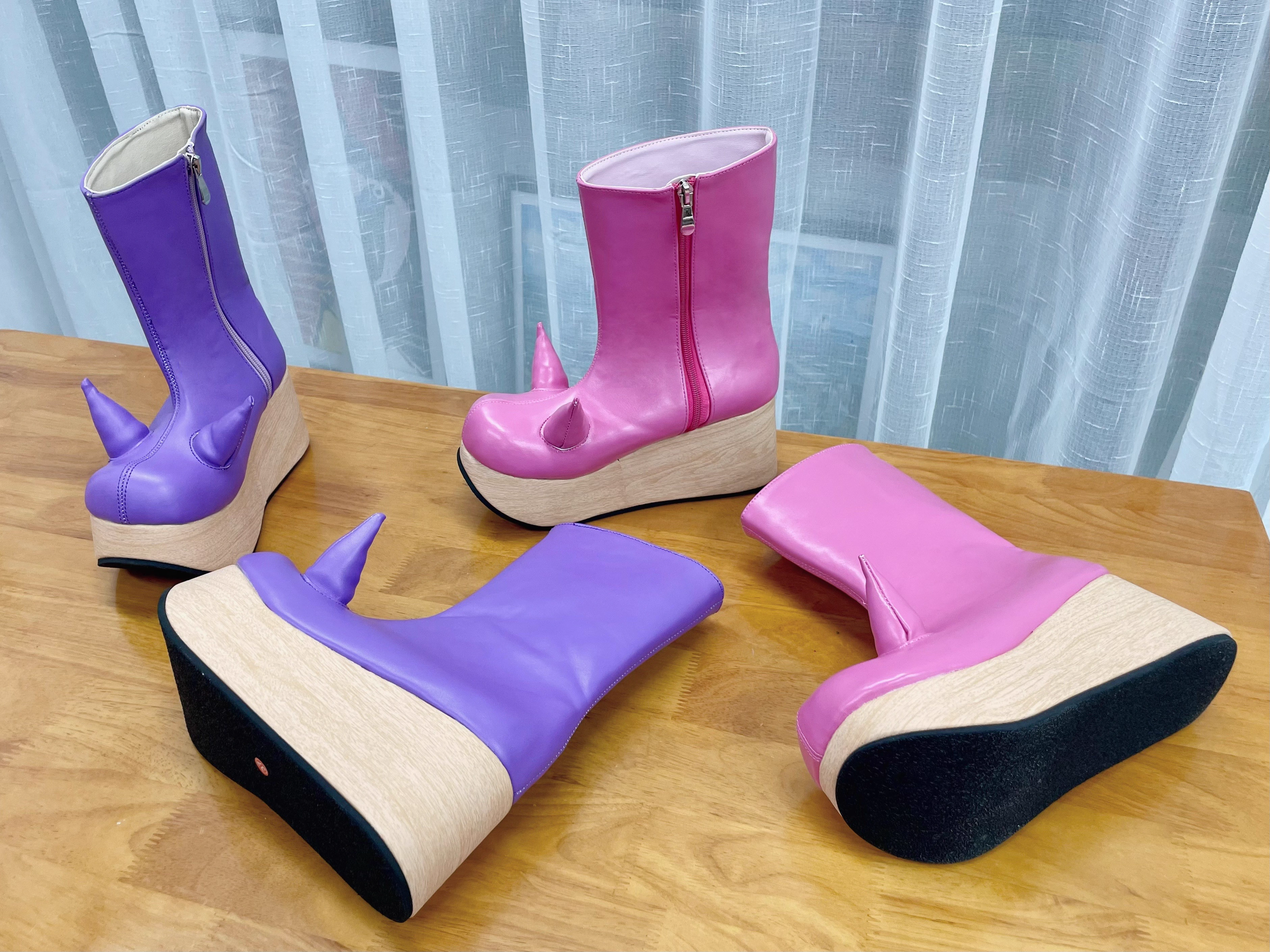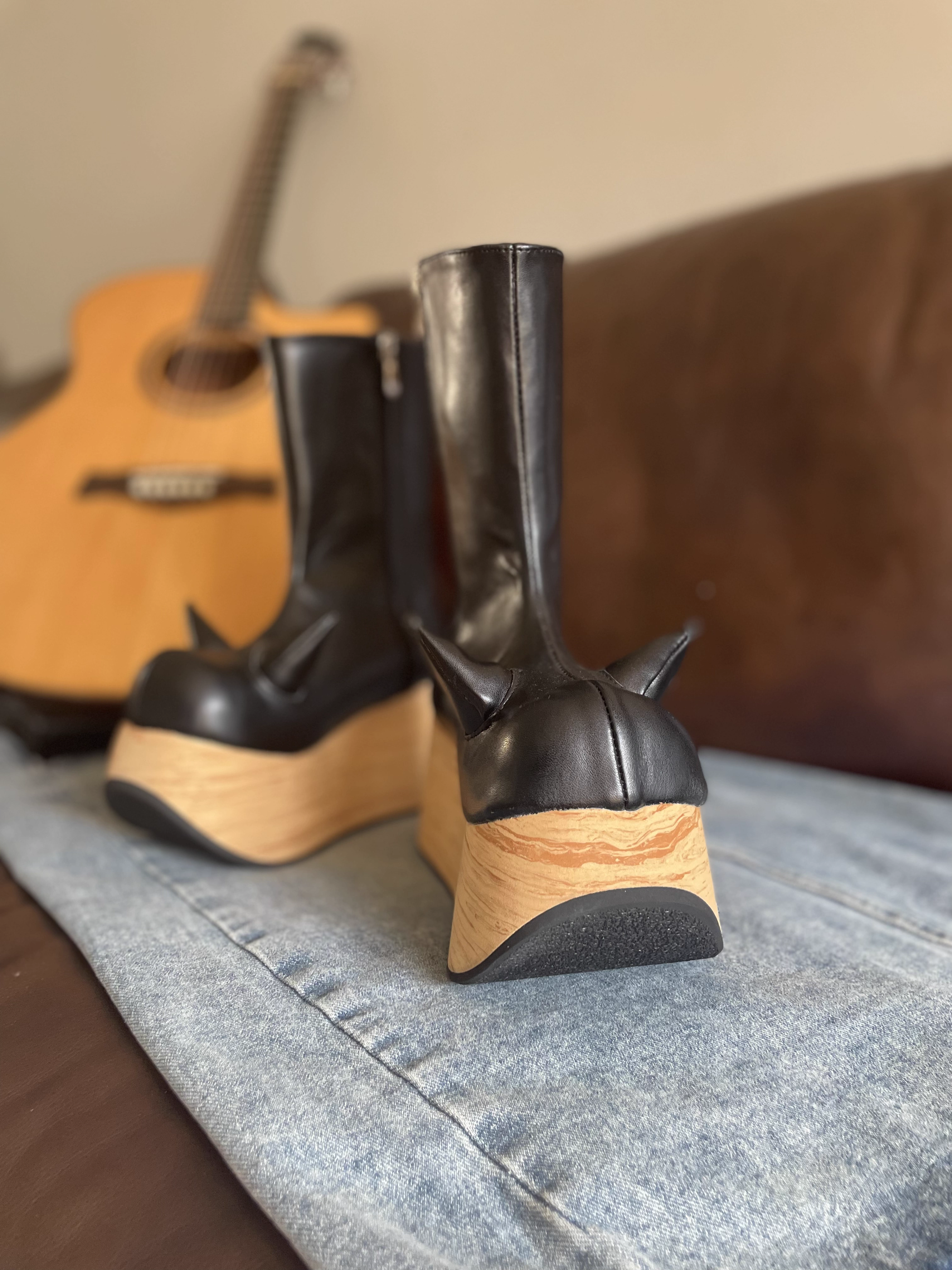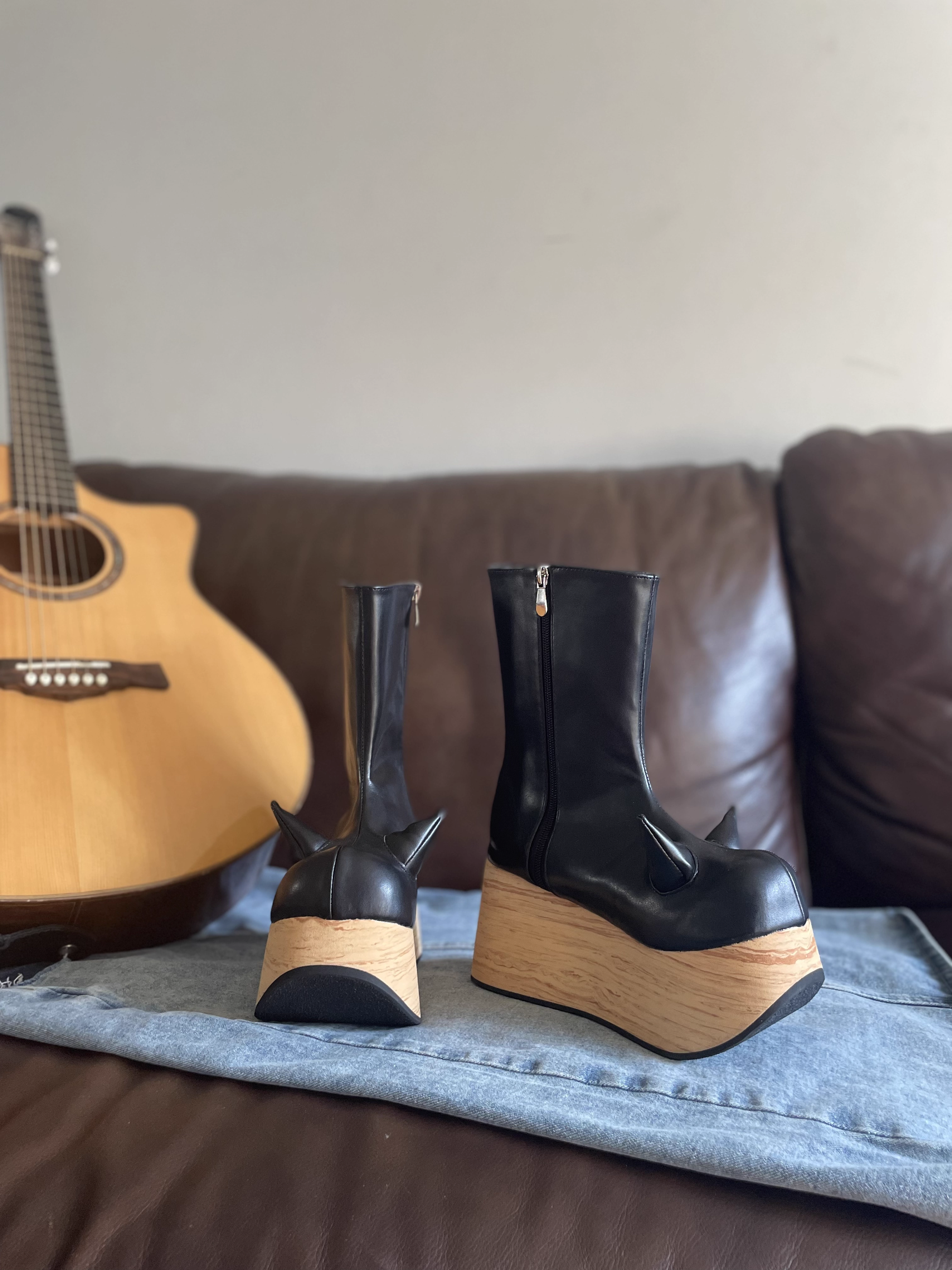 antaina 恶魔角木纹底高跟松糕厚底鞋亚文化朋克个性特色辣妹2410 [Original Page Link]