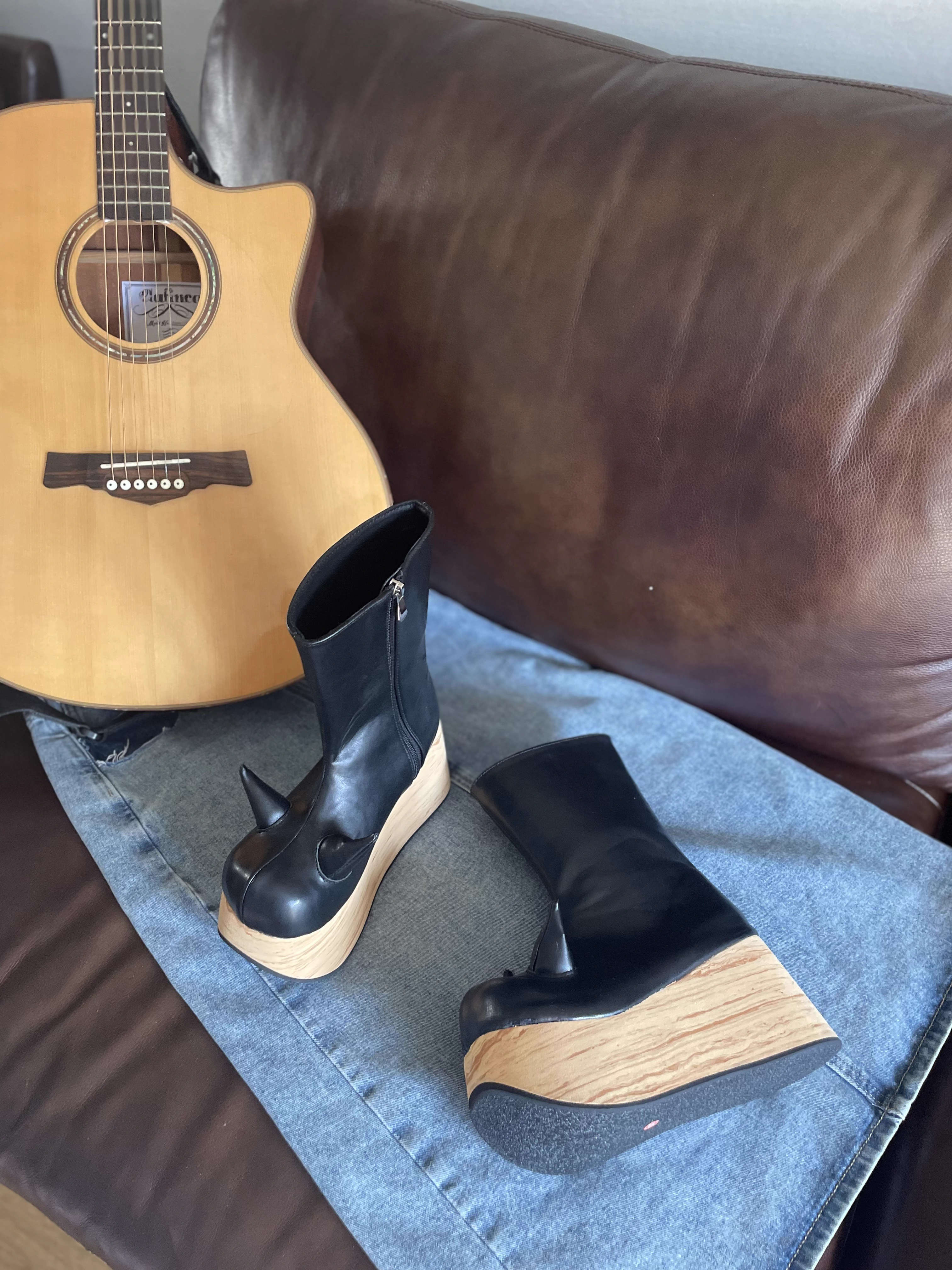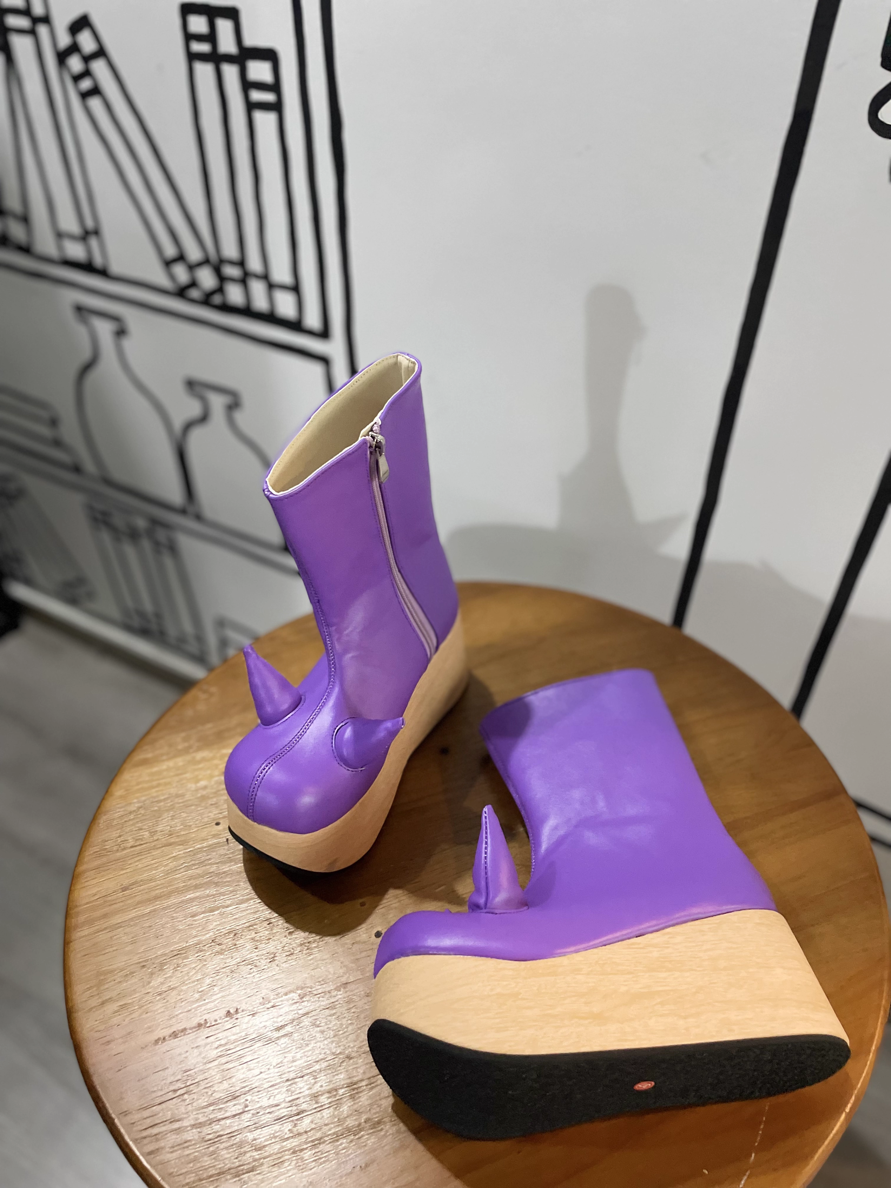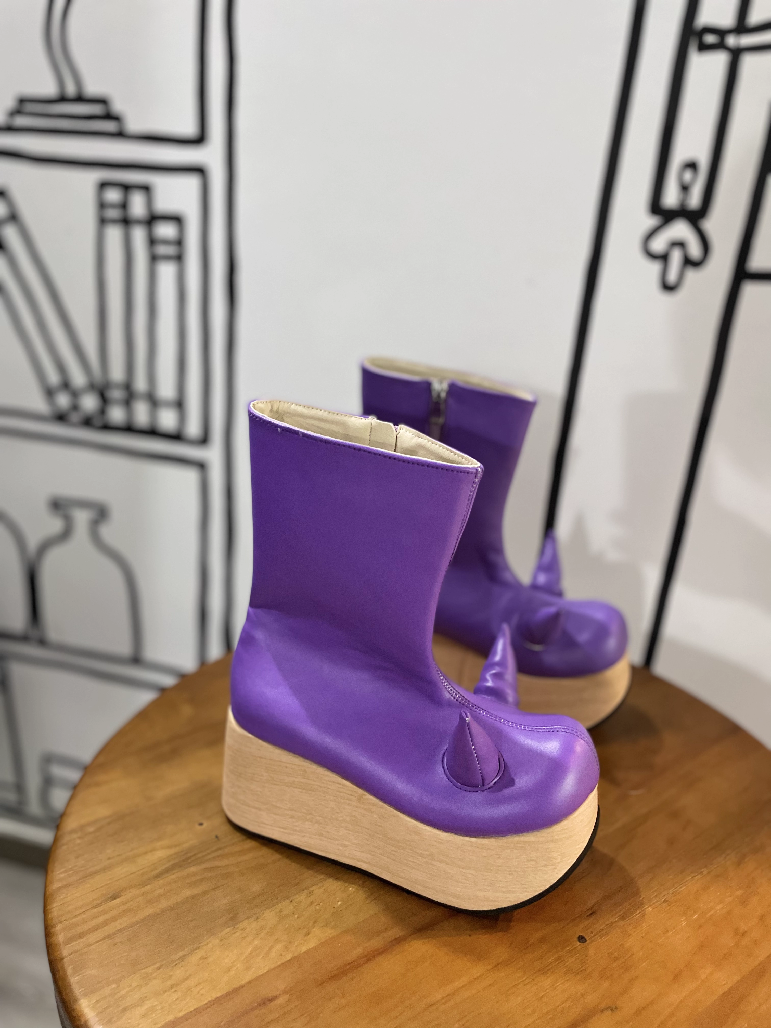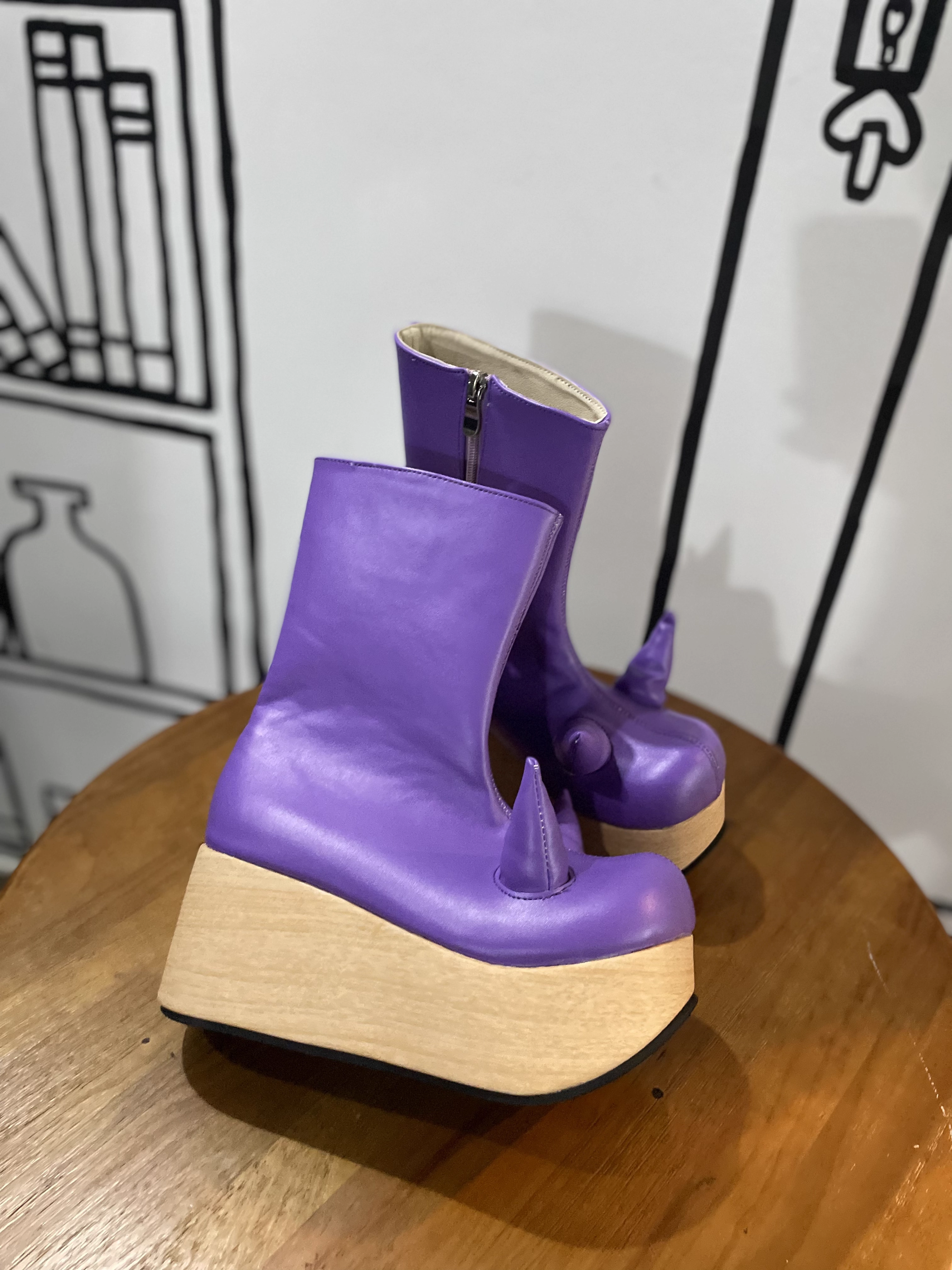 antaina 恶魔角木纹底高跟松糕厚底鞋亚文化朋克个性特色辣妹2410 [Original Page Link]