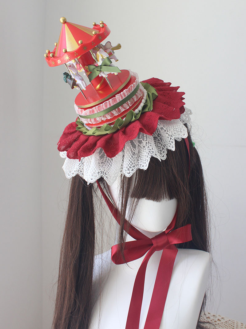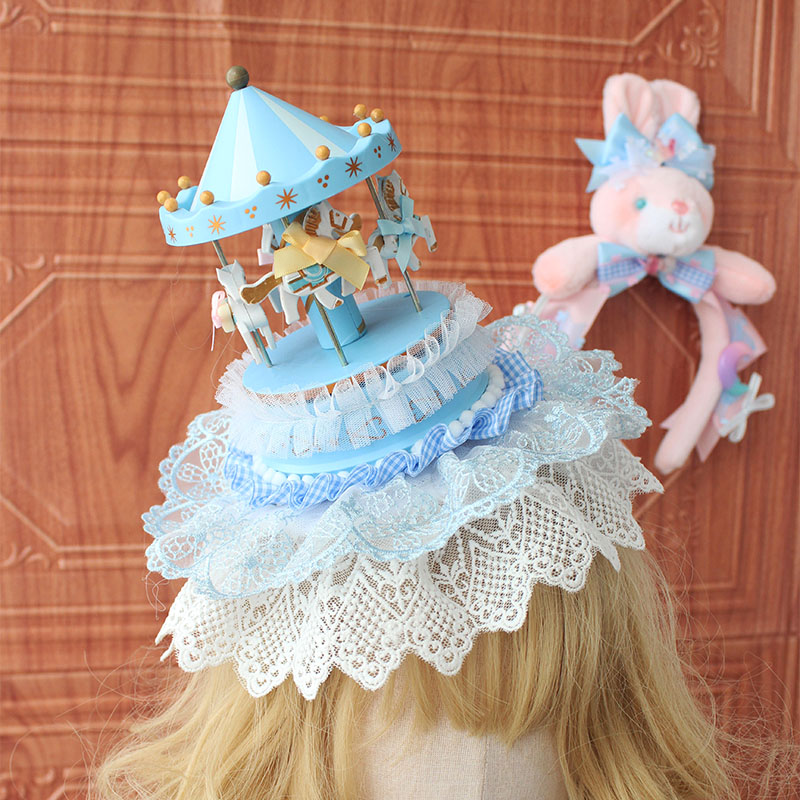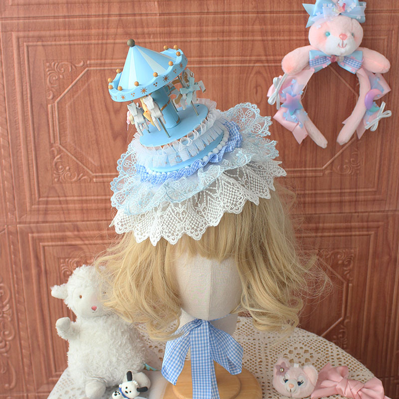 原创手工旋转木马洛丽塔儿童乐趣帽子马戏团蕾丝洛丽塔蓝色配件帽子 [Original Page Link]