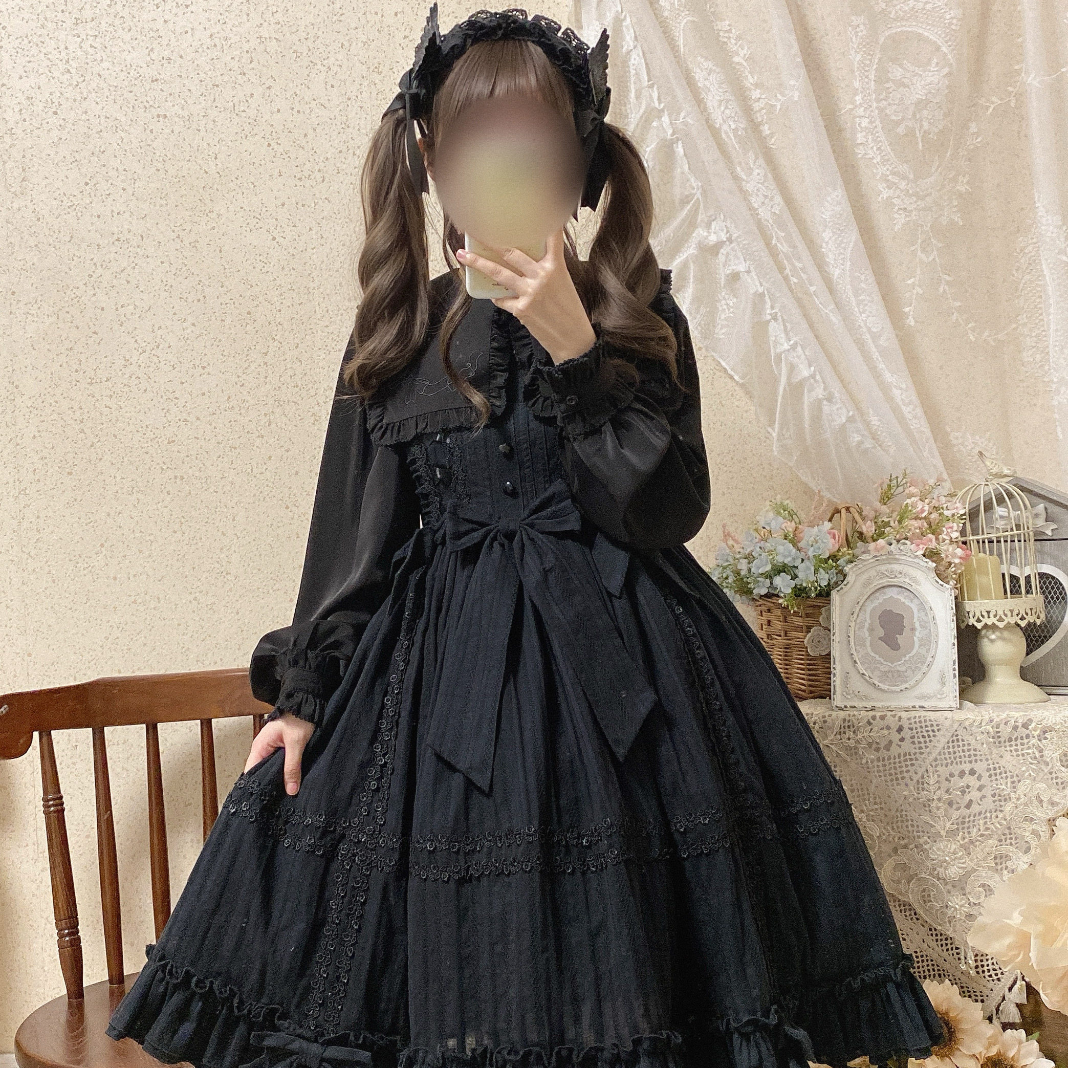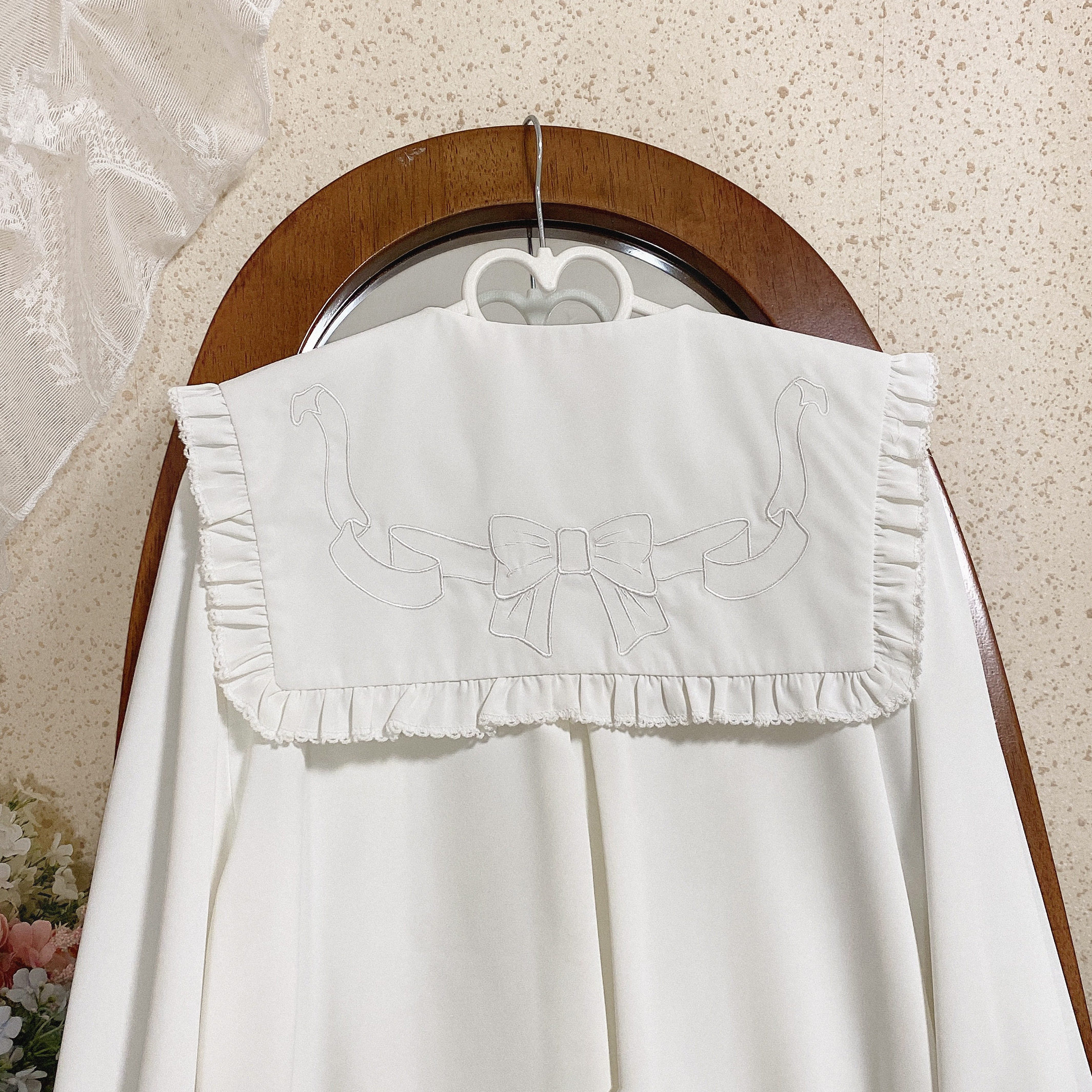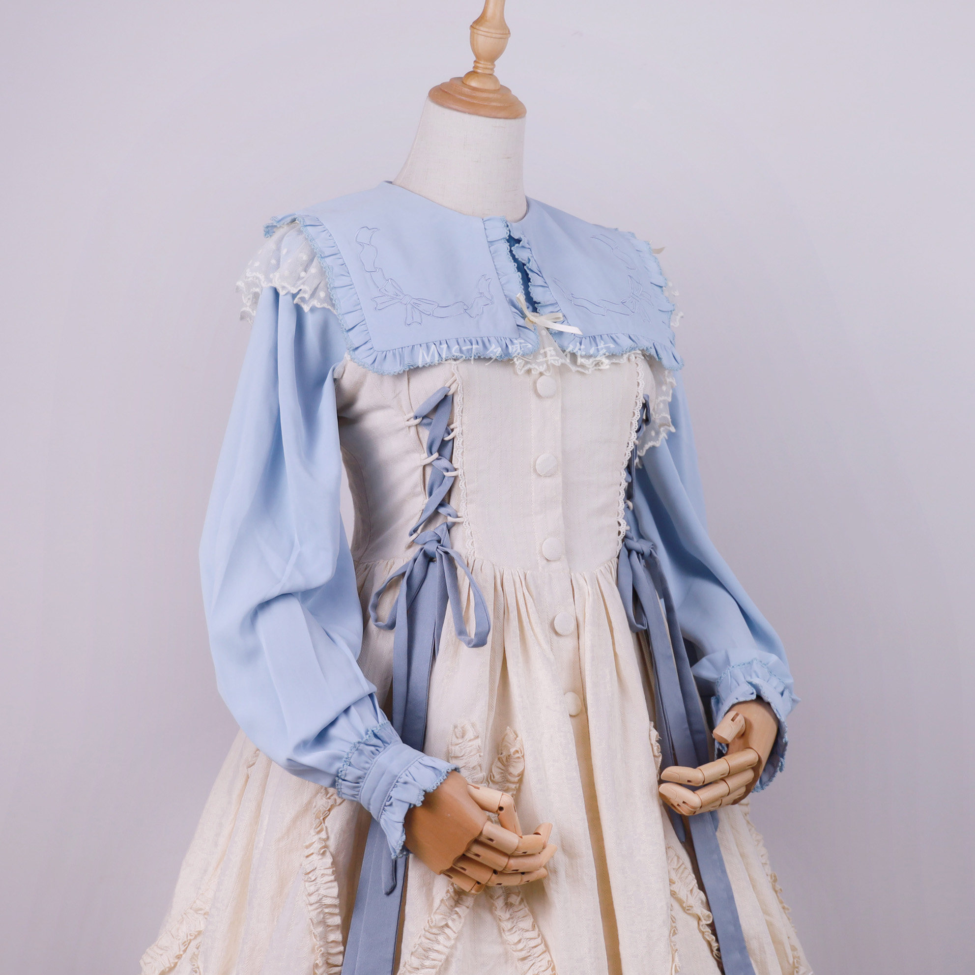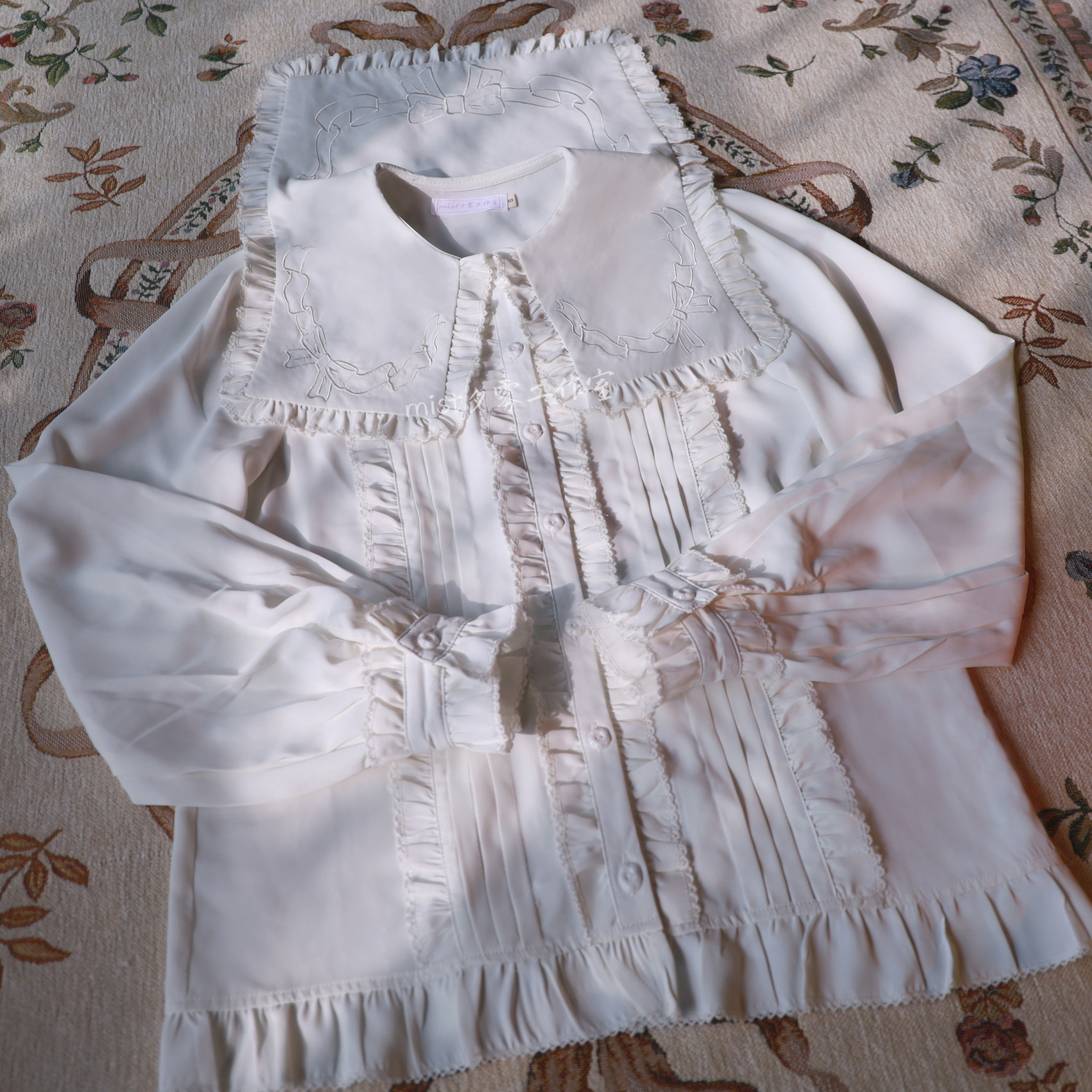 现货蝴蝶结结长袖Lolita内搭泡泡袖方领荷叶边中古可爱洛丽塔衬衫 [Original Page Link]