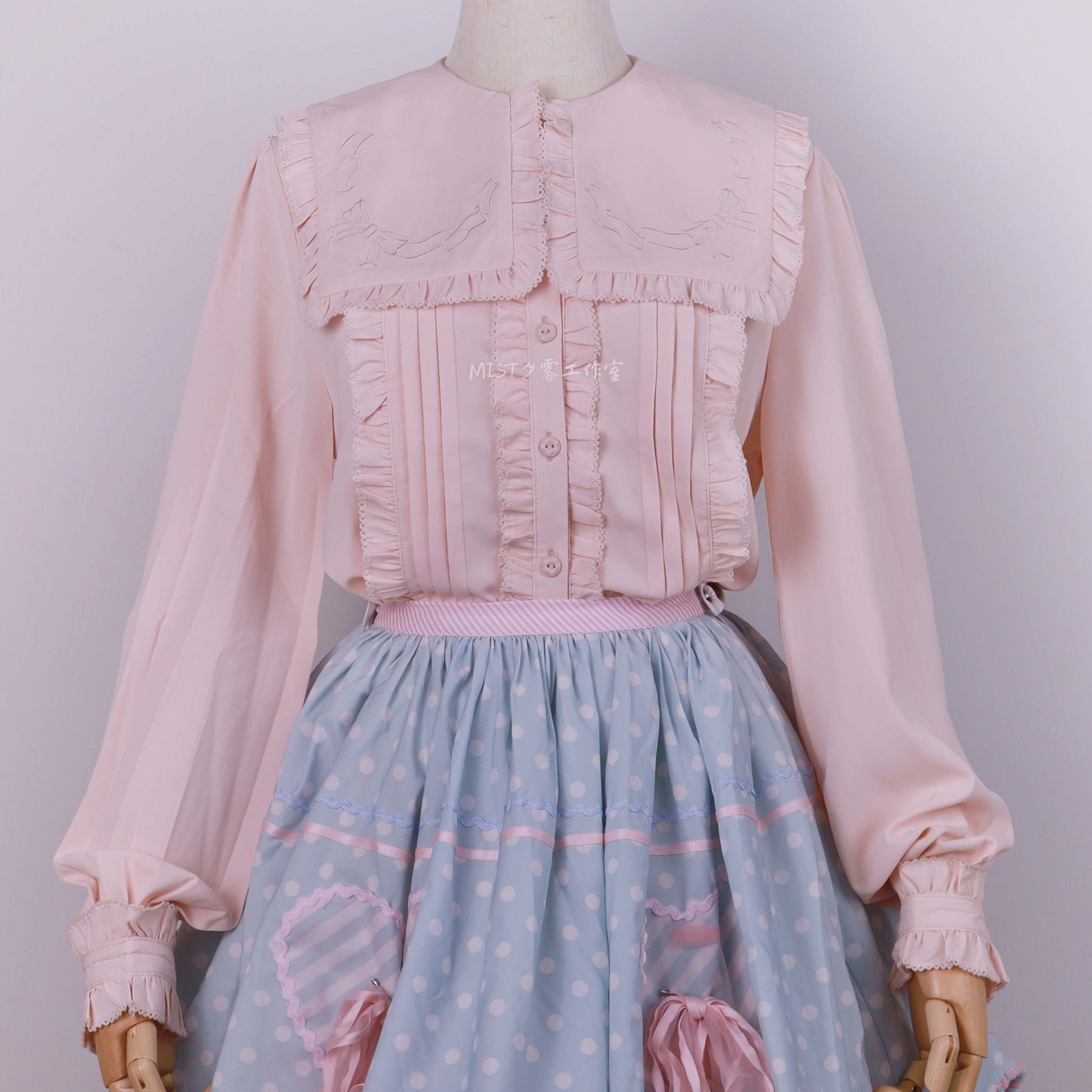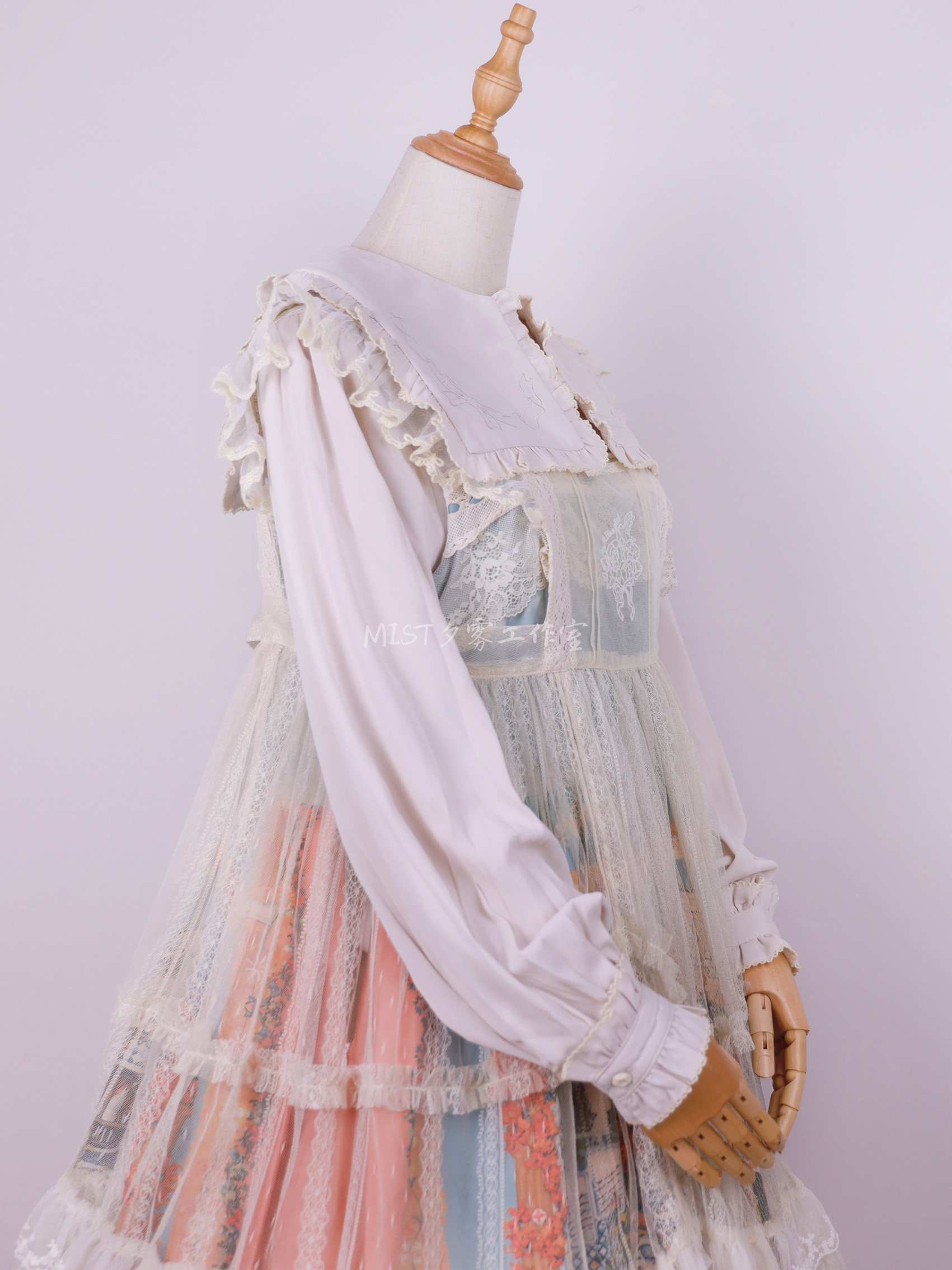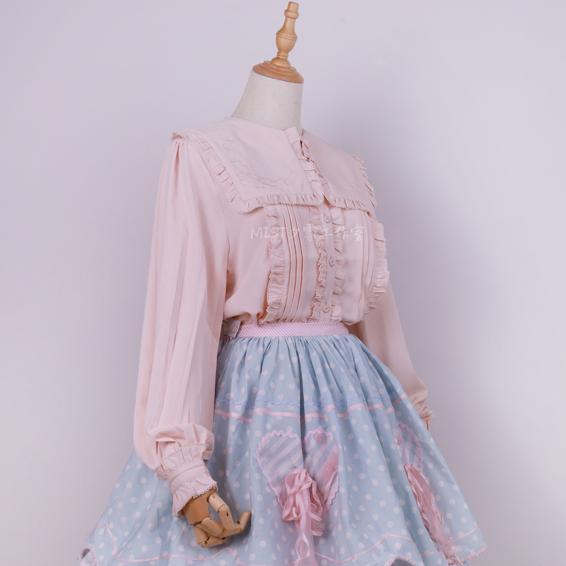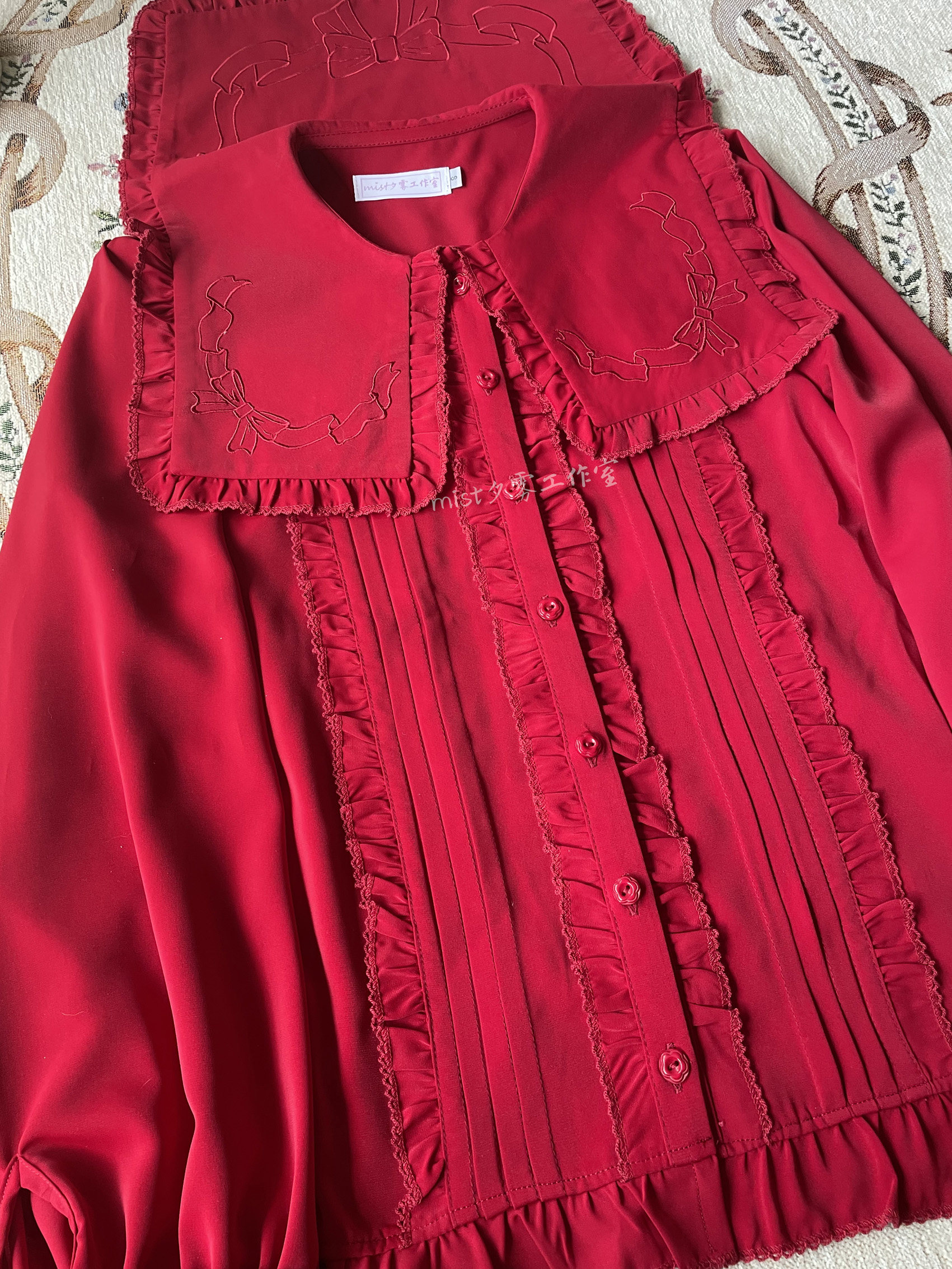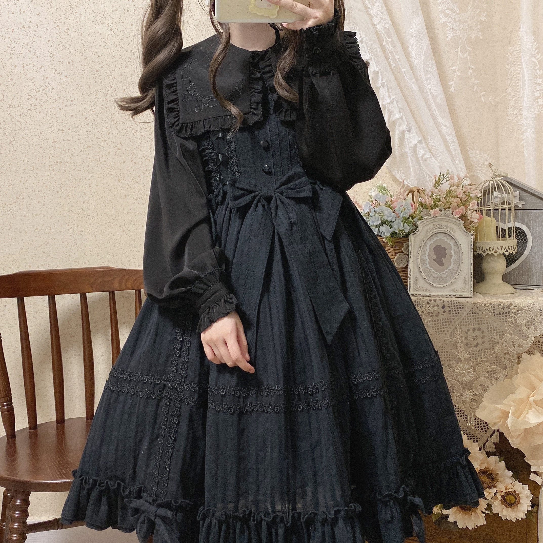 现货蝴蝶结结长袖Lolita内搭泡泡袖方领荷叶边中古可爱洛丽塔衬衫 [Original Page Link]