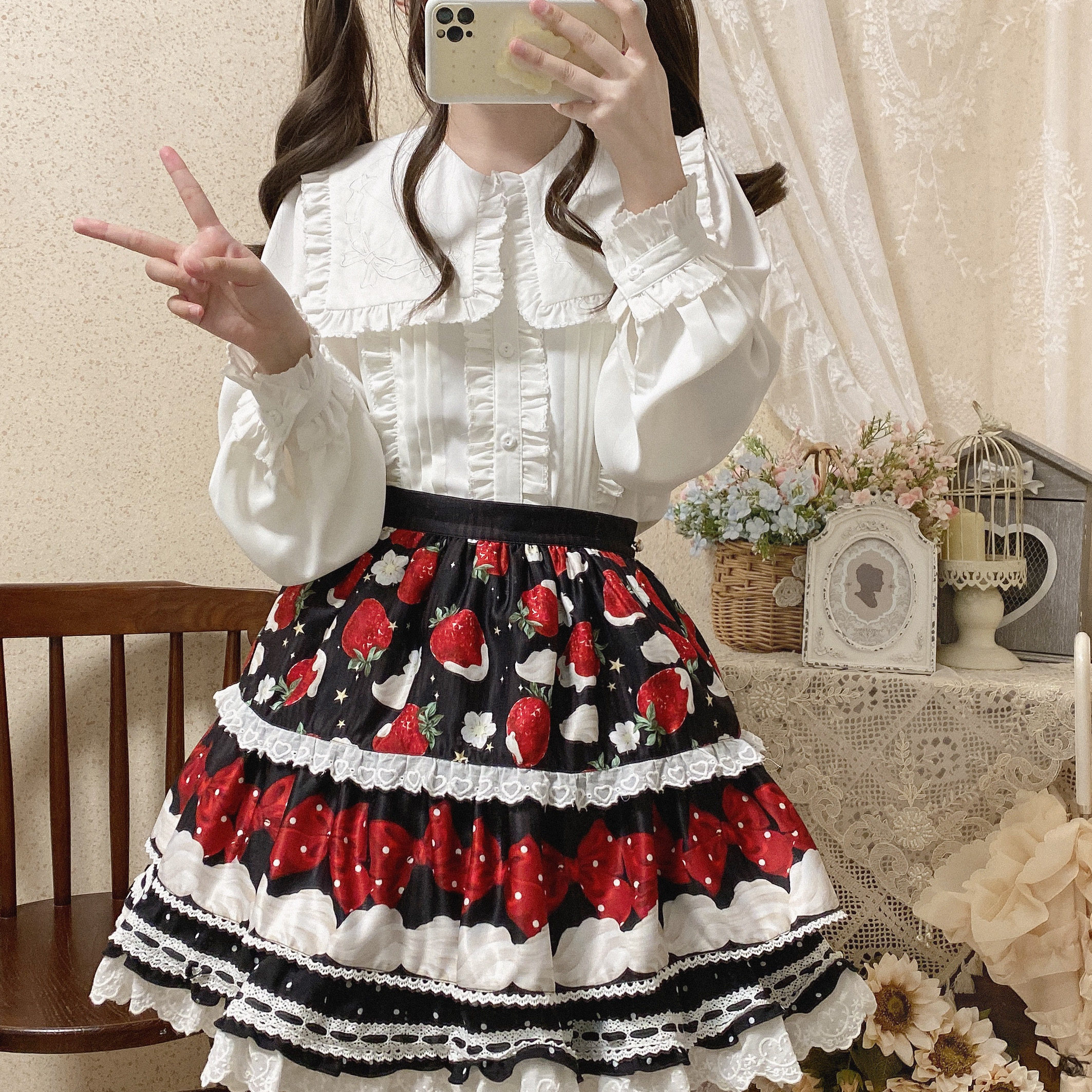 In stock Bow Long Sleeve Lolita Puff Sleeves Square Neck Ruffled Vintage Cute Lolita Shirts