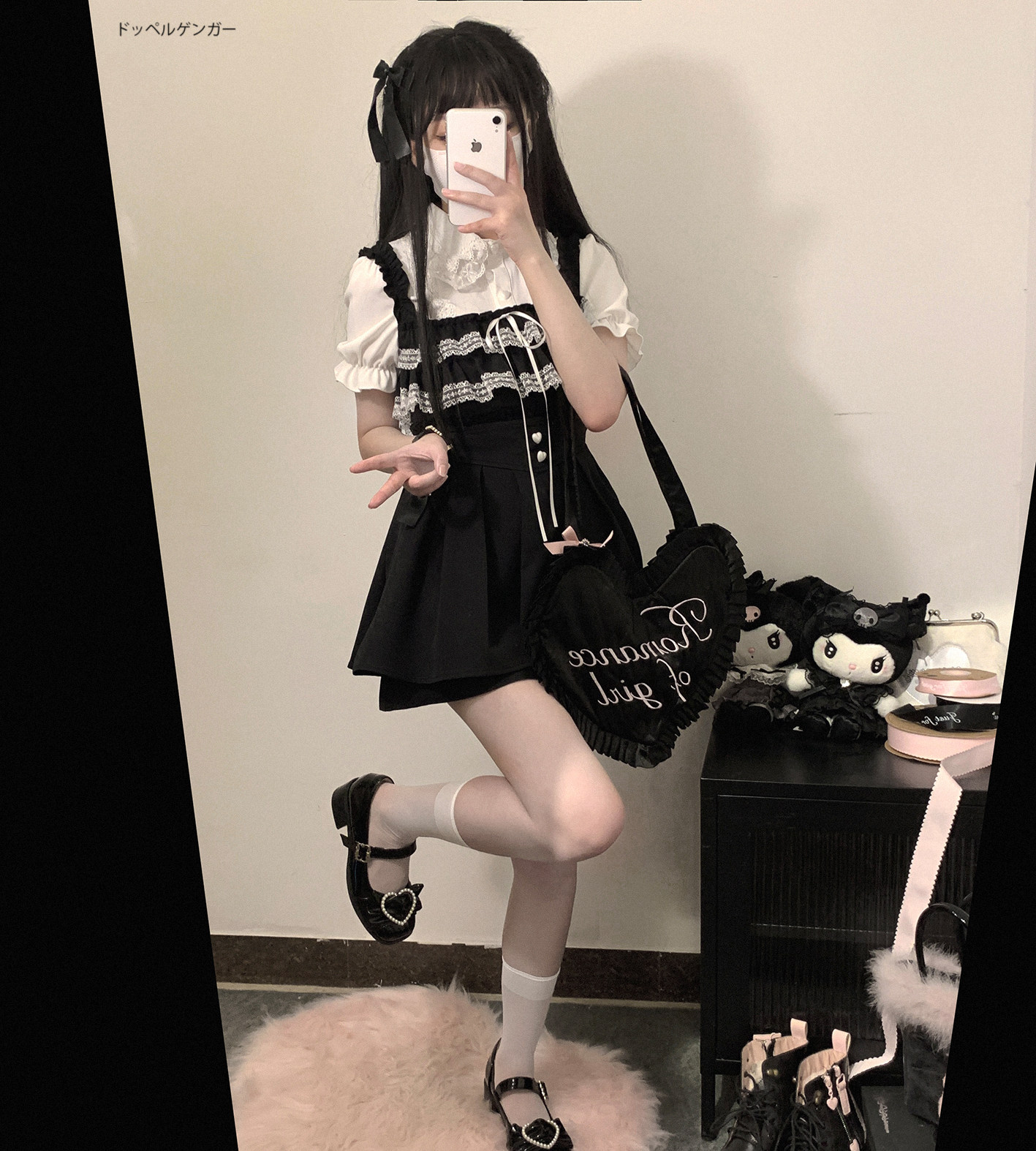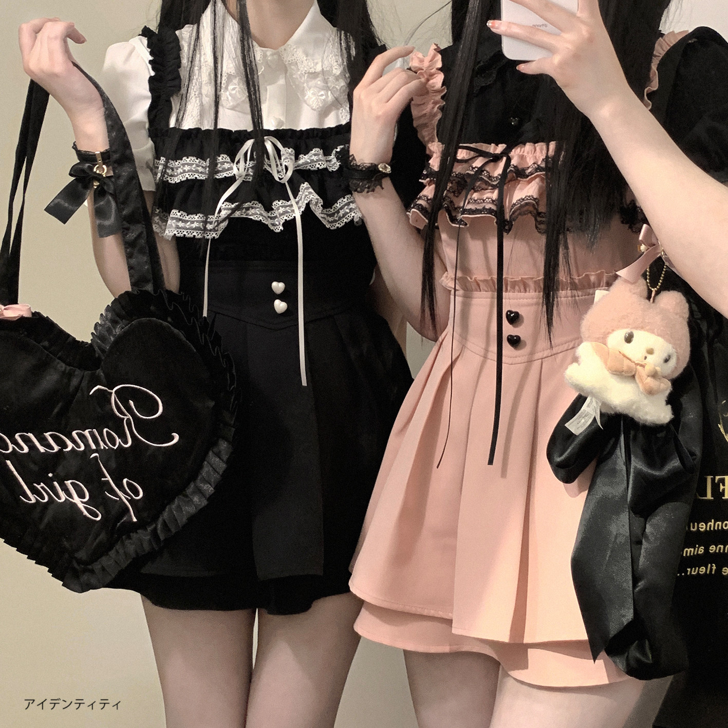 KittyBxllet original [heart love] mass-produced ground bud sweet lace top shirt short-sleeved