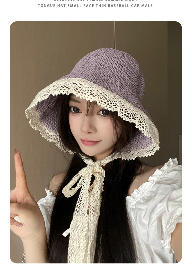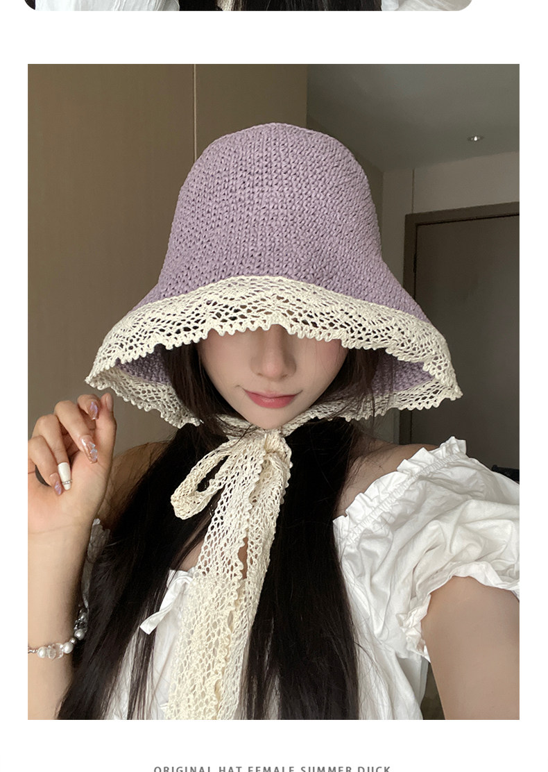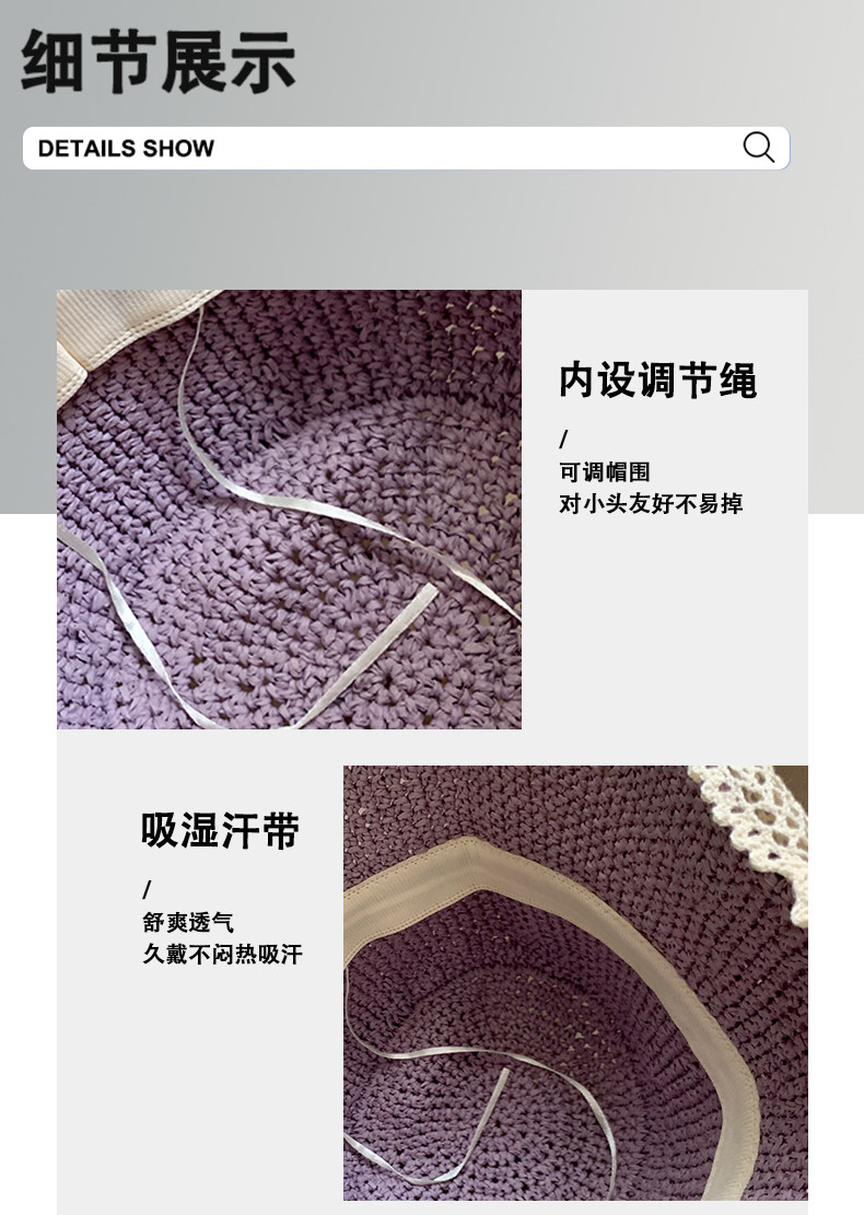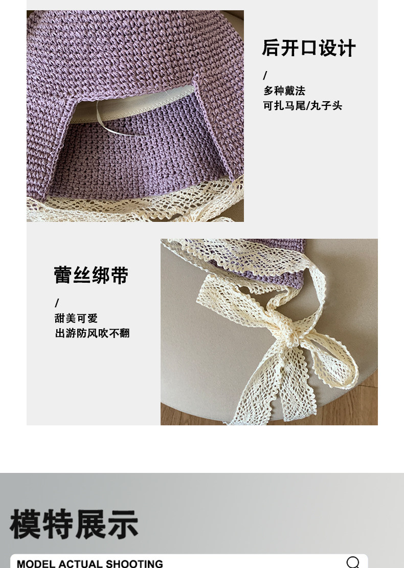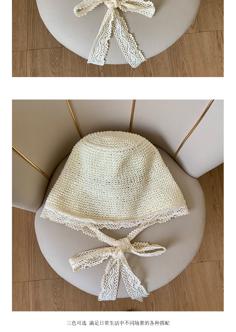遮阳帽草帽女夏季蕾丝绑带渔夫帽子女海边沙滩防晒遮脸手工遮阳帽 [Original Page Link]