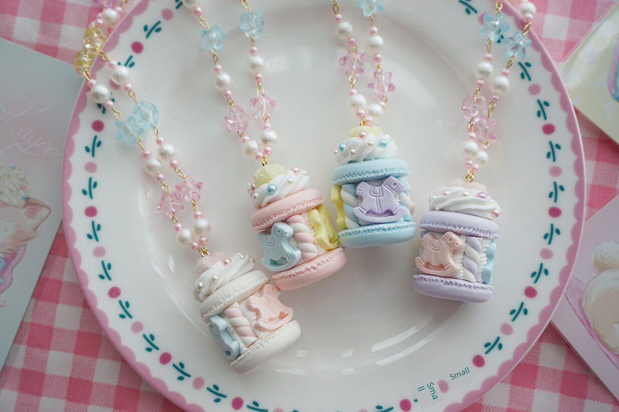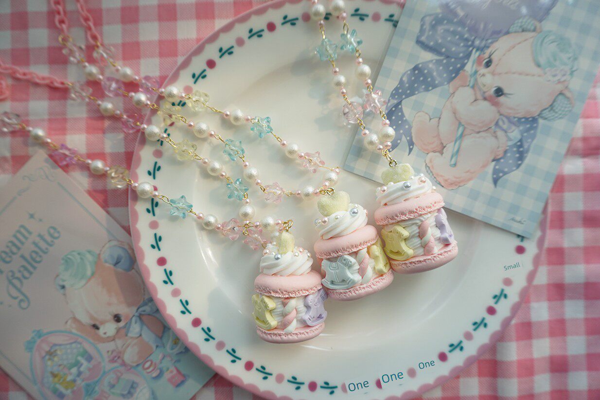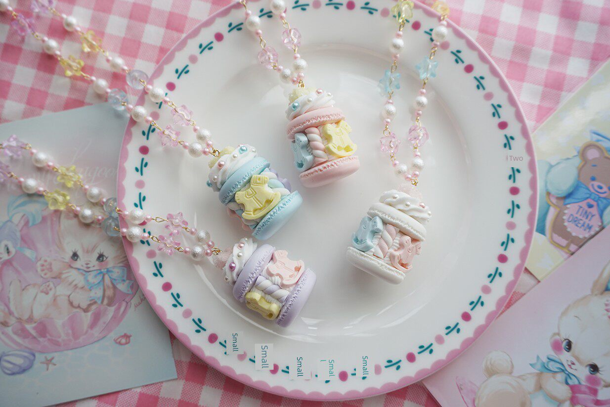 【Three】Original design sugar carousel cream macaron Lolita necklace simulated food toy