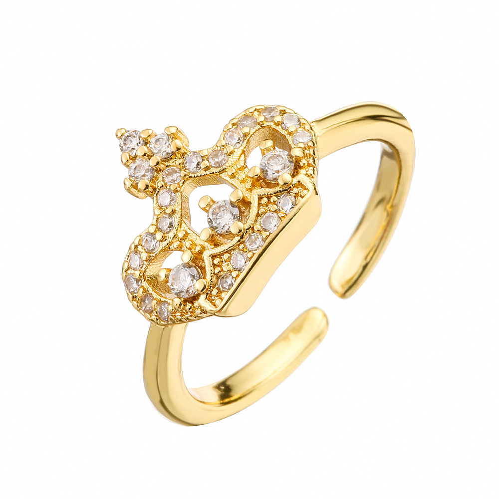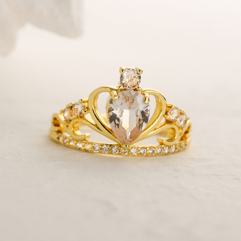 Australian antique cross-border European and American court style copper plated with 18K gold zircon crown ring for women, a unique and affordable luxury jewelry.