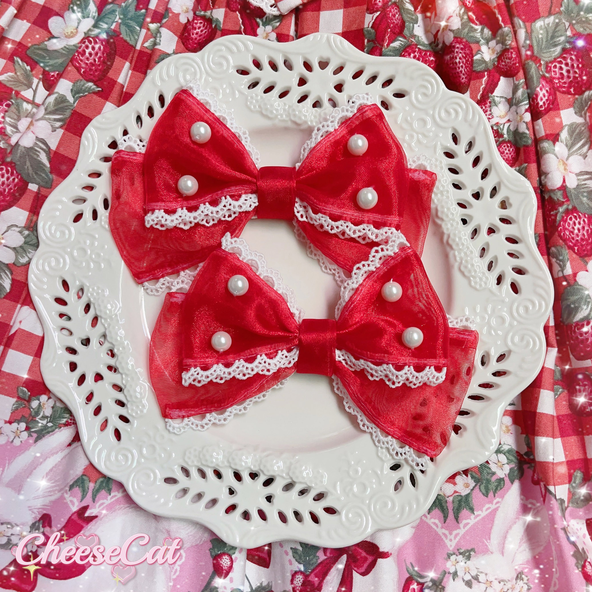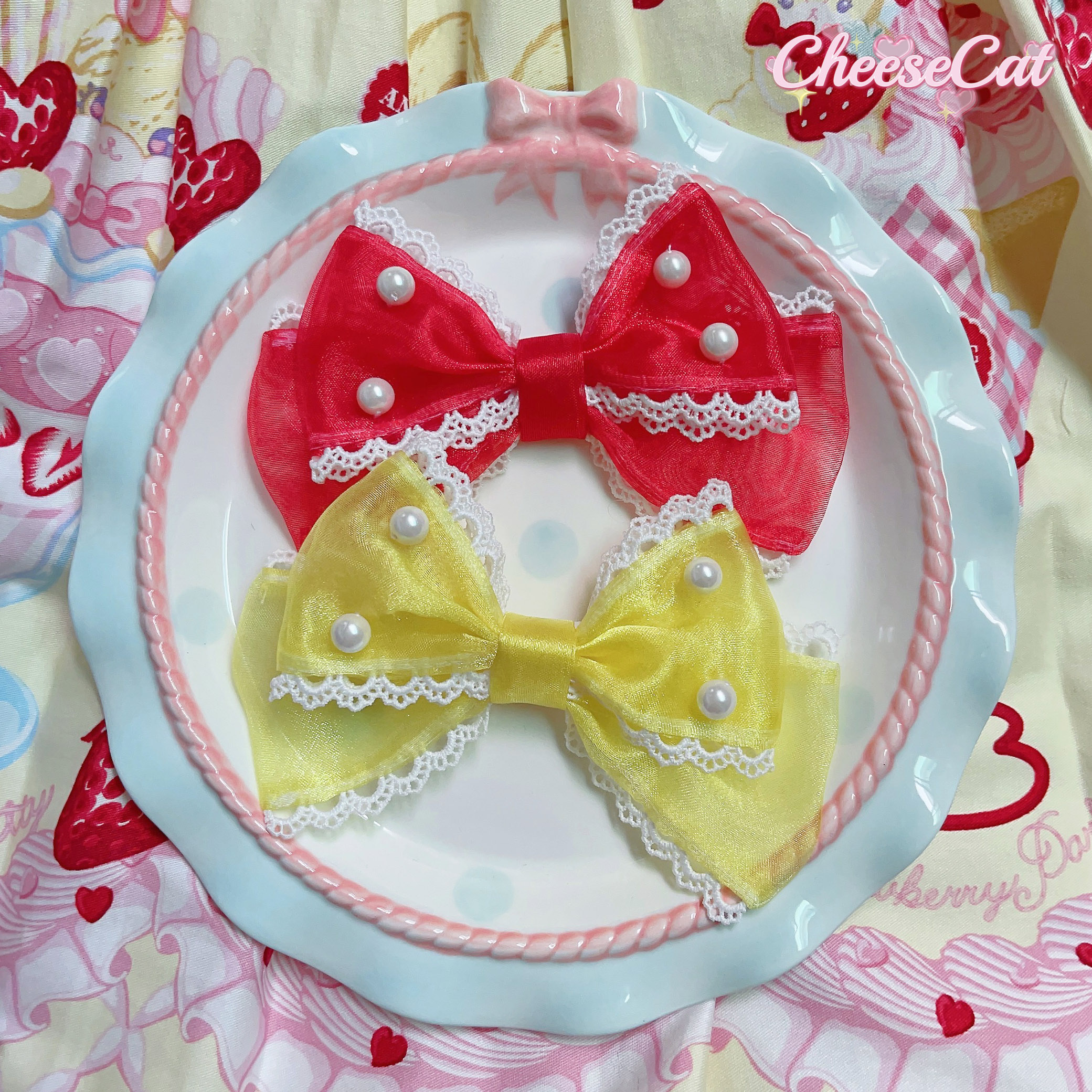 [Cheese Cat Handmade] Original organza bow ap Mengma Lianji shell lolita small hairpin