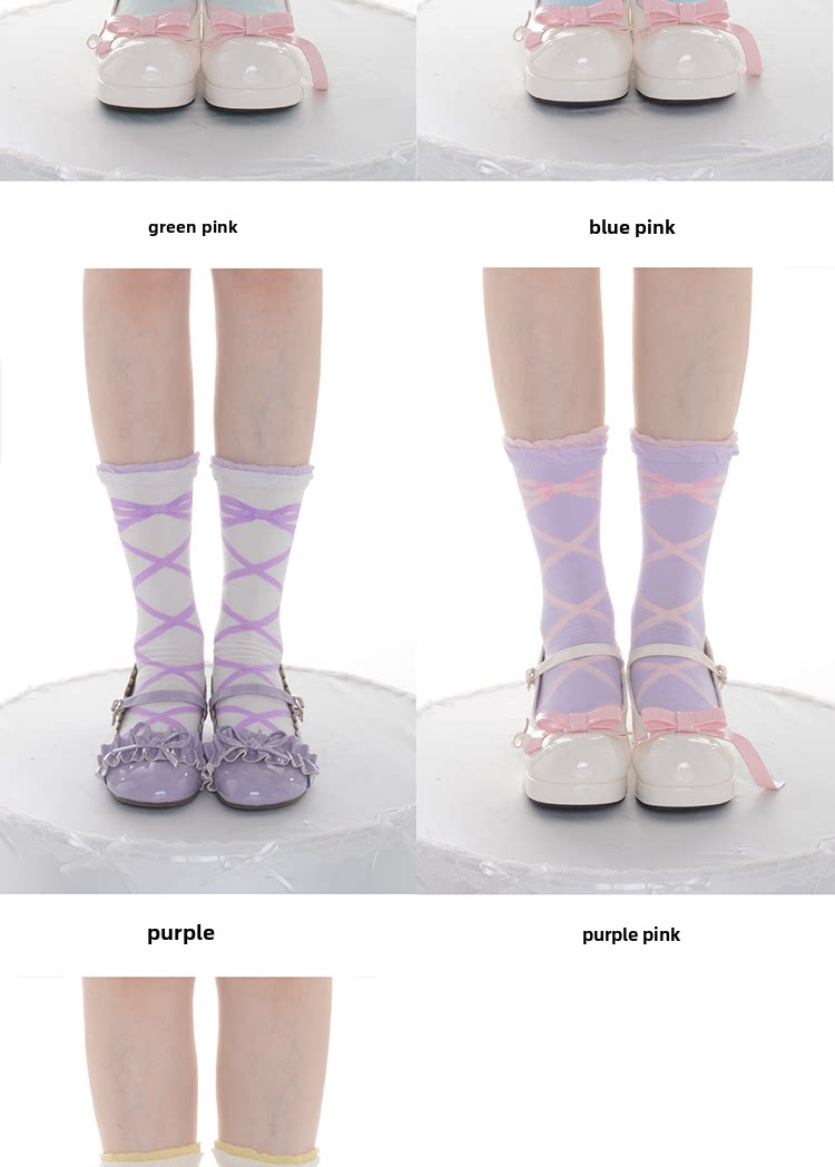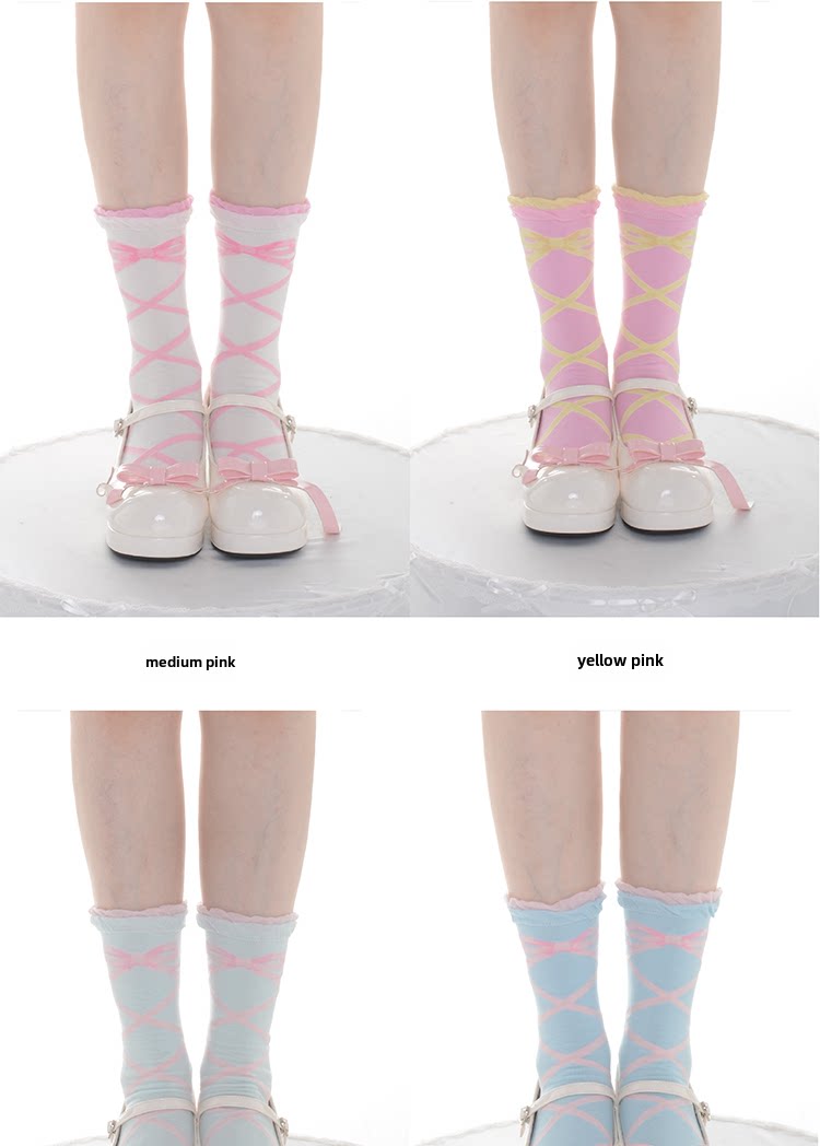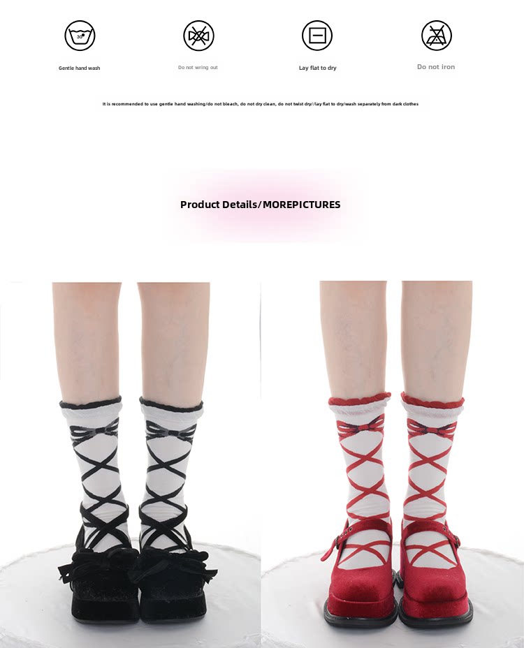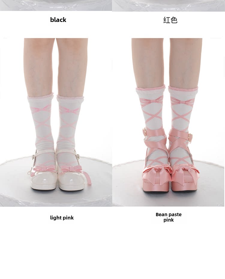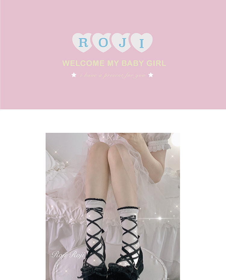 交织绑带Lolita袜子女春夏纯棉绑带短袜洛丽塔中筒袜日系瘦腿甜美 [Original Page Link]