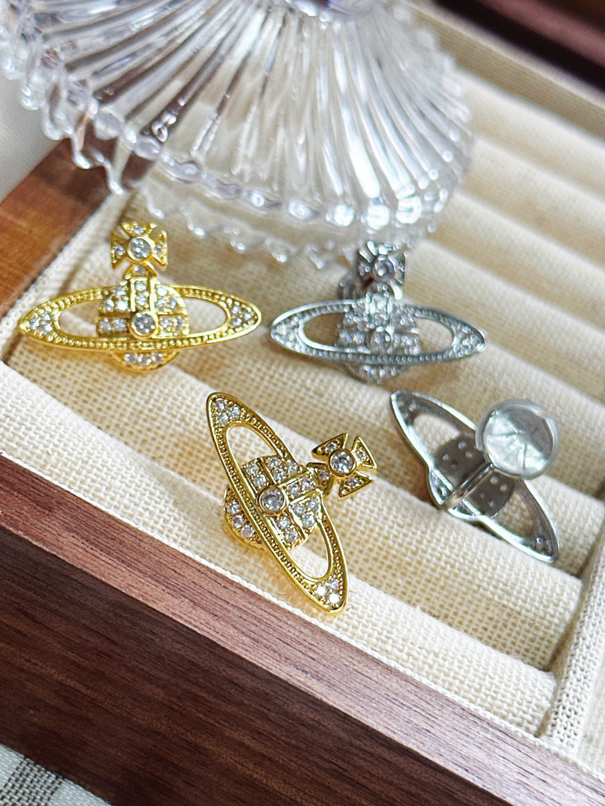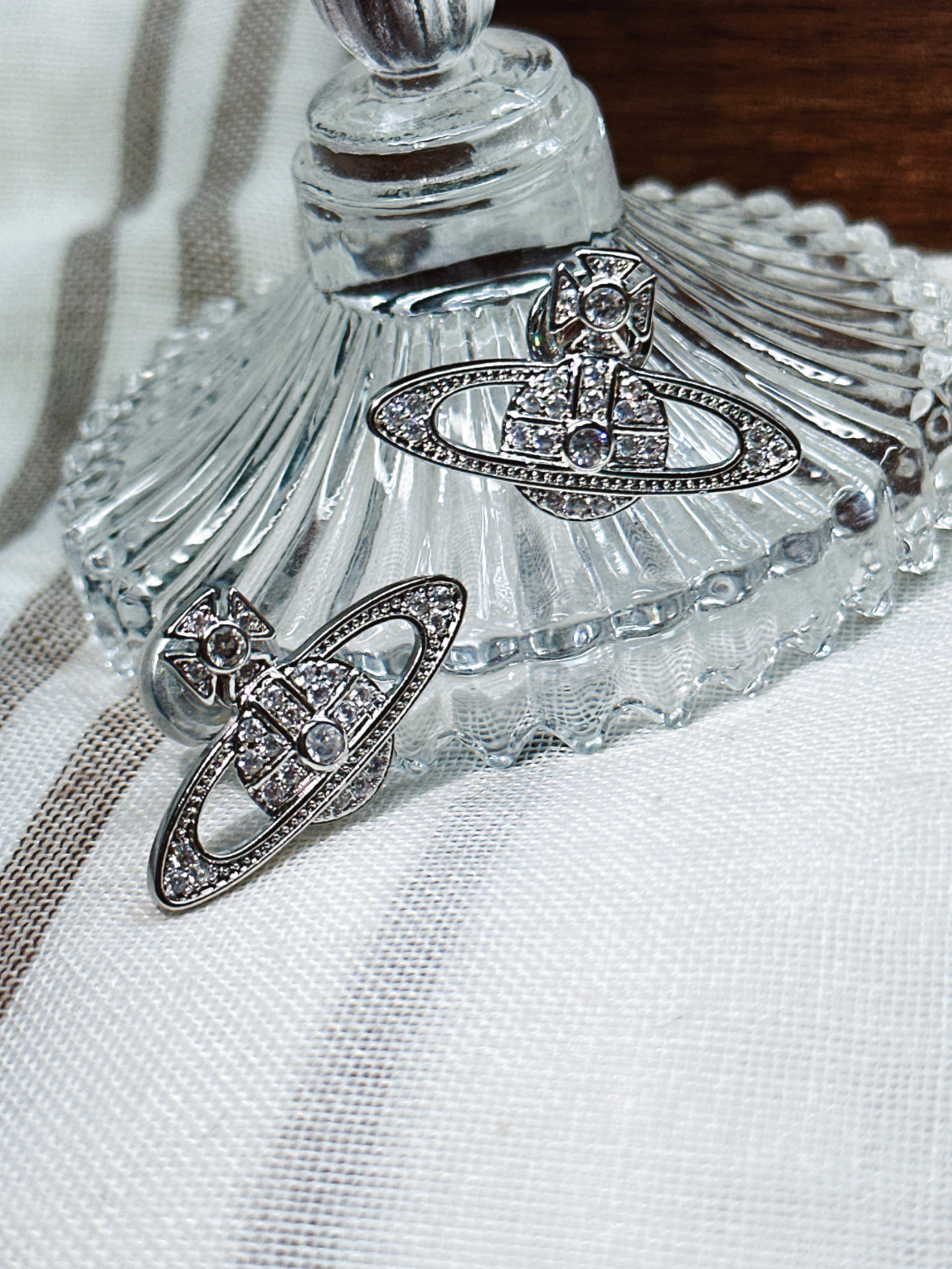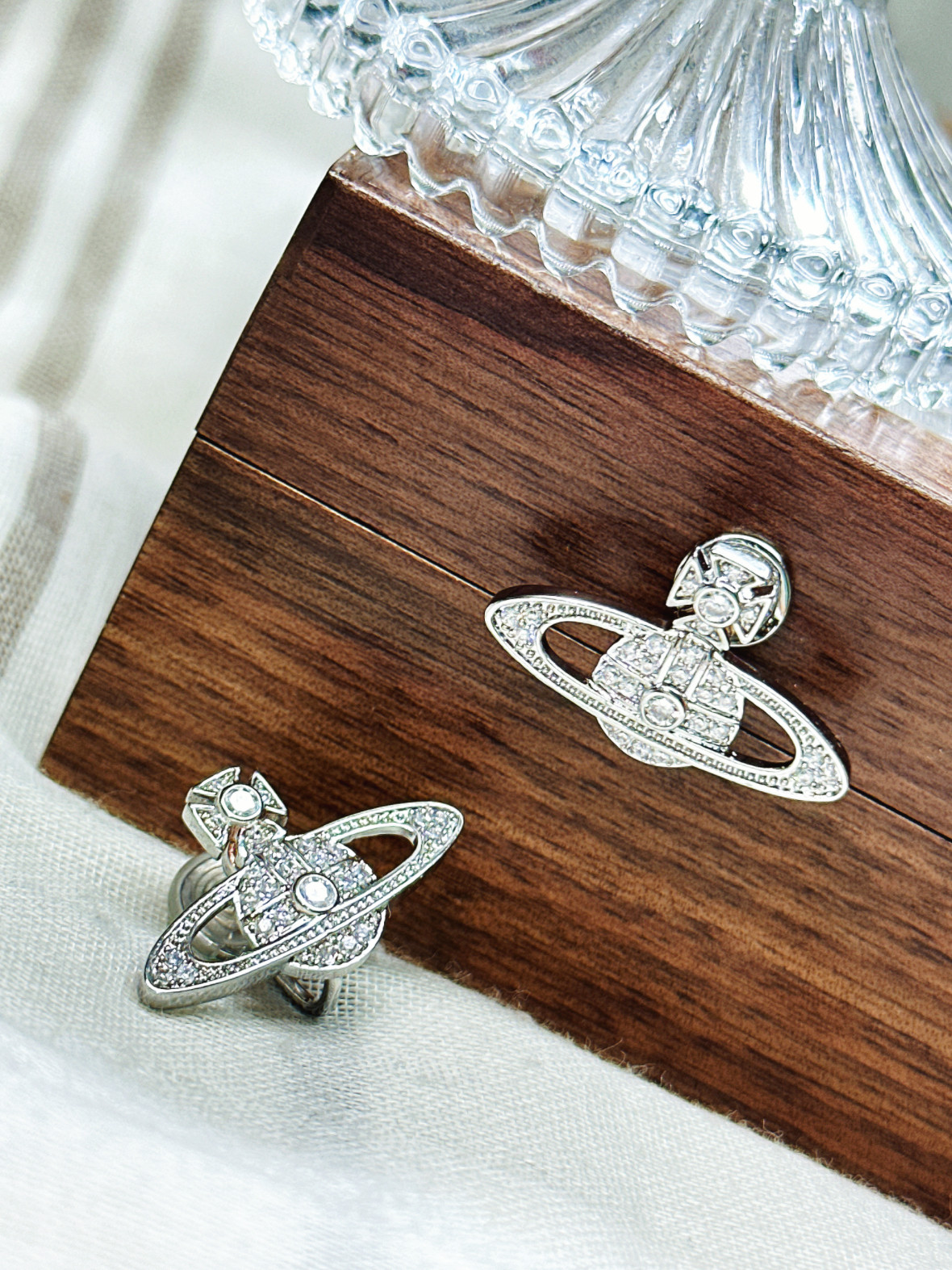 Amu's Unique Saturn Micro-Inlaid Zircon Ear Clip-on Earrings - Niche Style, European and American Fashion, No Piercing Ears, Mosquito Coil Earrings
