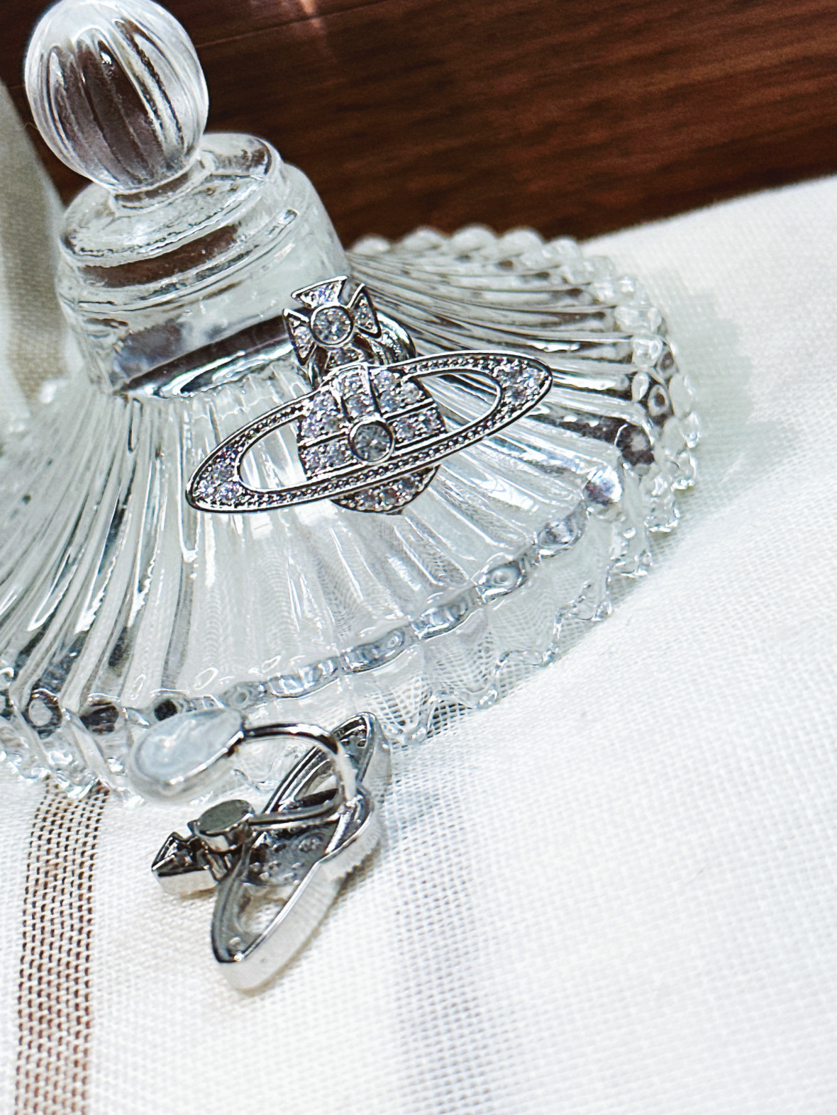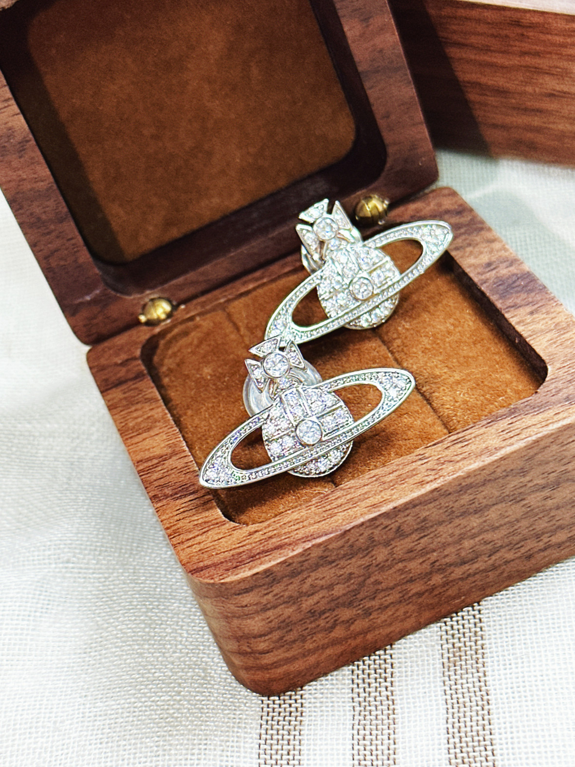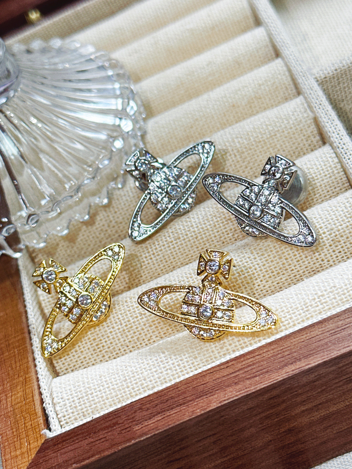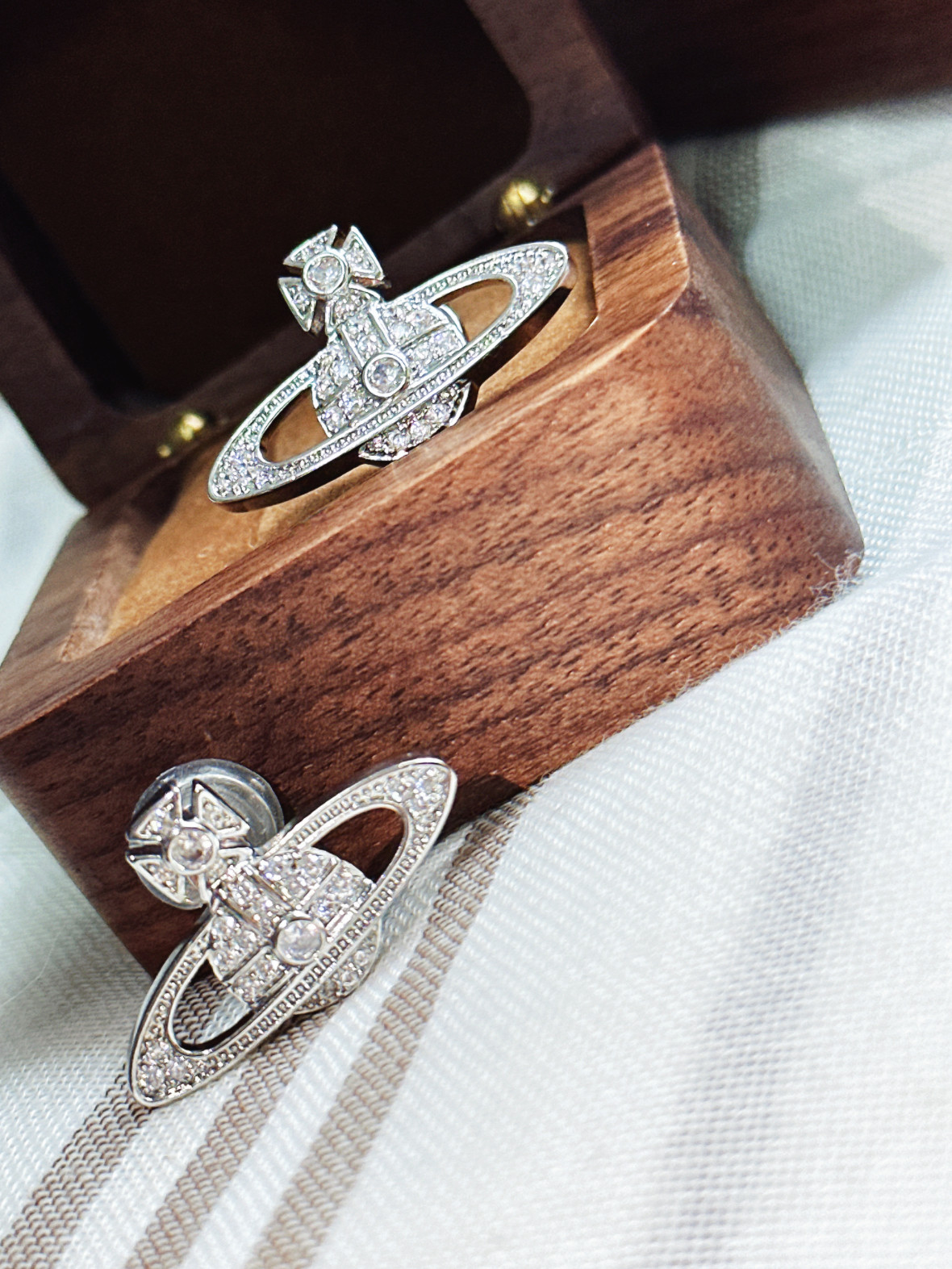 Amu's Unique Saturn Micro-Inlaid Zircon Ear Clip-on Earrings - Niche Style, European and American Fashion, No Piercing Ears, Mosquito Coil Earrings
