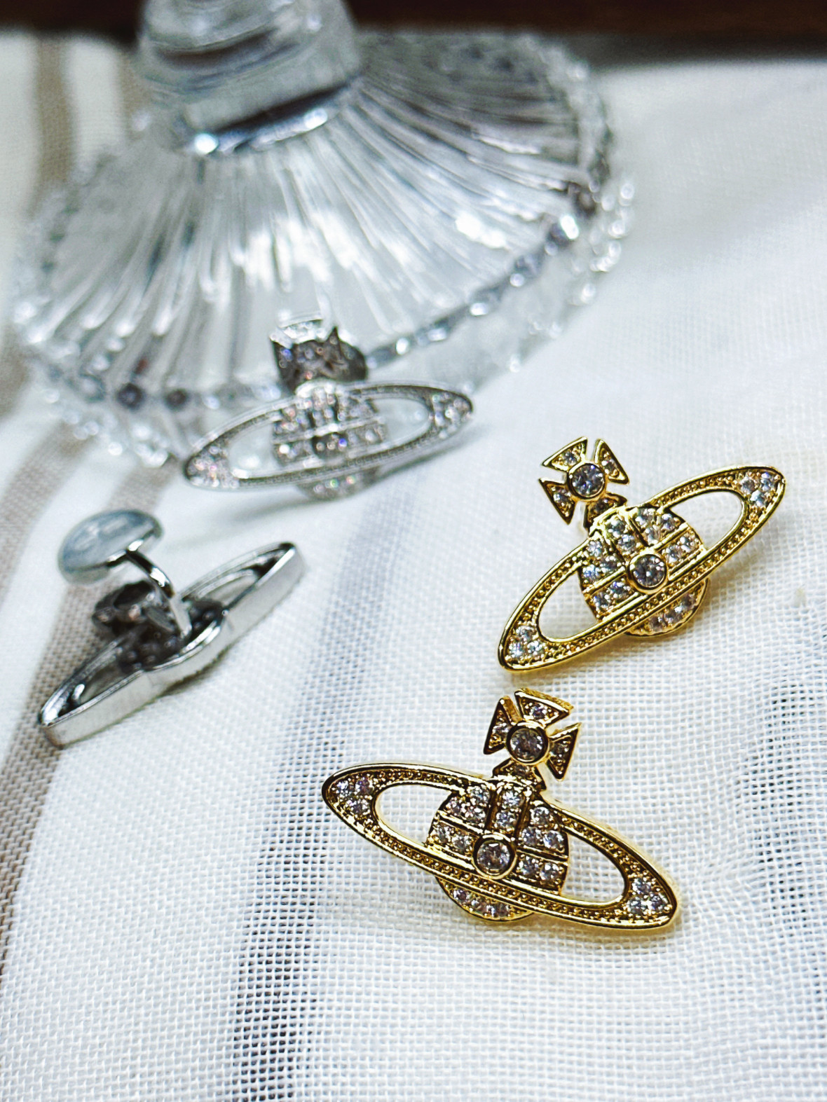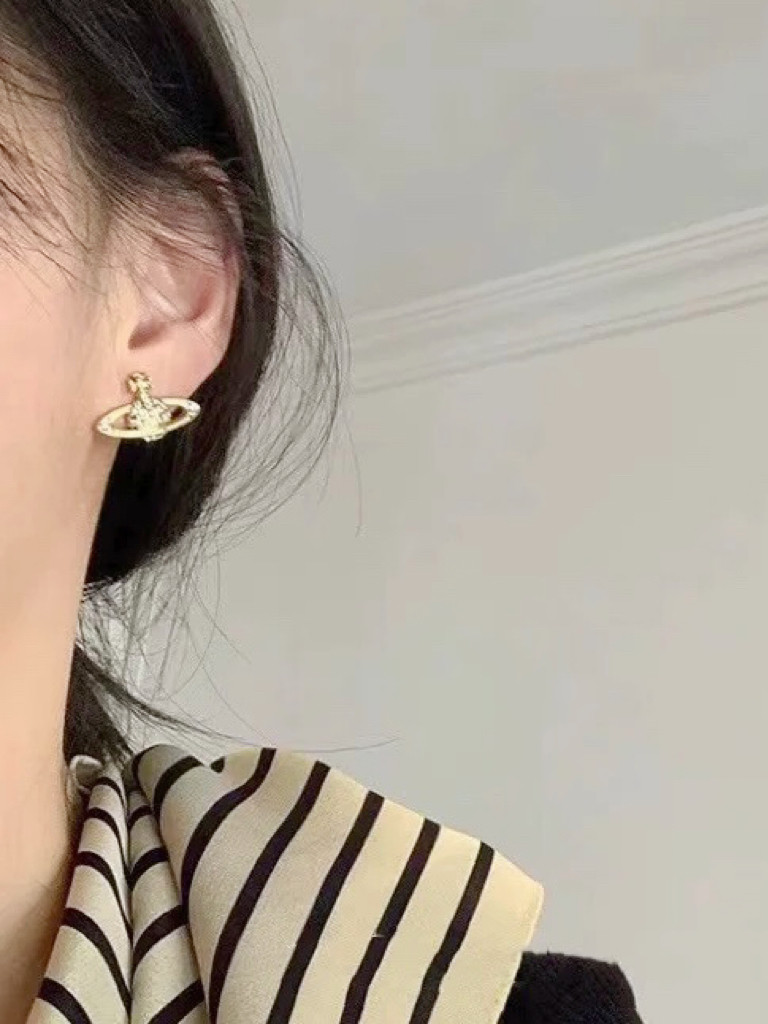 阿木家宇宙土星微镶锆石小众气质欧美时尚无耳洞蚊香盘耳夹 [Original Page Link]